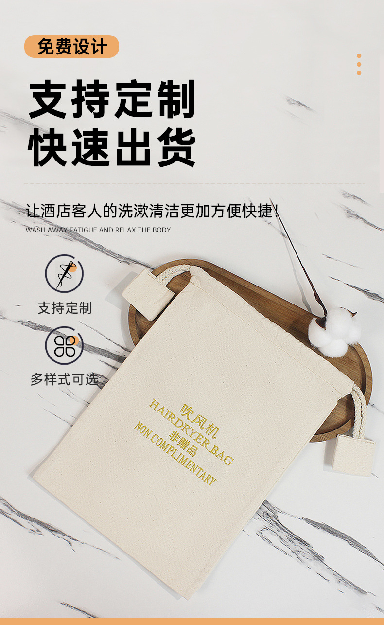 헤어드라이어 보관 가방, 민슈쿠/호텔용 캔버스 보관 가방, 조임끈, 자수 로고, 특수 보관용