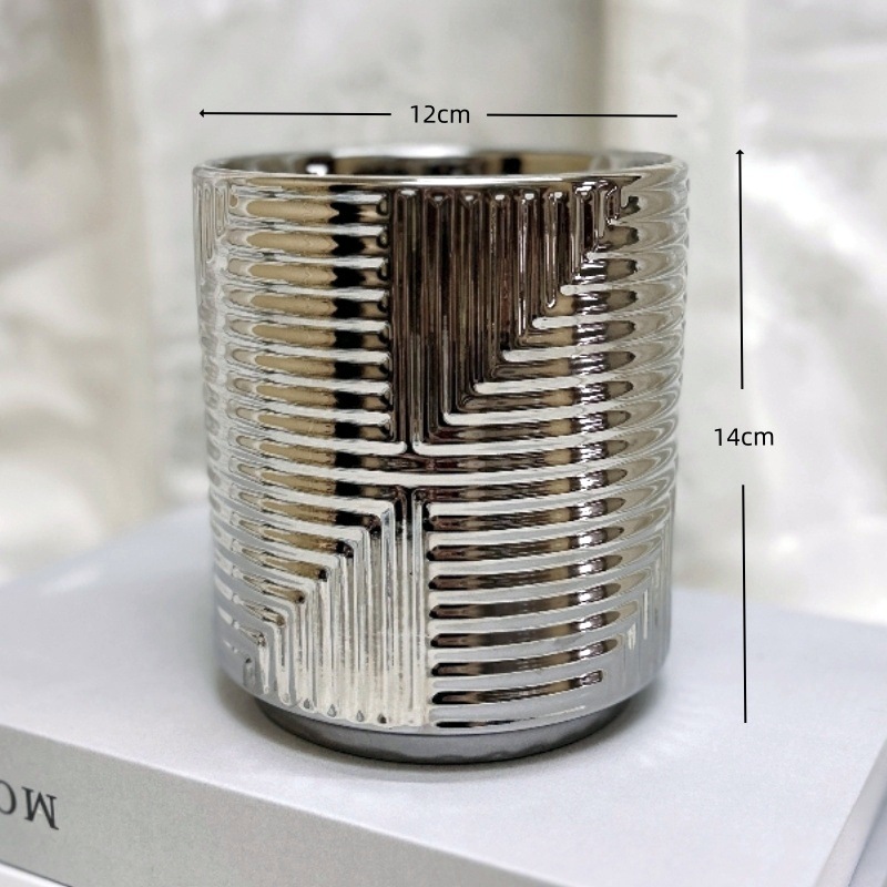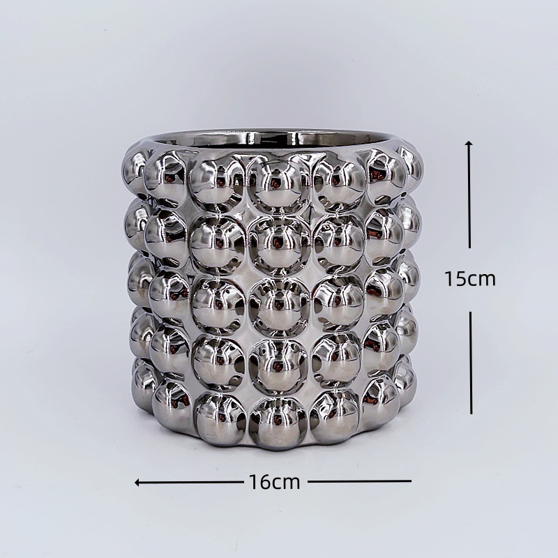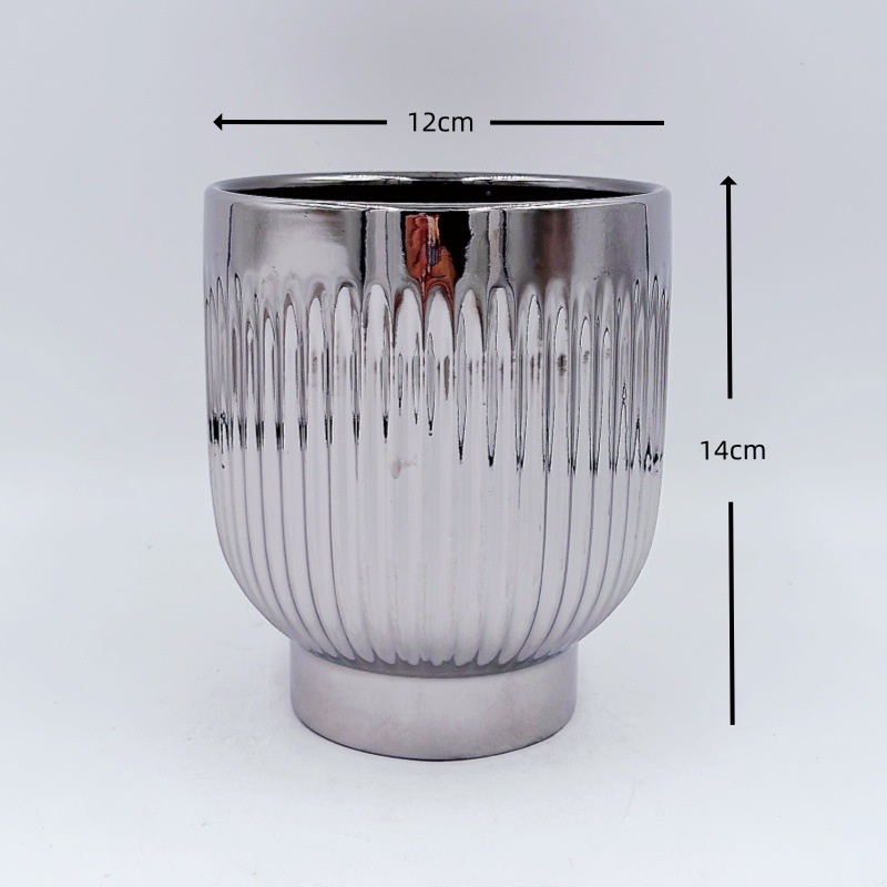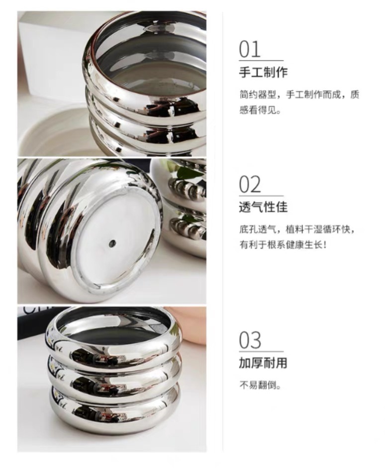 간단한 북유럽 전기 도금 실버 세라믹 화분 홈 장식 작은 꽃병 phalaenopsis 플라스틱 가짜 꽃꽂이스토어 가기