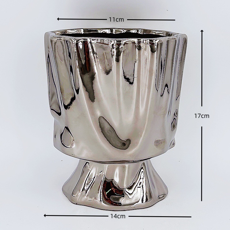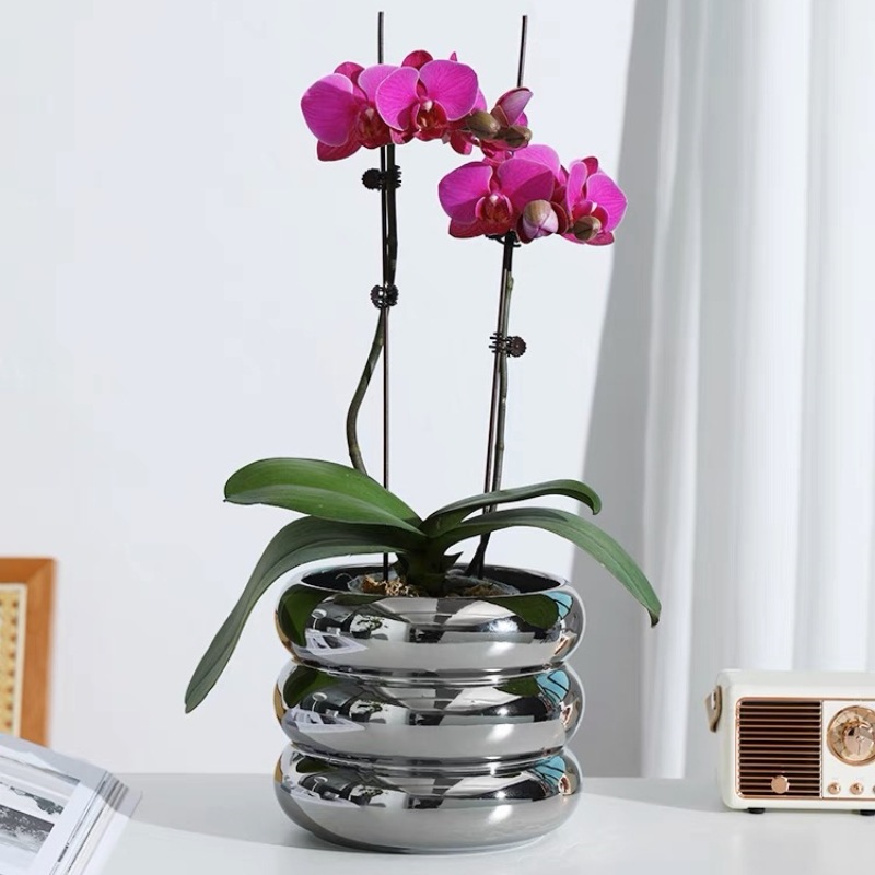 간단한 북유럽 전기 도금 실버 세라믹 화분 홈 장식 작은 꽃병 phalaenopsis 플라스틱 가짜 꽃꽂이
