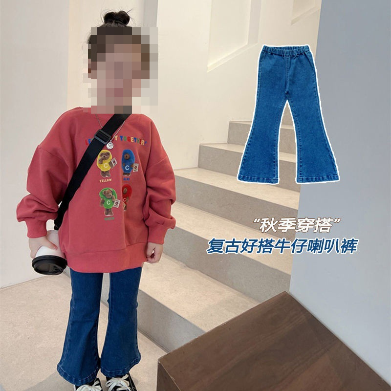 여아 청바지 23 봄 새 아기 아우터 롱 팬츠 유행 모든 매치 데님 플레어 팬츠 0109A003스토어 가기