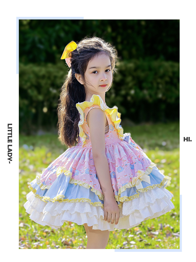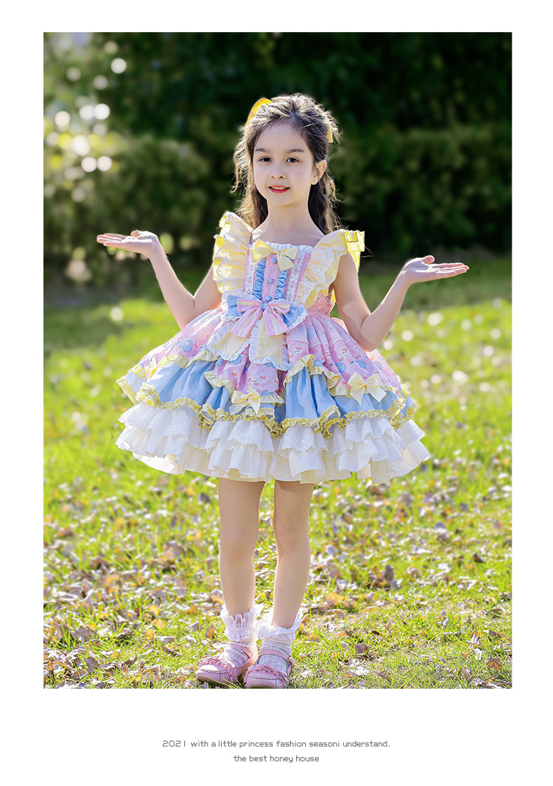 지야 아동복 봄 가을 신상 여아 조끼 로리타 공주 드레스 아동 만화 퍼프 스커트