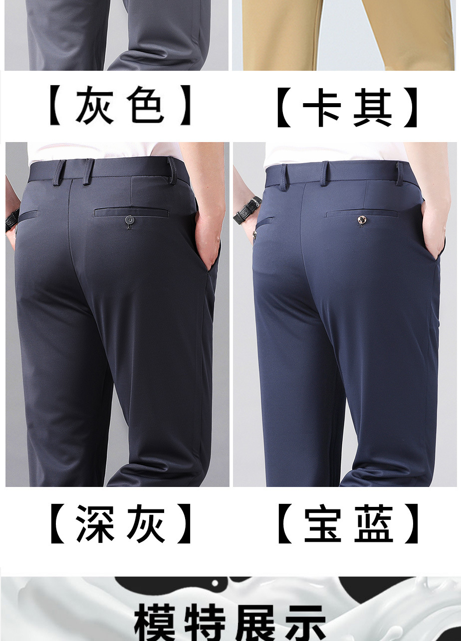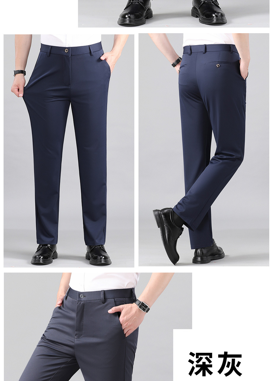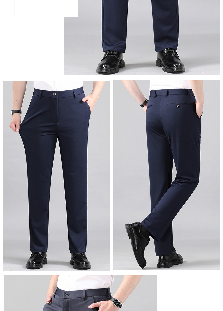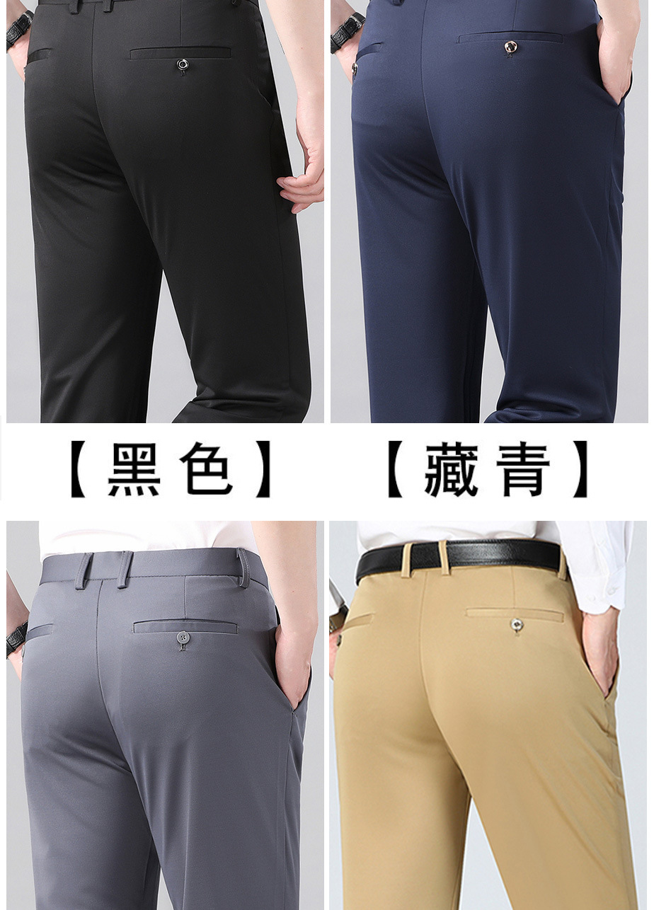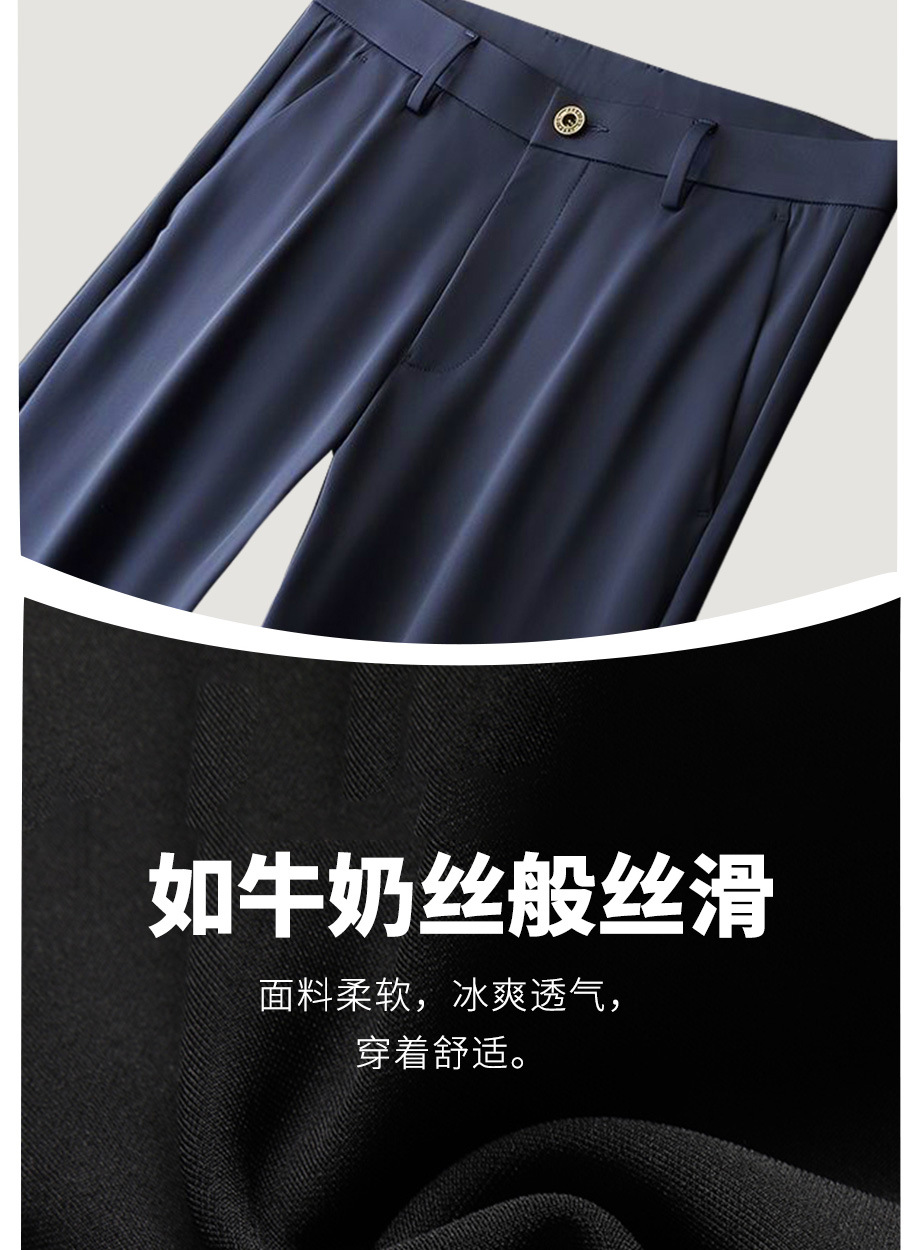 여름 얇은 비즈니스 캐주얼 바지 느슨한 탄성 담근 아이스 실크 벨트 남성 바지 중년 캐주얼 아빠 바지스토어 가기