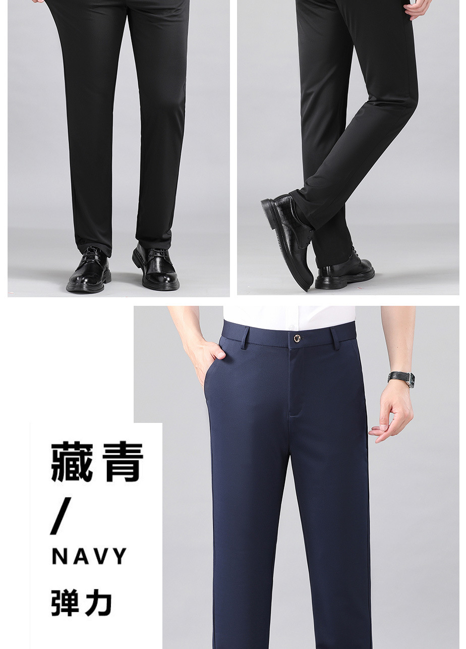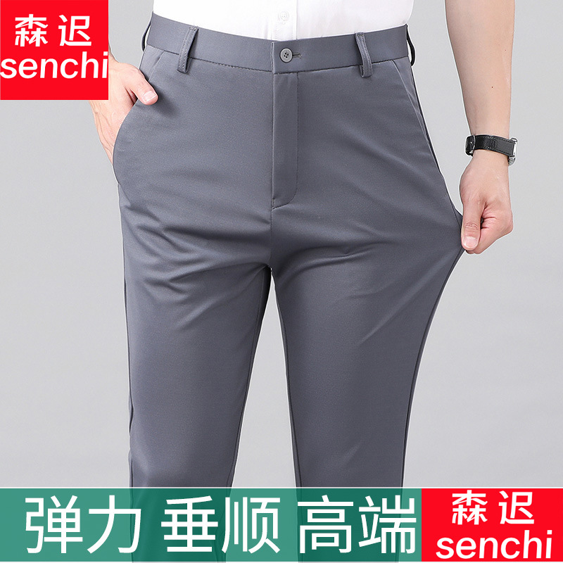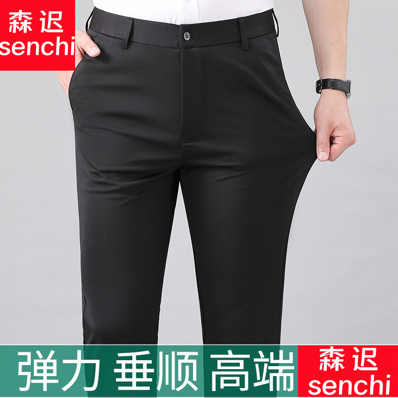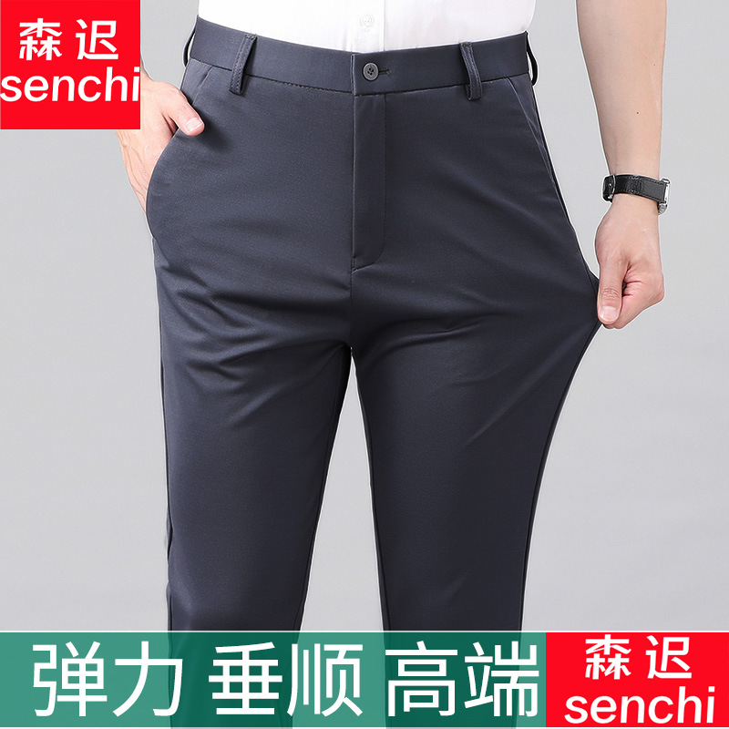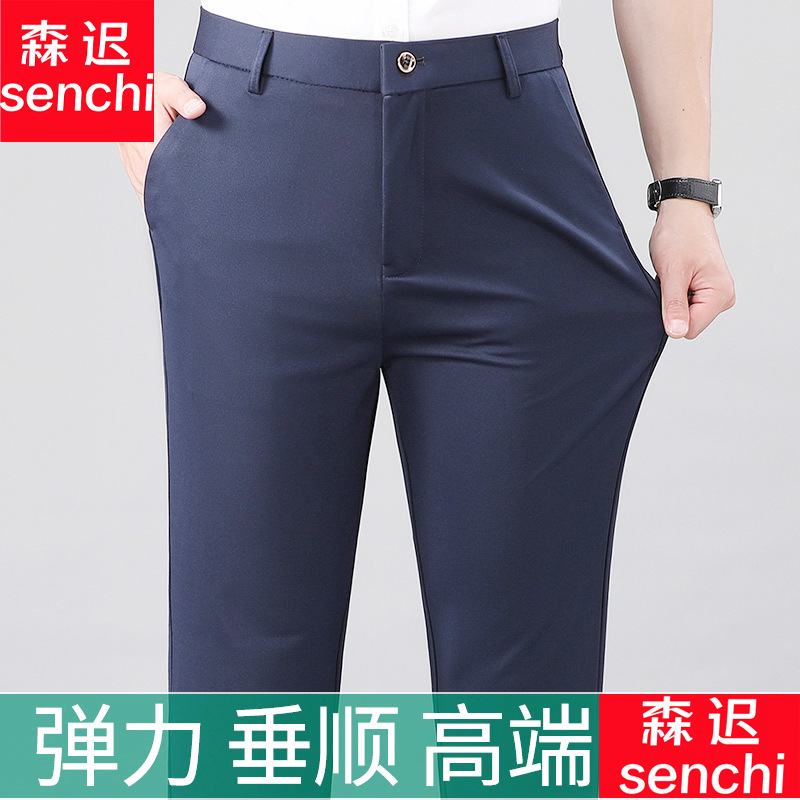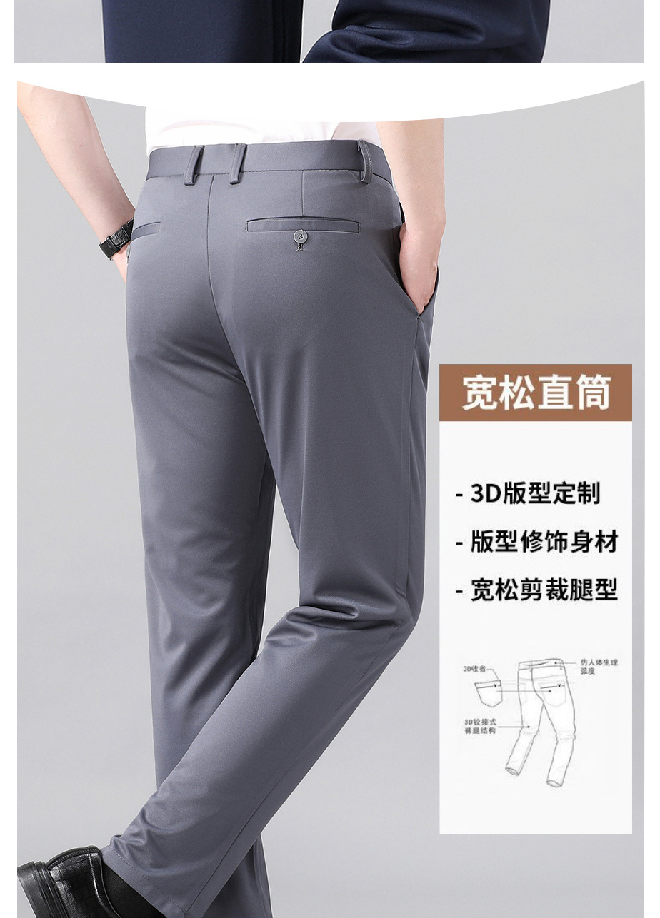 여름 얇은 비즈니스 캐주얼 바지 느슨한 탄성 담근 아이스 실크 벨트 남성 바지 중년 캐주얼 아빠 바지스토어 가기
