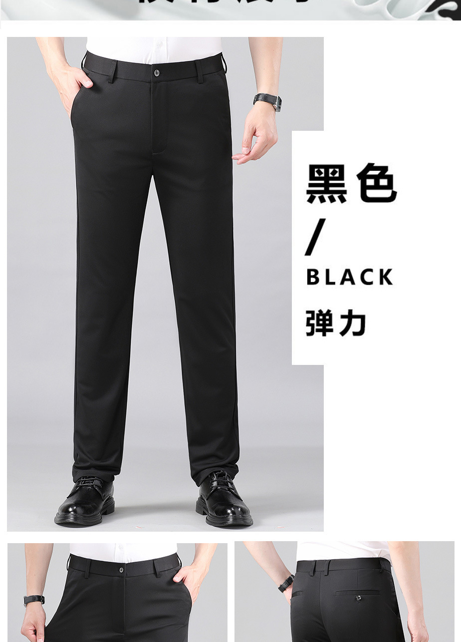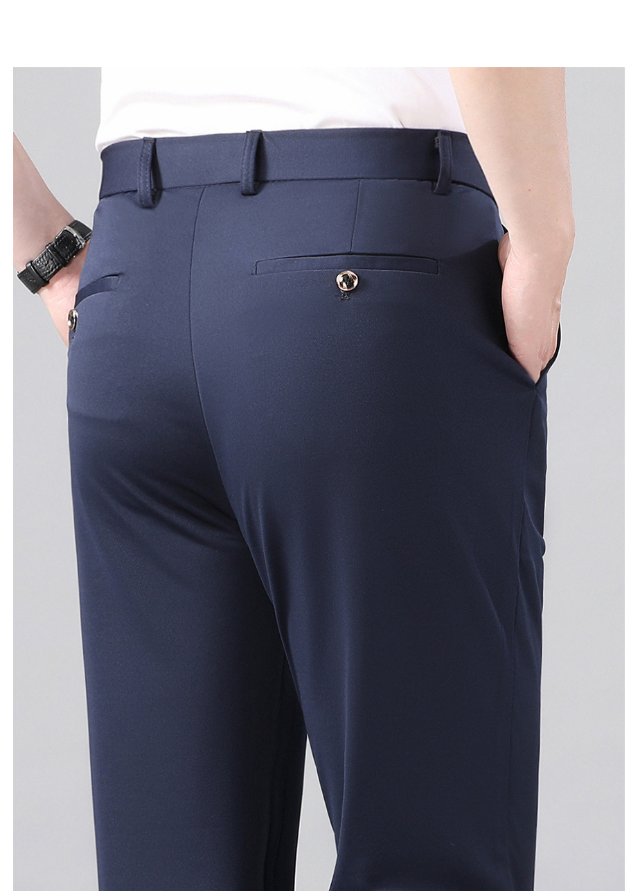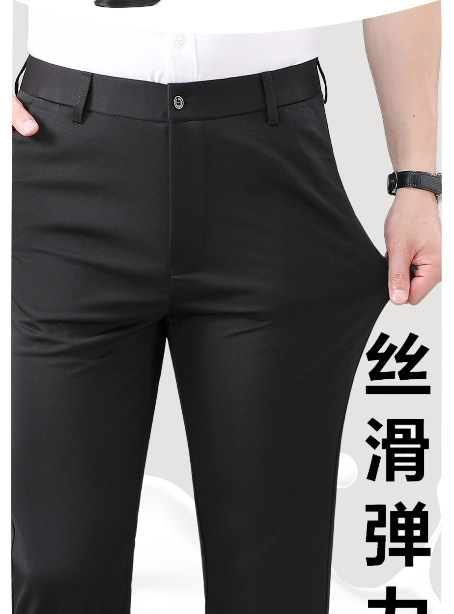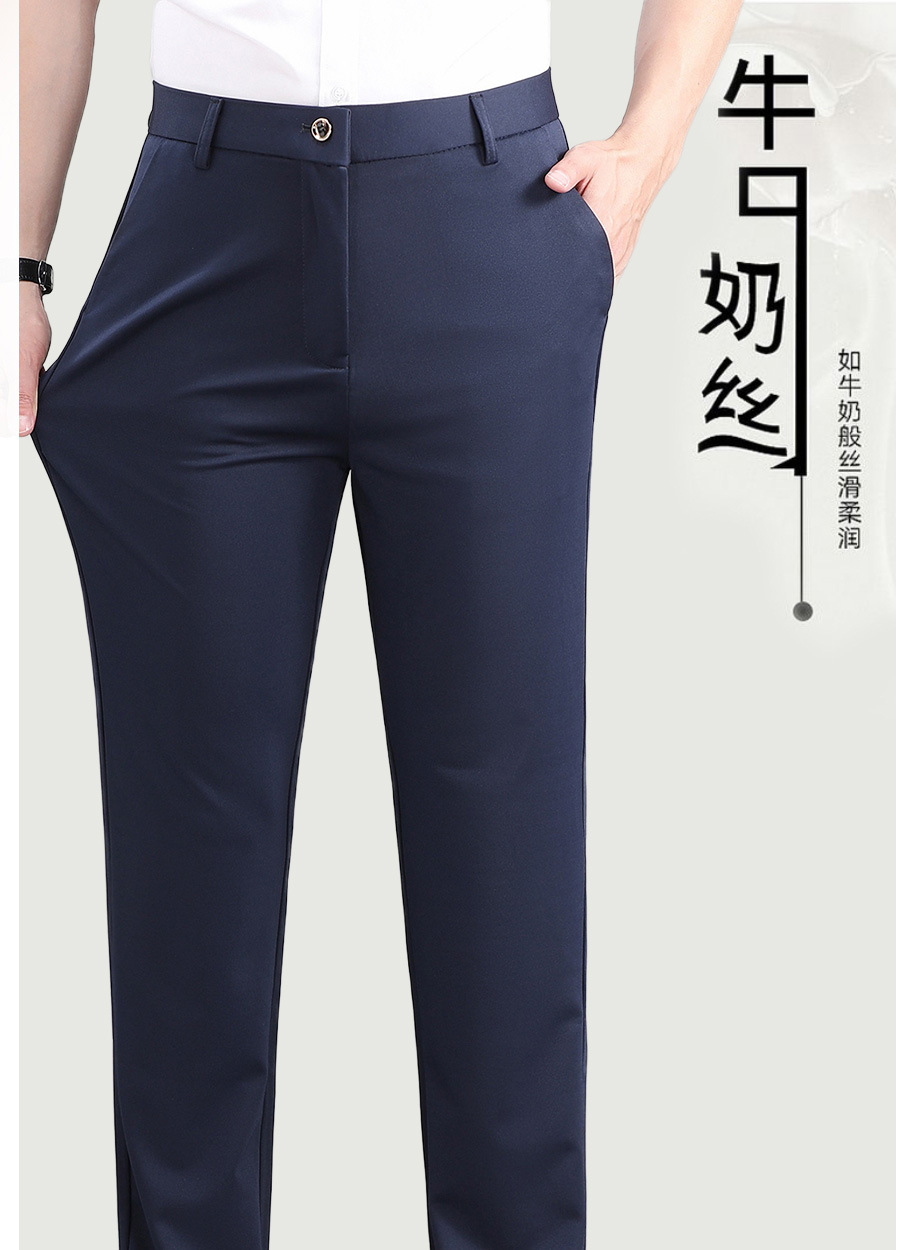 여름 얇은 비즈니스 캐주얼 바지 느슨한 탄성 담근 아이스 실크 벨트 남성 바지 중년 캐주얼 아빠 바지