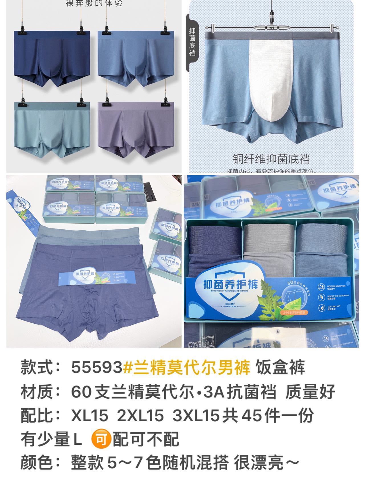 55593 박스형 남성 속옷 소프트 60 란징 모달 복서 고급 3A 항균 가랑이 복서스토어 가기