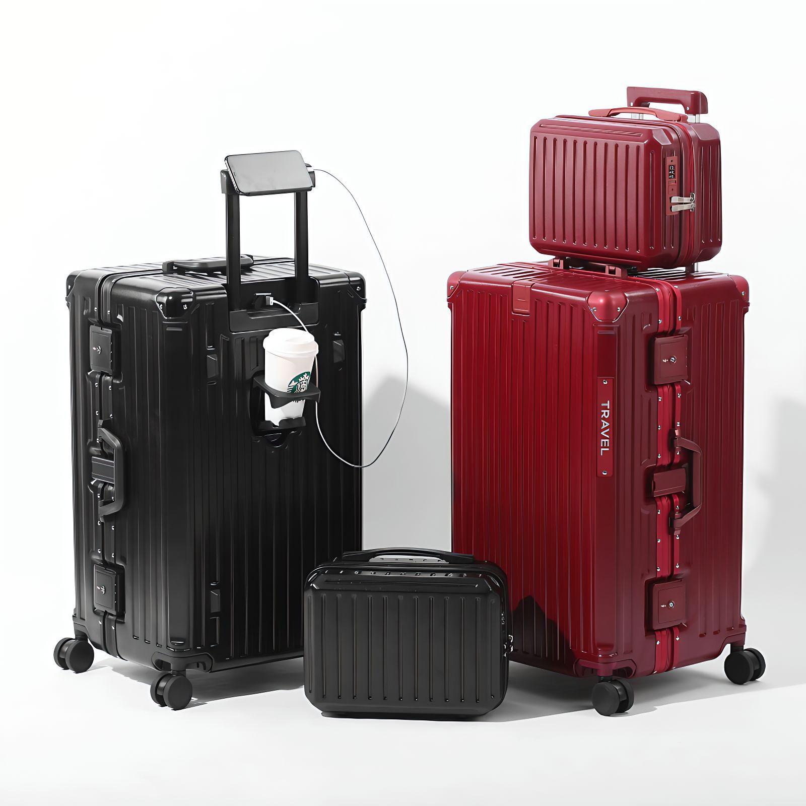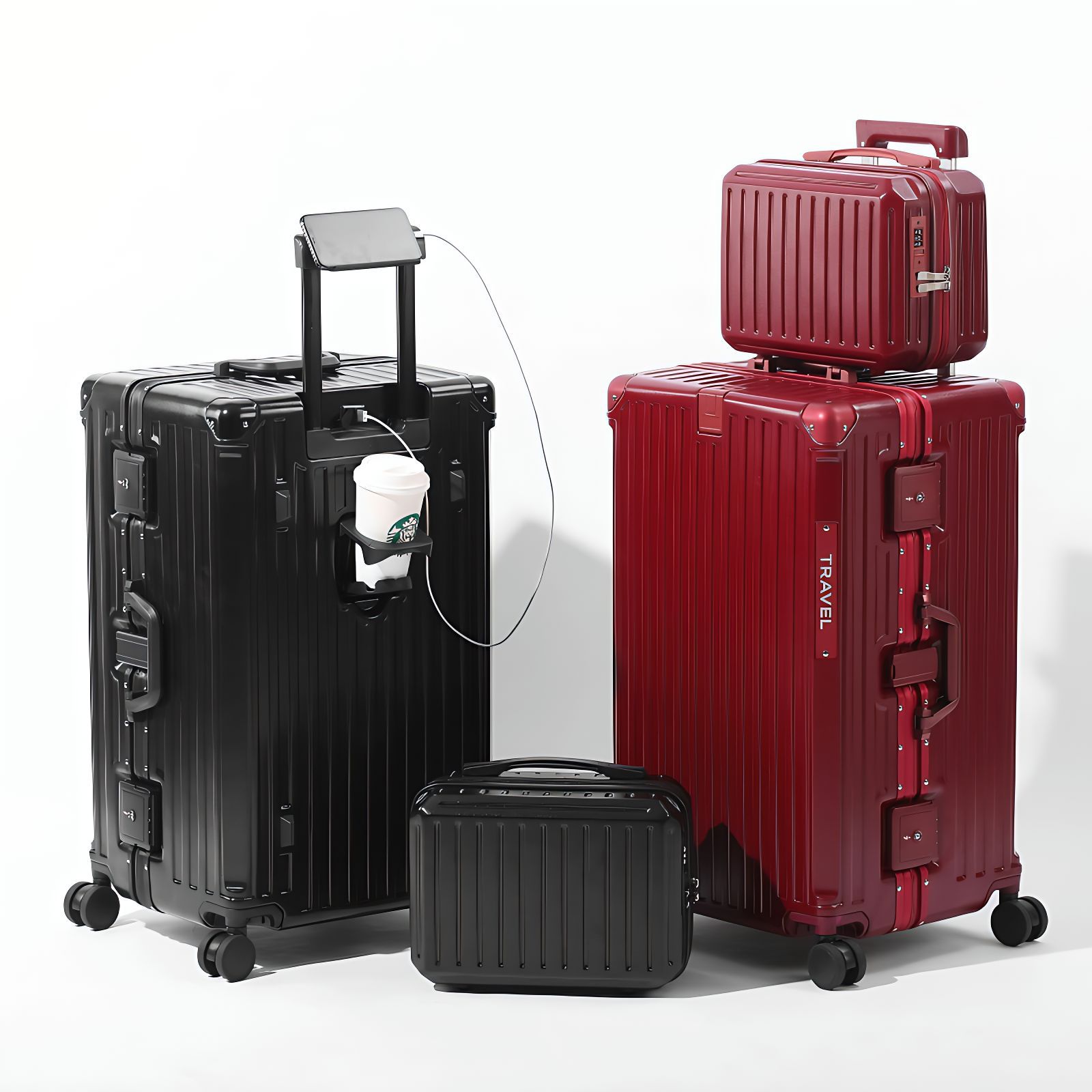 독일 가방 알루미늄 프레임 휴대용 트롤리 케이스 usb 충전 비즈니스 가방 드롭 배송 탑승 케이스