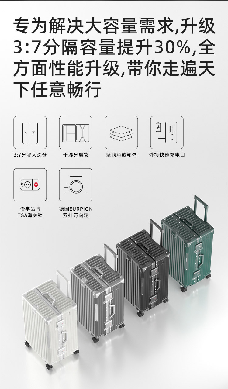 독일 가방 알루미늄 프레임 휴대용 트롤리 케이스 usb 충전 비즈니스 가방 드롭 배송 탑승 케이스스토어 가기