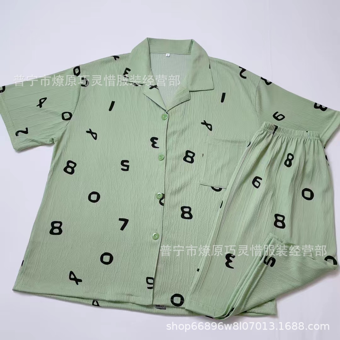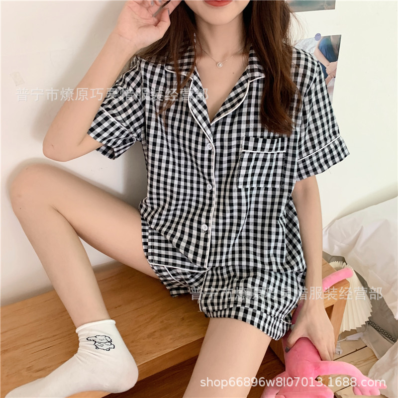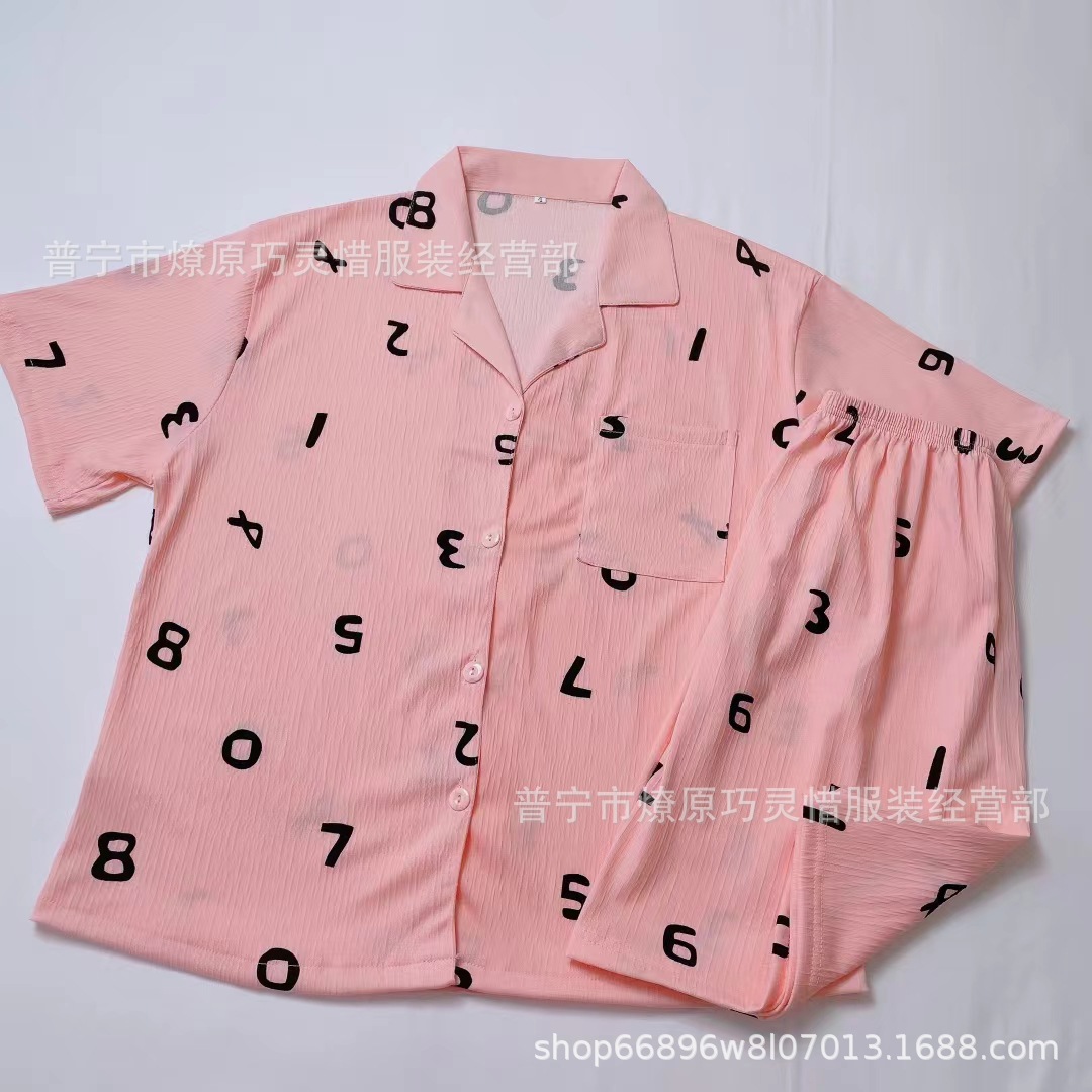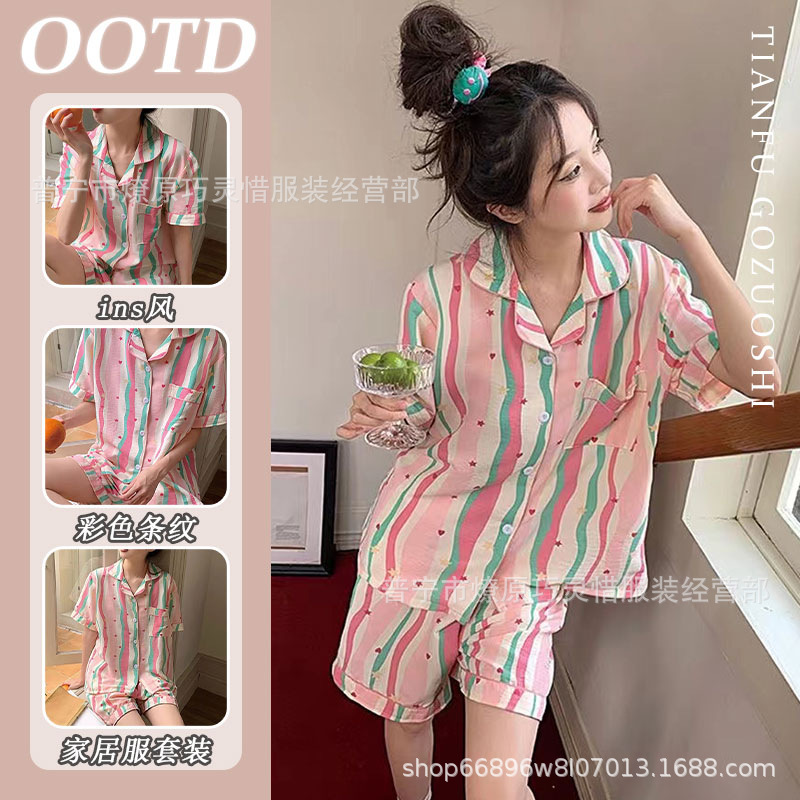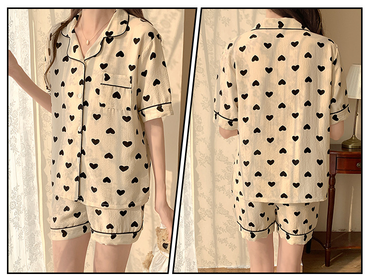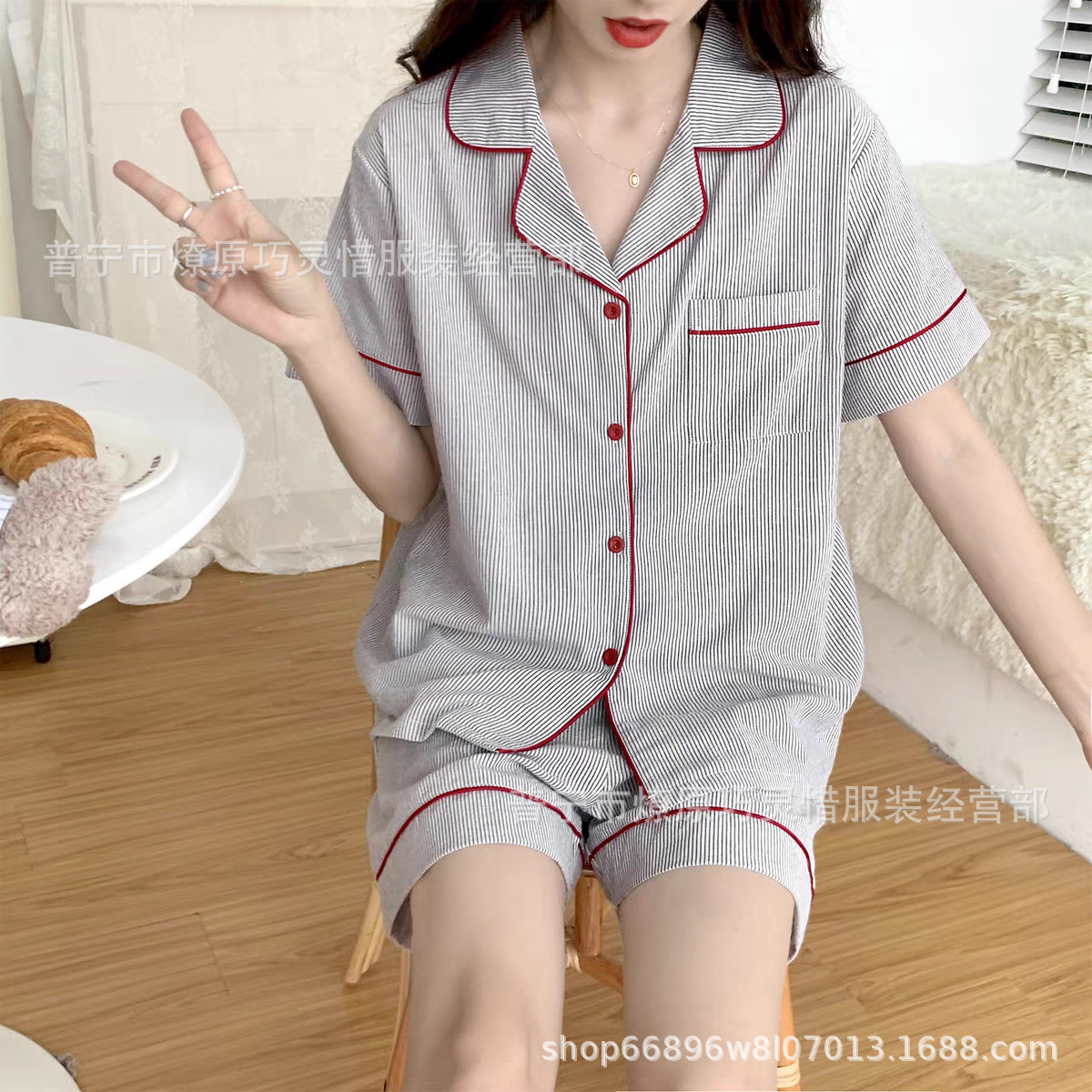 여름 새로운 반팔 반바지 버블 면 잠옷 여자의 귀여운 여자의 달콤한 가정 옷 카디건 세트 겉옷스토어 가기