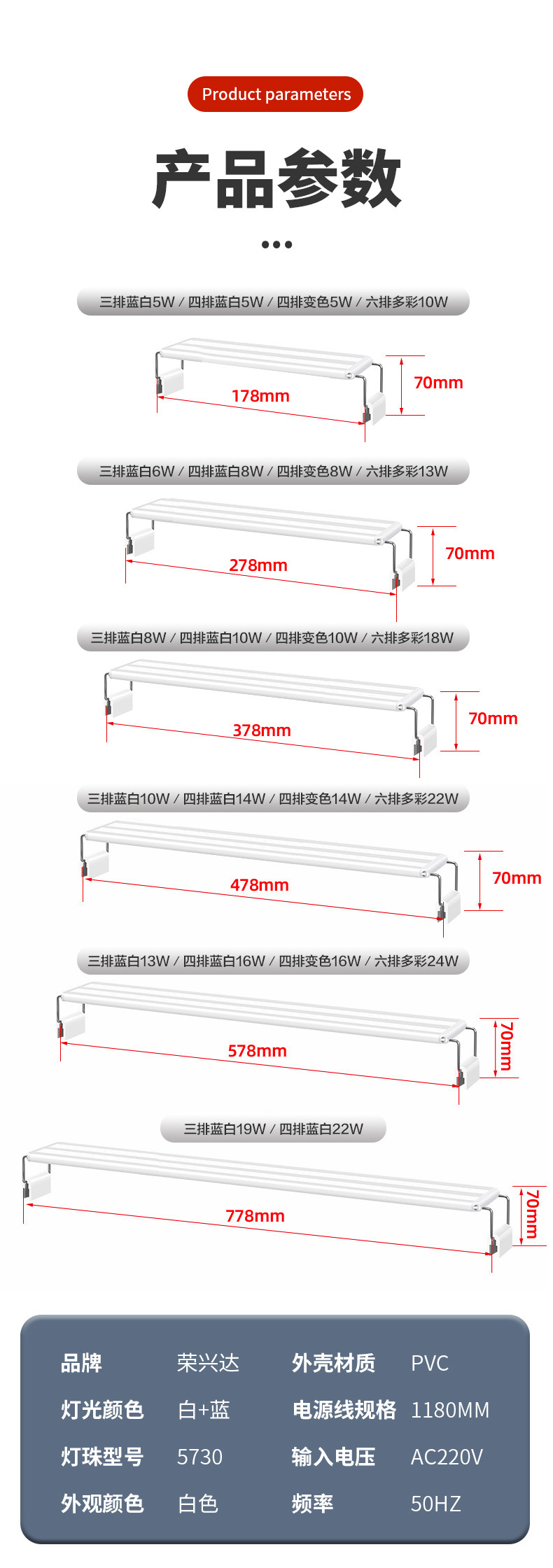 • [풀 스펙트럼 수생 식물/조류 폭발] 태양등 6 열 58cm