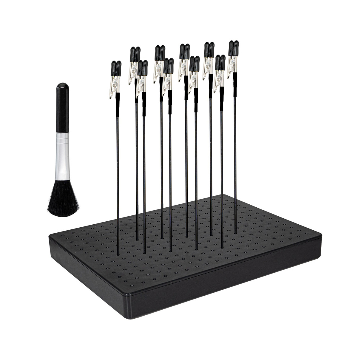 • 대형 베이스 + 고무 코팅 강철 막대 색상 클립 10개 + 브러시