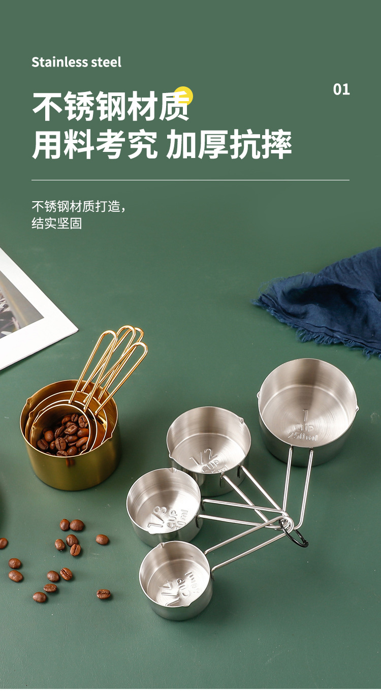 스테인레스 스틸 로즈 골드 계량스푼 계량컵 세트 분유 커피 베이킹 도구 계량컵 계량스푼 계량스푼 재고