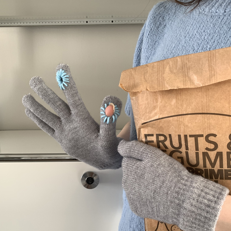 겨울 새로운 야외 방한 학생 터치 스크린 장갑 여성용 한국식 모든 경기 스타일 니트 울 인터넷 연예인 장갑