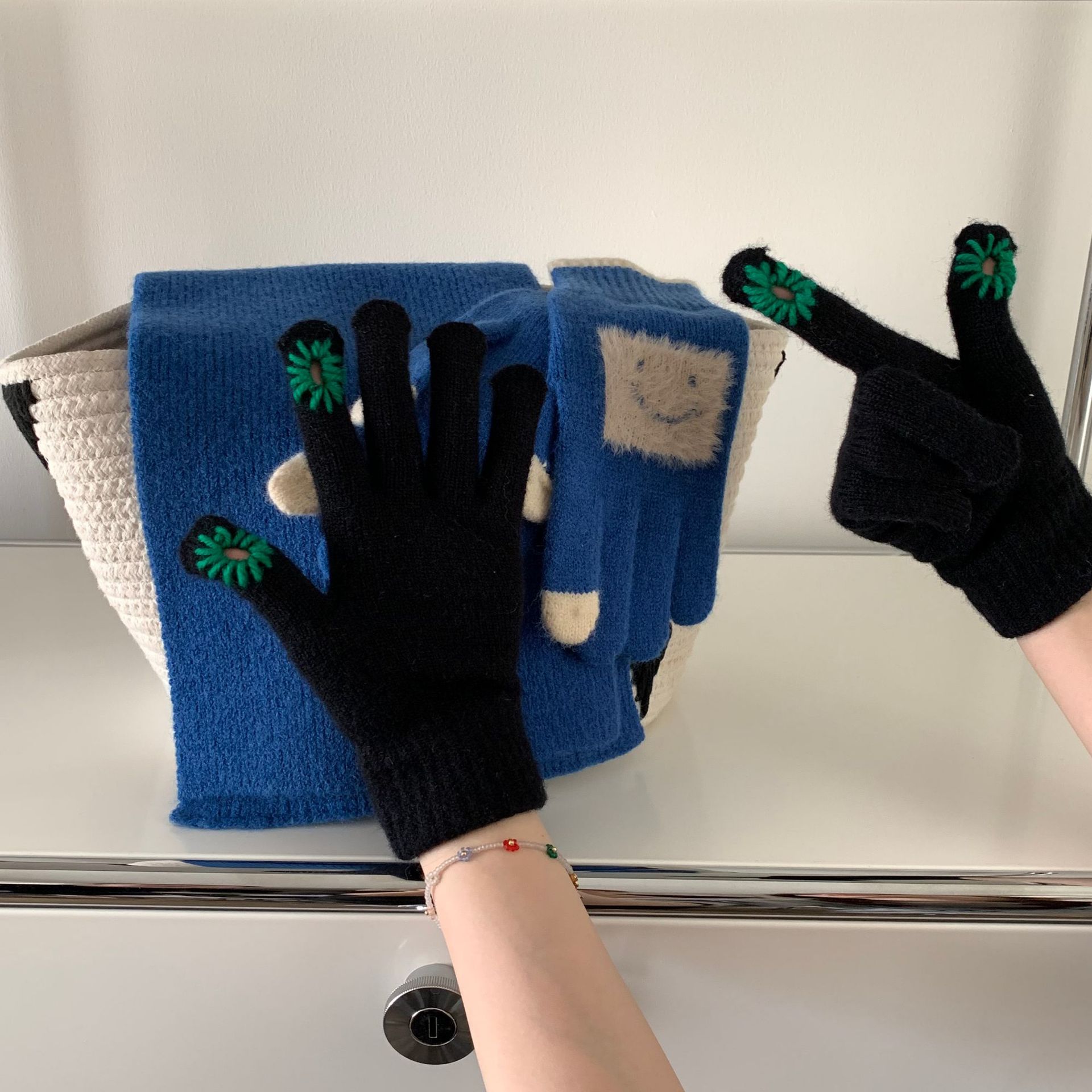 겨울 새로운 야외 방한 학생 터치 스크린 장갑 여성용 한국식 모든 경기 스타일 니트 울 인터넷 연예인 장갑스토어 가기