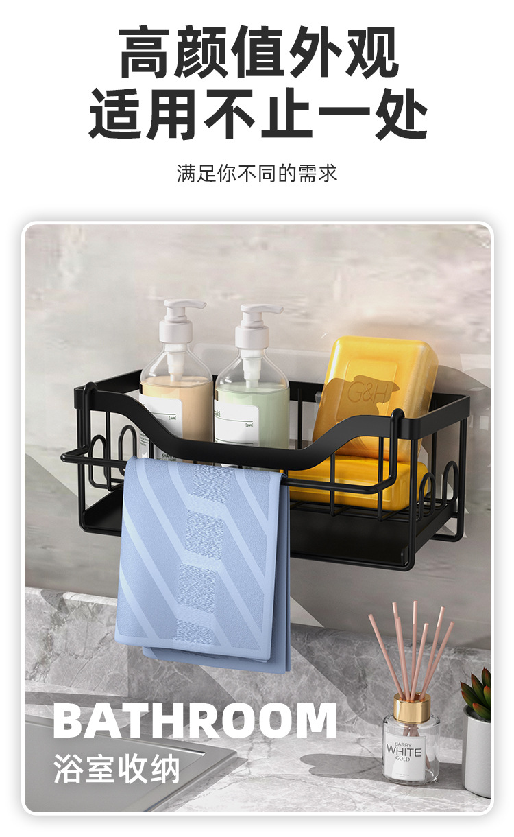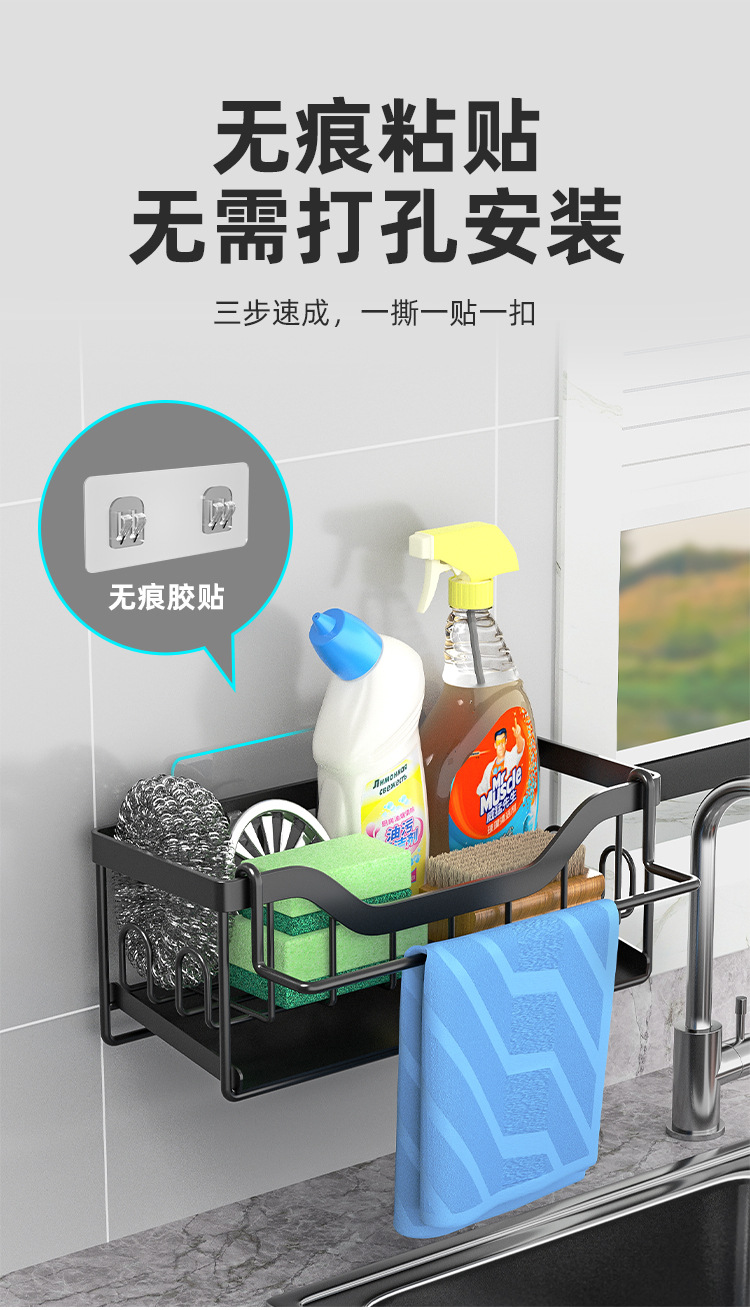 주방 수납 랙 천 랙 펀치없는 벽걸이 형 가정용 조미료 선반 배수 바구니 싱크대 보관 랙 유물