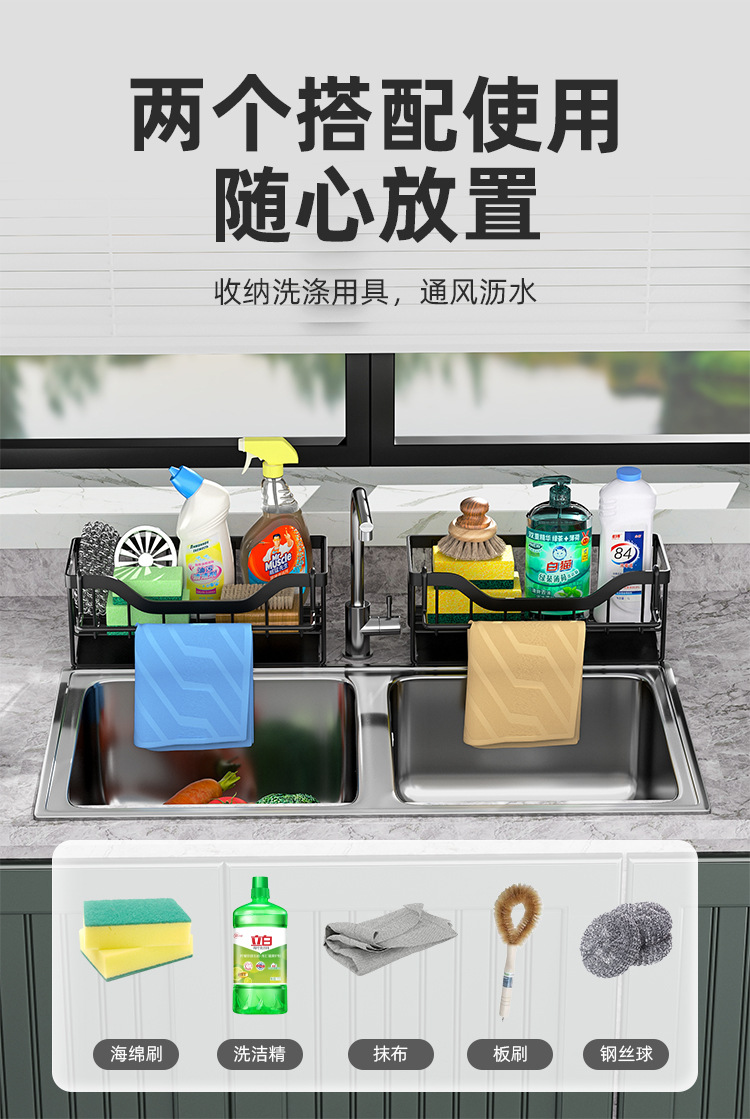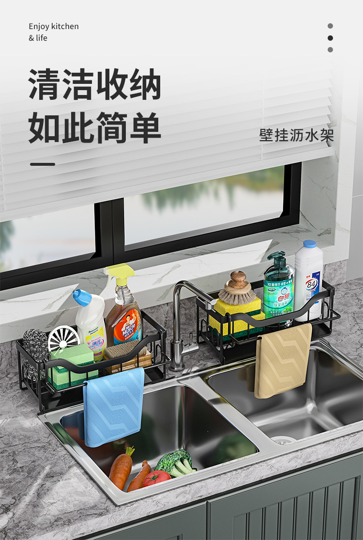 주방 수납 랙 천 랙 펀치없는 벽걸이 형 가정용 조미료 선반 배수 바구니 싱크대 보관 랙 유물스토어 가기