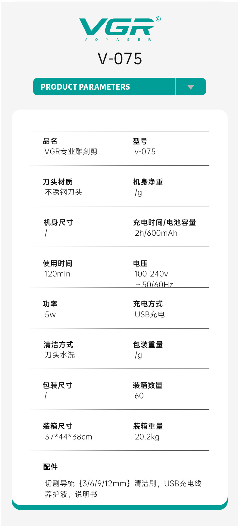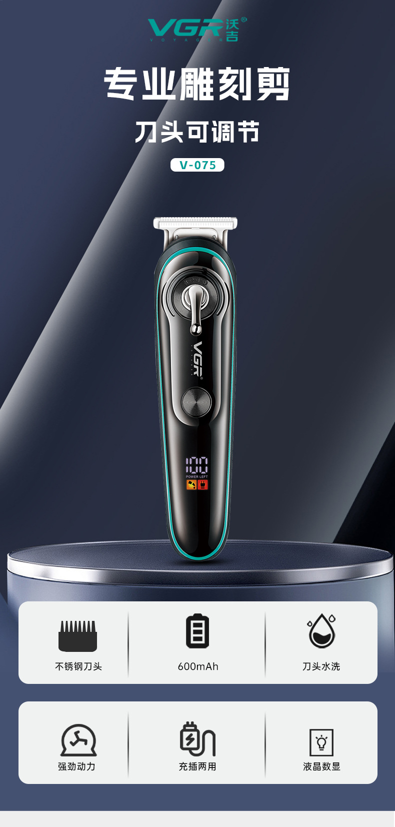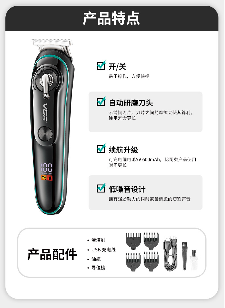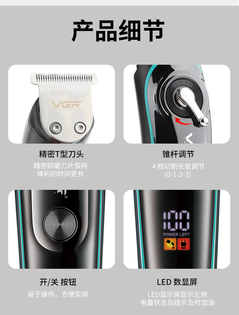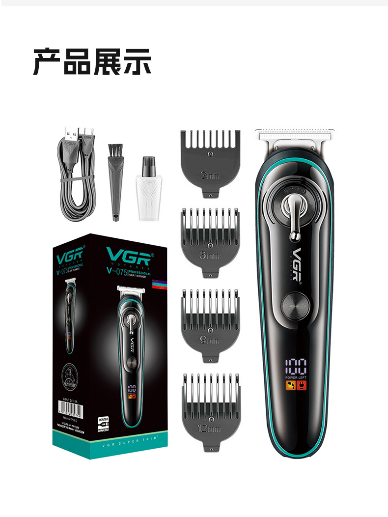 VGR075 신형 전기 이발기, 미용실 및 가정용, 남성용, 다양한 사이즈의 리미팅 빗, 디지털 디스플레이, 헤어 트리머스토어 가기