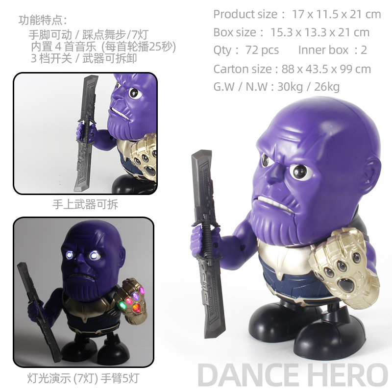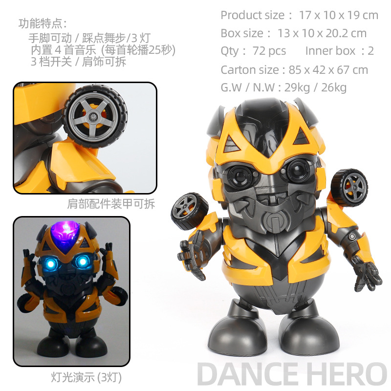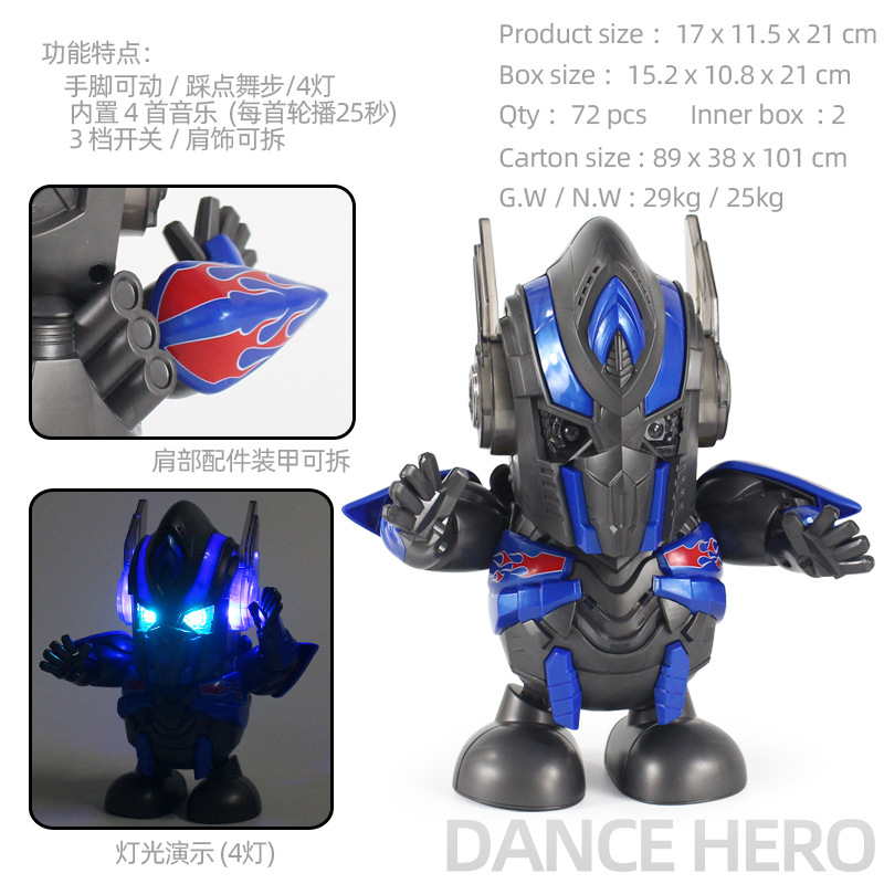 跳舞英雄G:彩盒尺寸:15.8*12*21.8cm,外箱尺寸:92*39.5*102cm,箱规:72盒/箱。