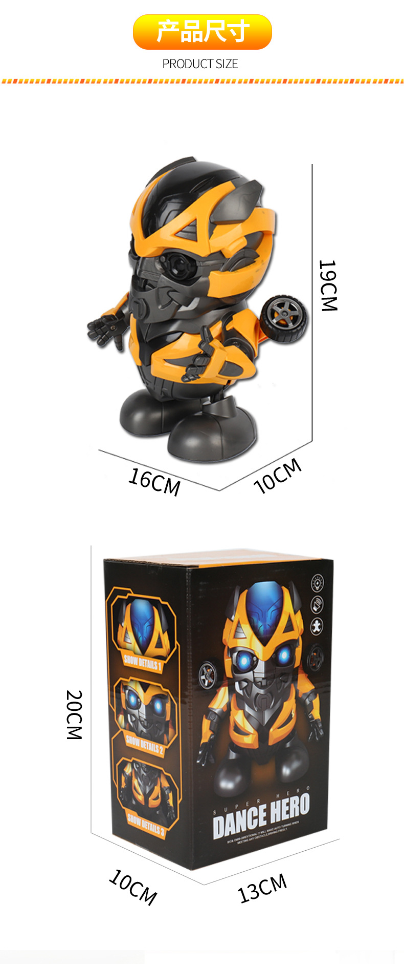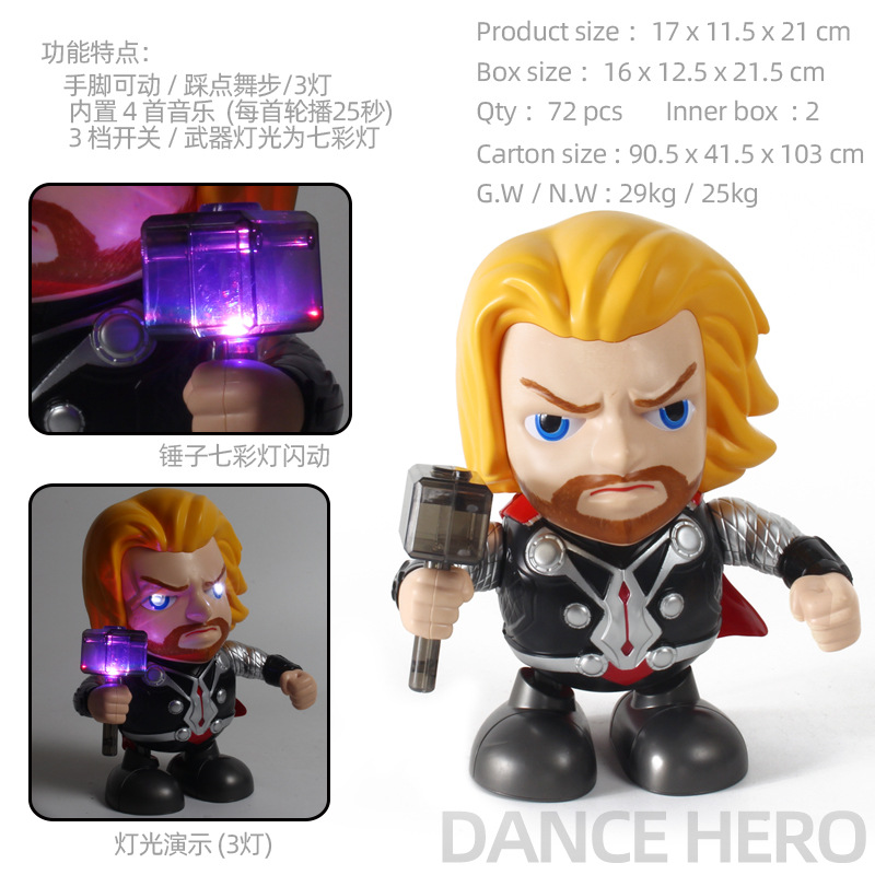 跳舞英雄C:彩盒尺寸:15.2*10.8*21cm,外箱尺寸:89*38*101cm,箱规:72盒/箱。