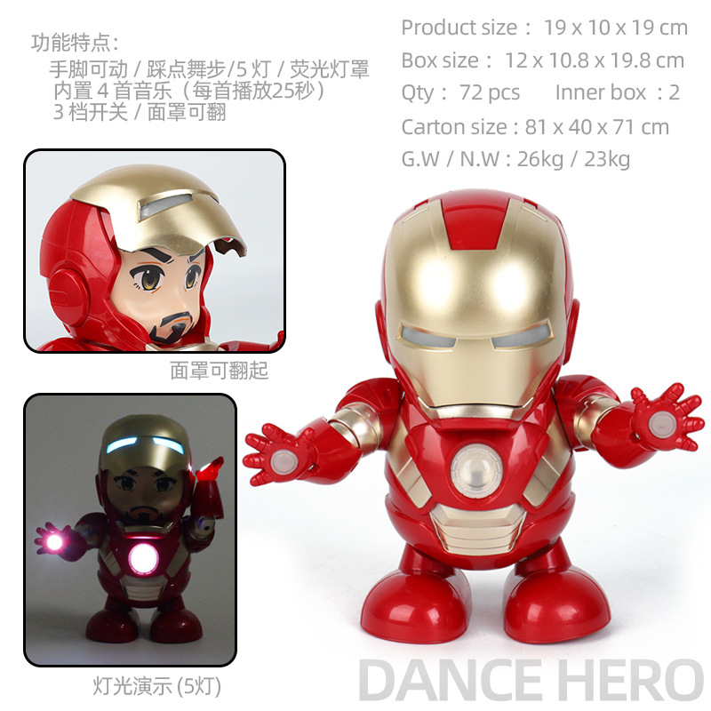 红色钢铁英雄:彩盒尺寸:12*10.8*19.8cm,外箱尺寸:84*40*71cm,箱规:72盒/箱。