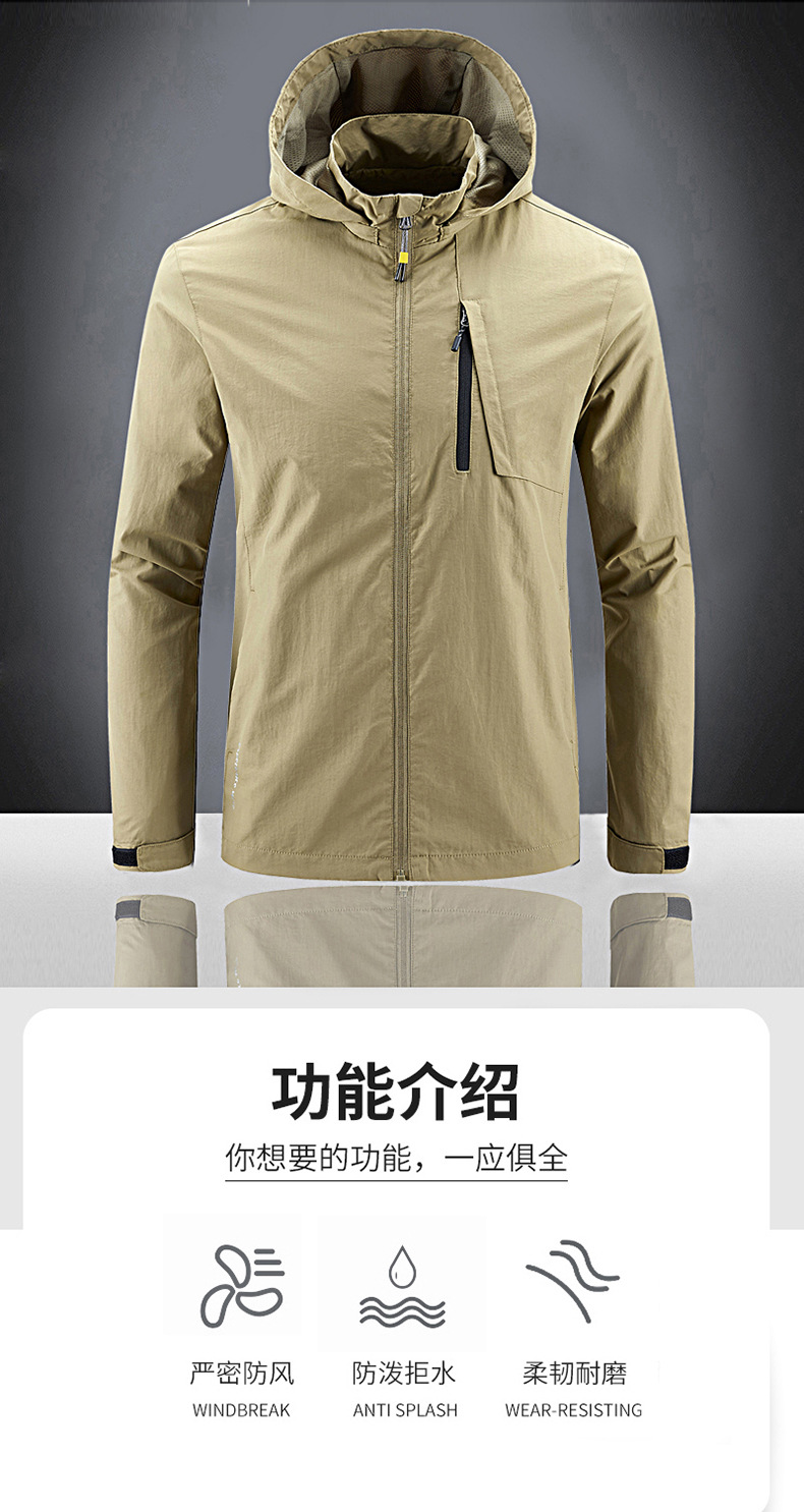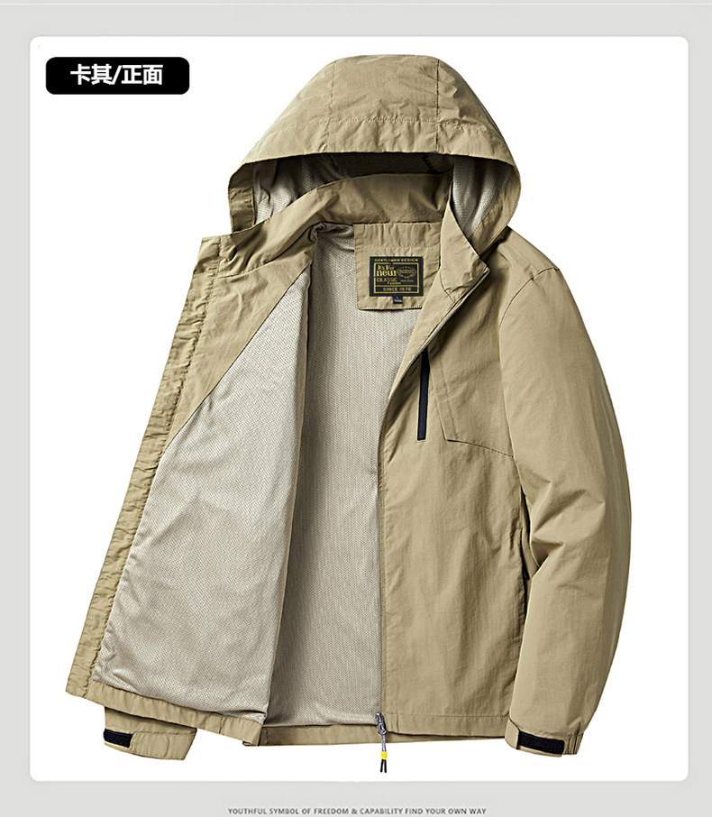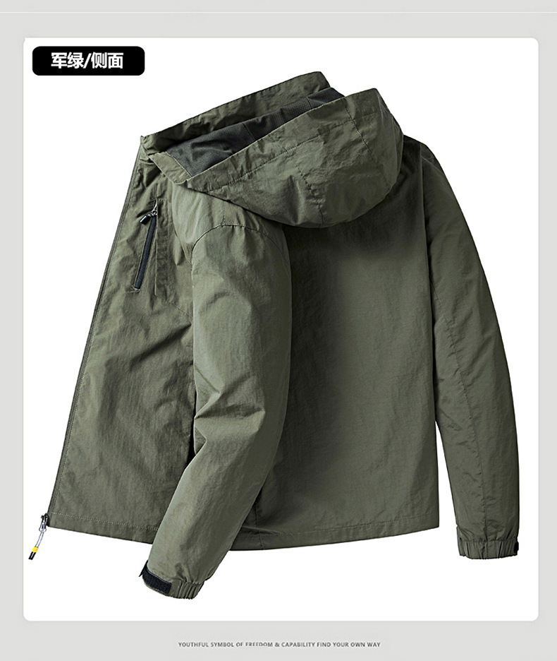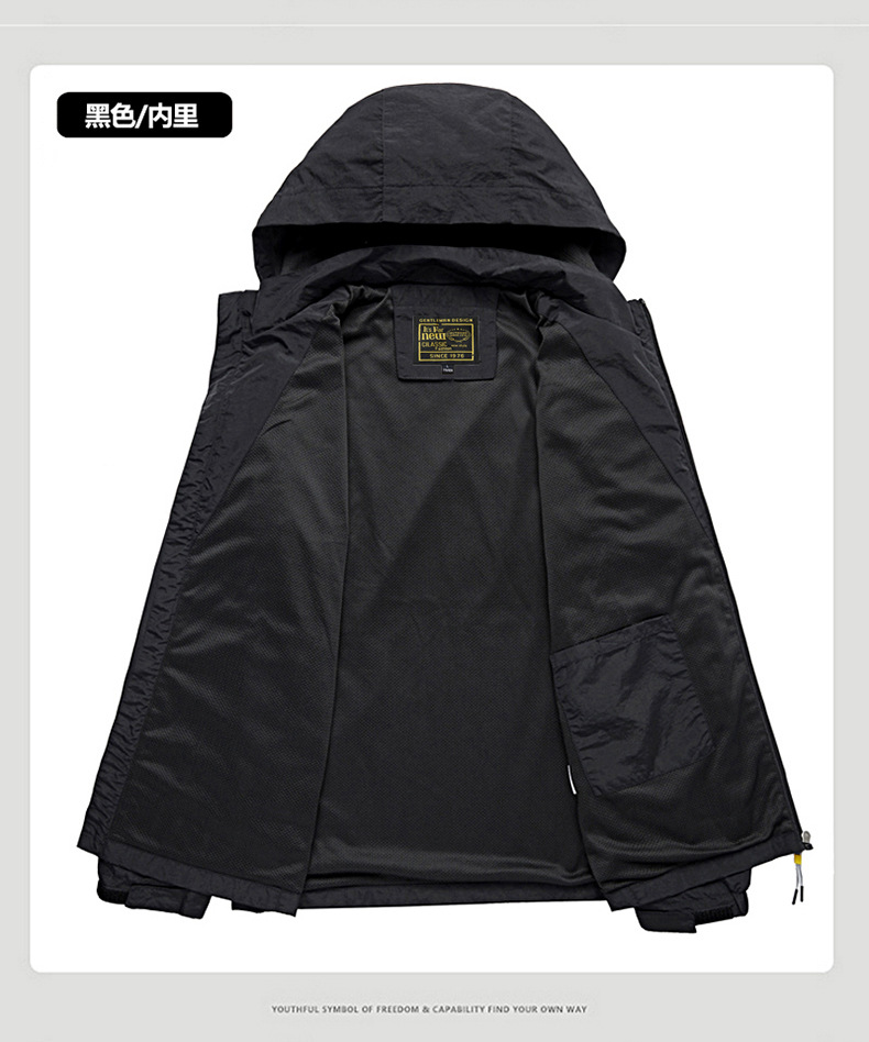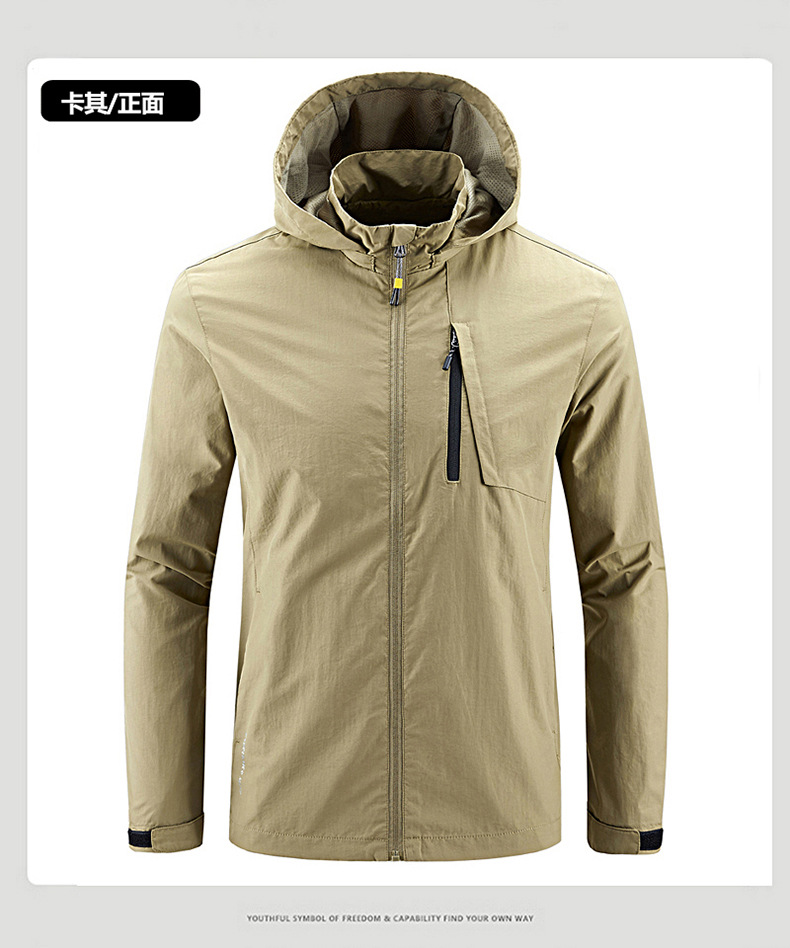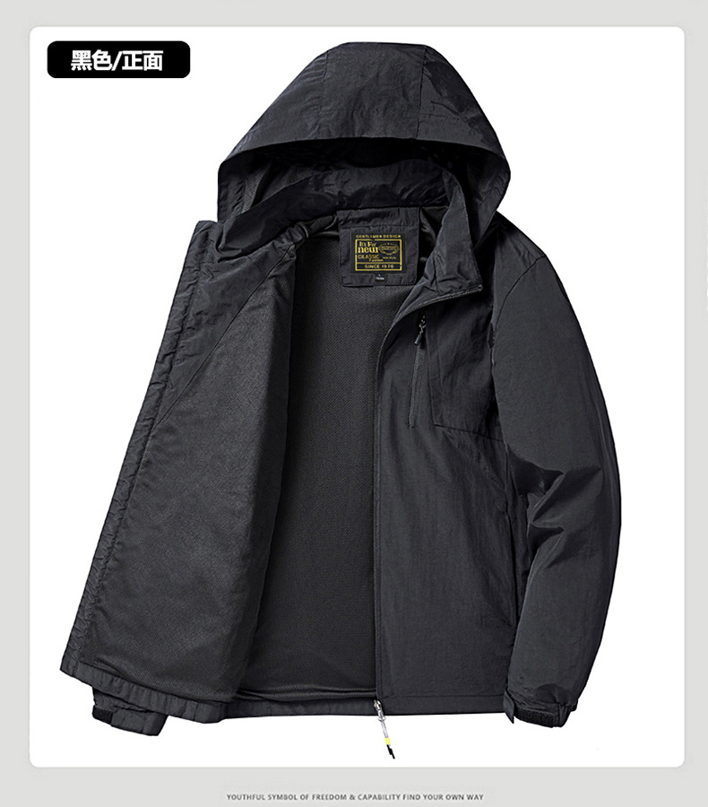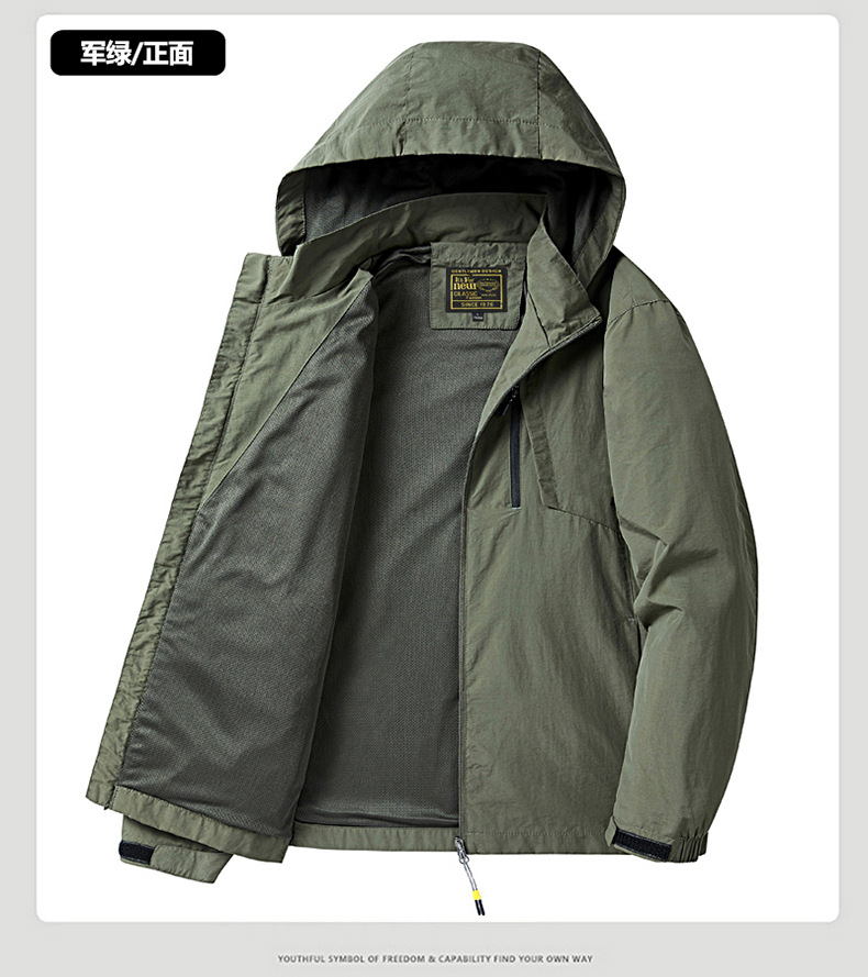 새로운 캐주얼 재킷 남성용 봄과 가을 야외 속건 방풍 재킷 남성용 남성용 탈착식 모자 등산 자켓