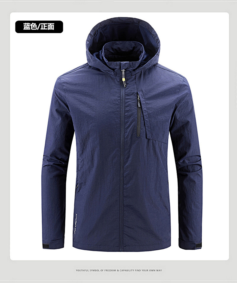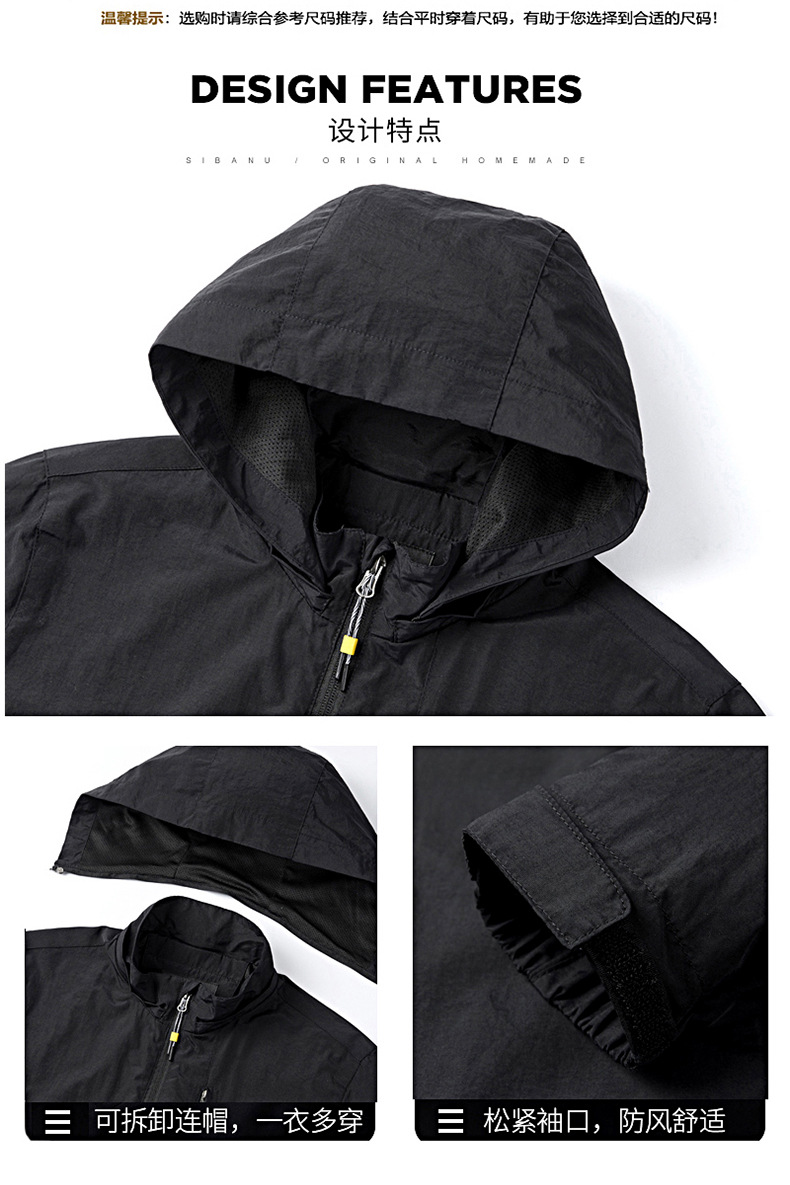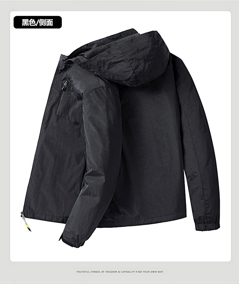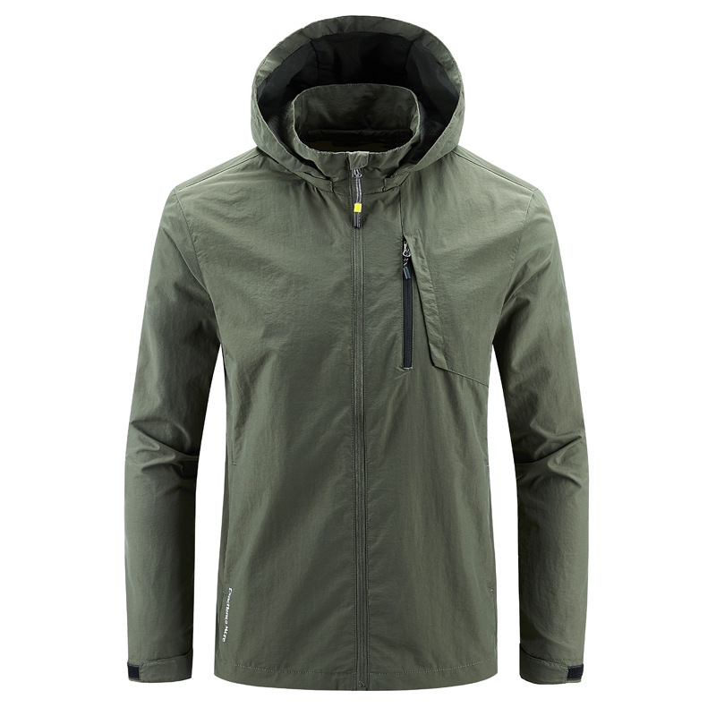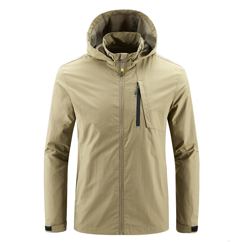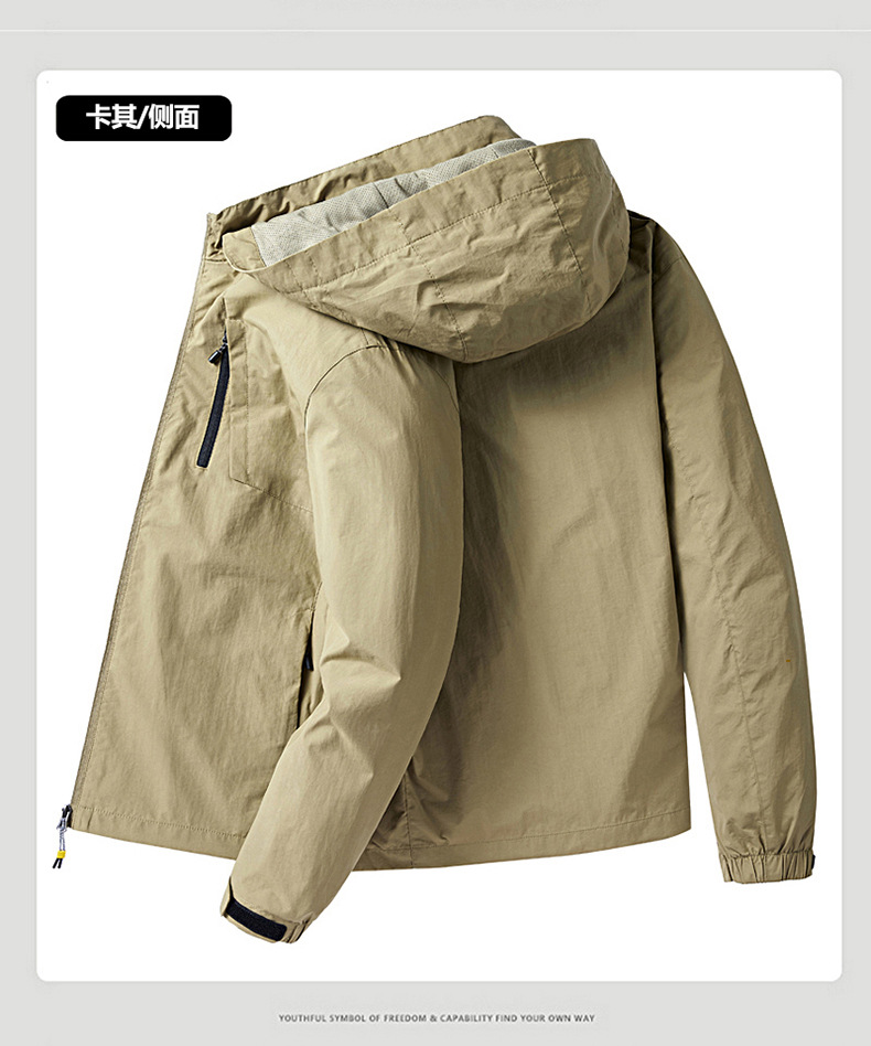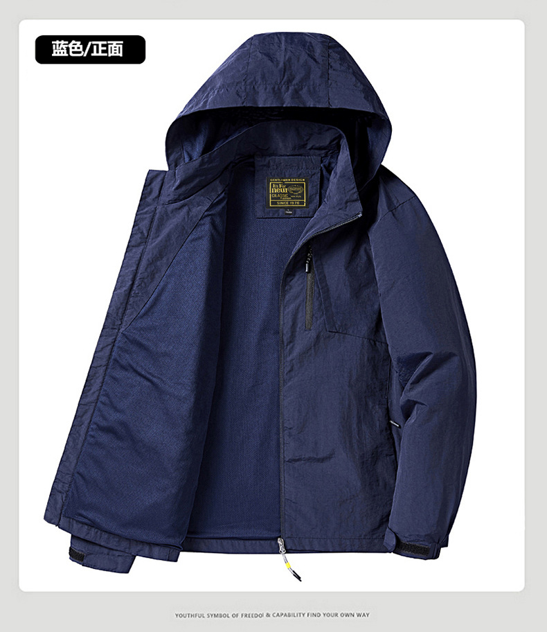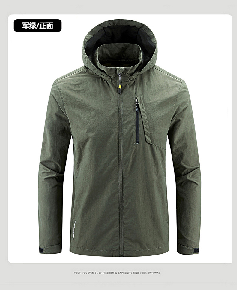 새로운 캐주얼 재킷 남성용 봄과 가을 야외 속건 방풍 재킷 남성용 남성용 탈착식 모자 등산 자켓