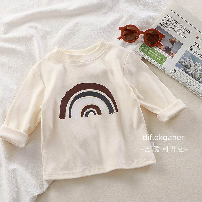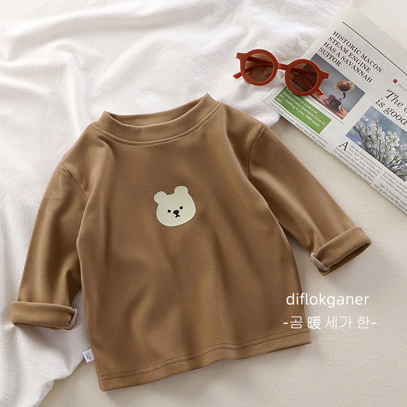 어린이 가을과 겨울 독일 벨벳 따뜻한 남성과 여성 아기 만화 한국 외국 스타일 긴 소매 기본 셔츠 내부 탑 스웨터