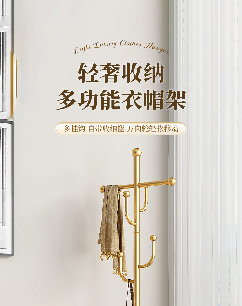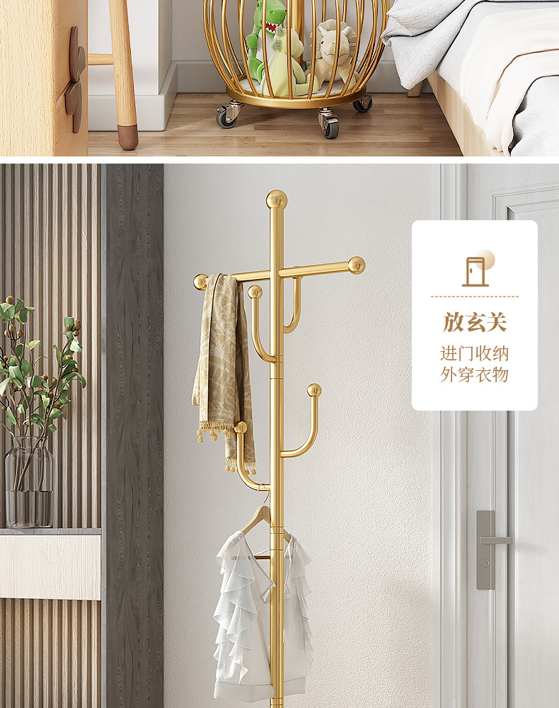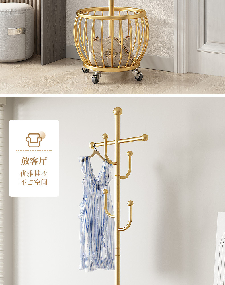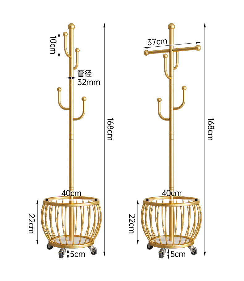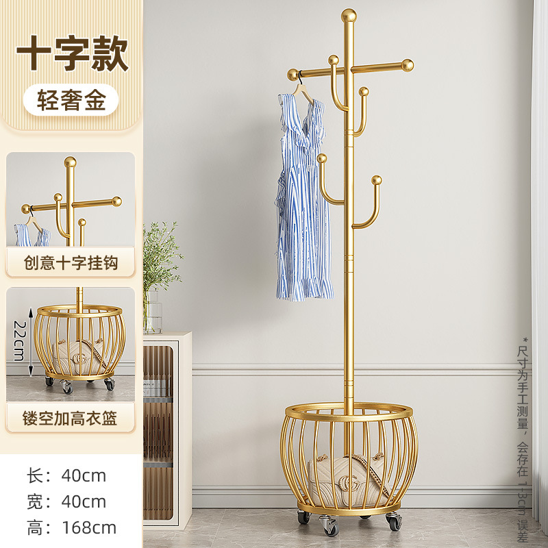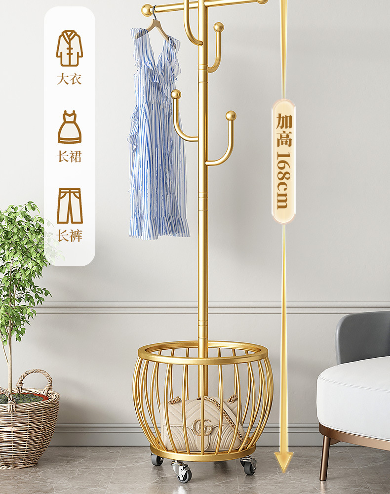 • [매우 두껍고 대담한 라이트 럭셔리 골드] 높이 168cm-크로스바 4 후크-범용 휠 벨트 프레임