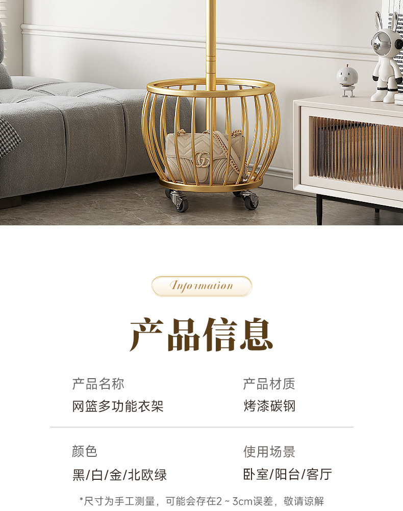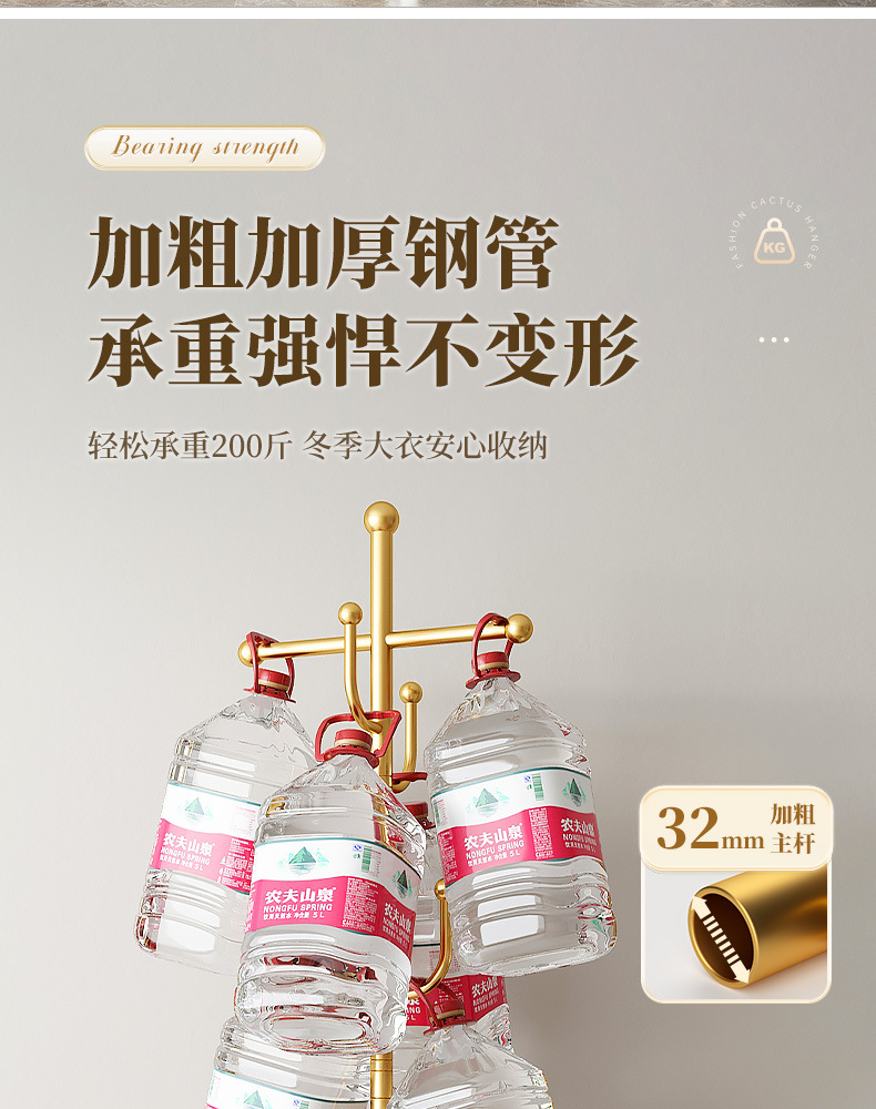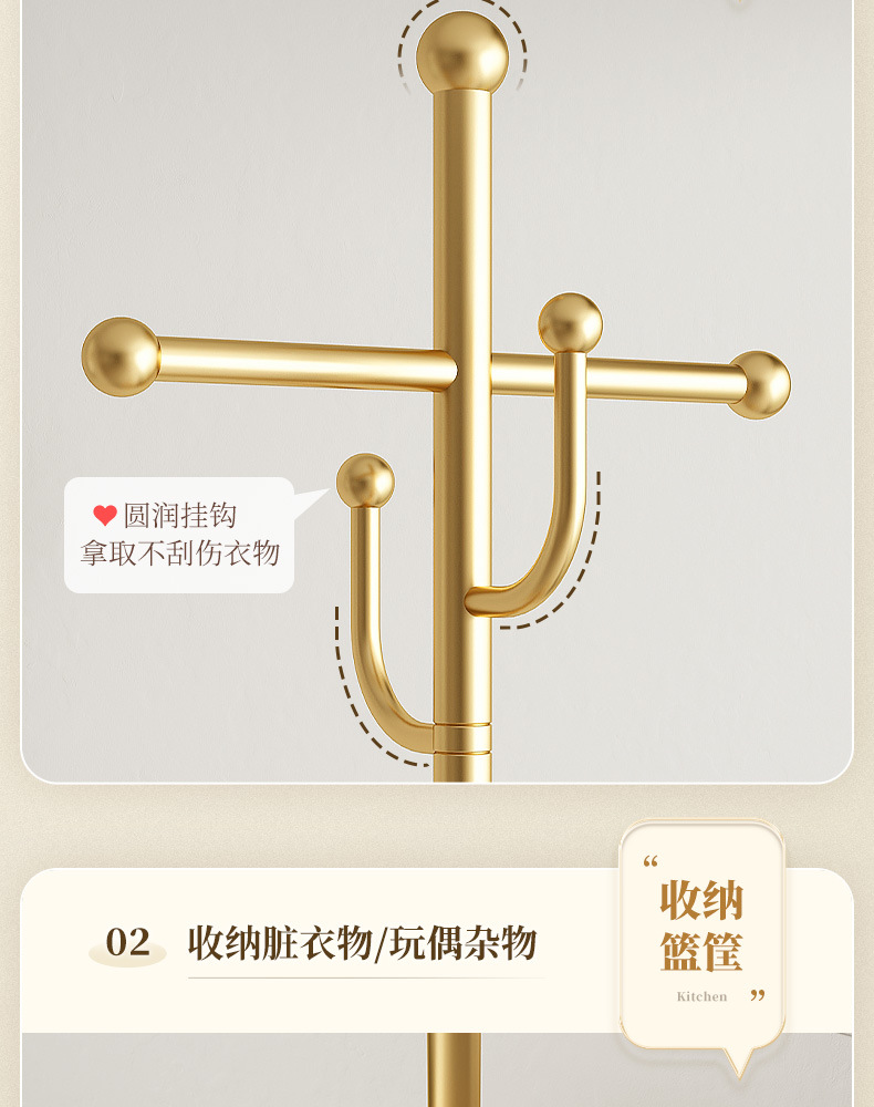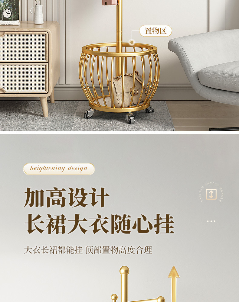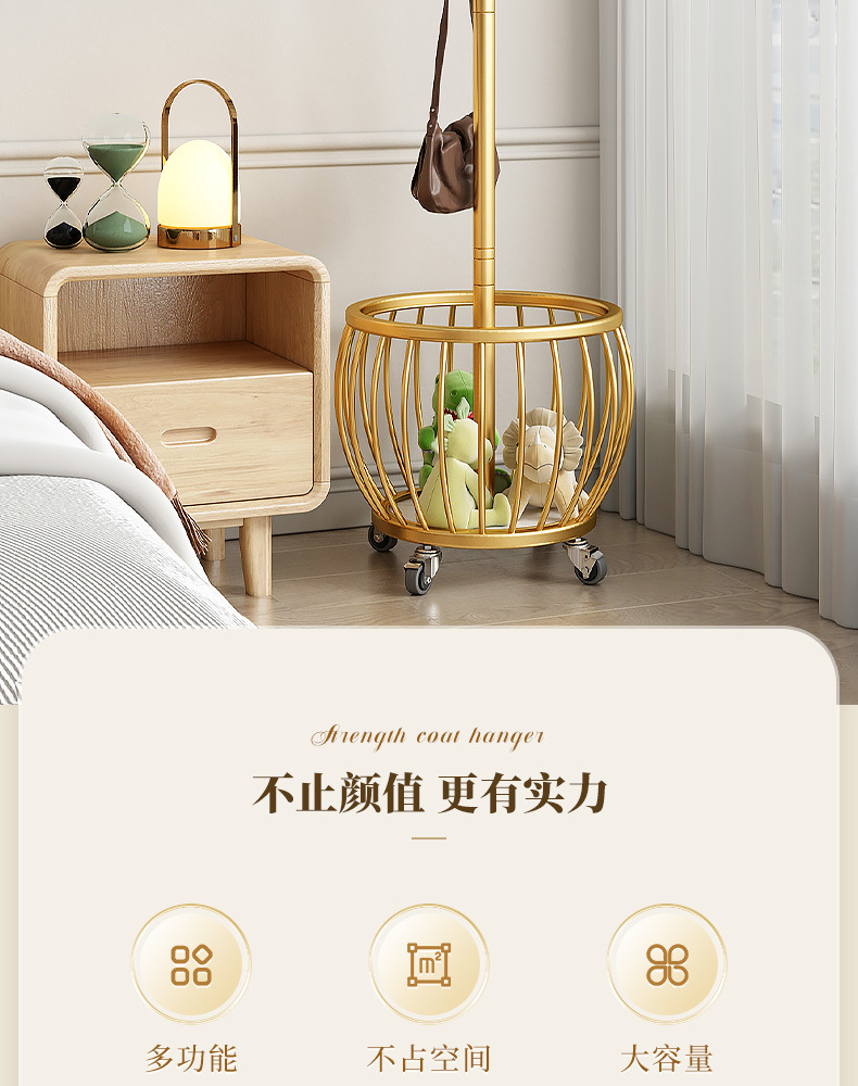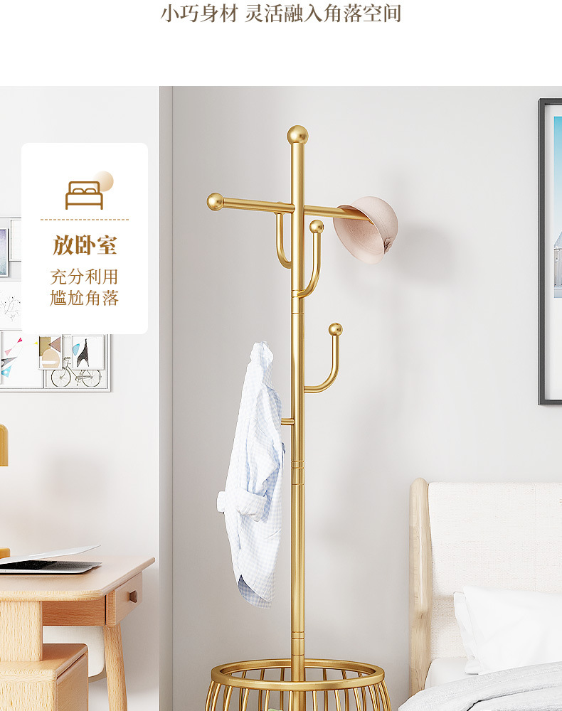 • [매우 두껍고 대담한 라이트 럭셔리 골드] 높이 168cm-크로스바 4 후크-범용 휠 벨트 프레임