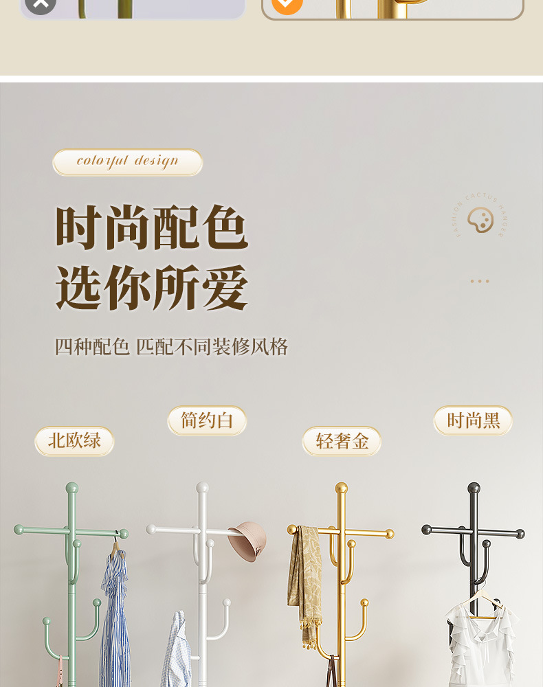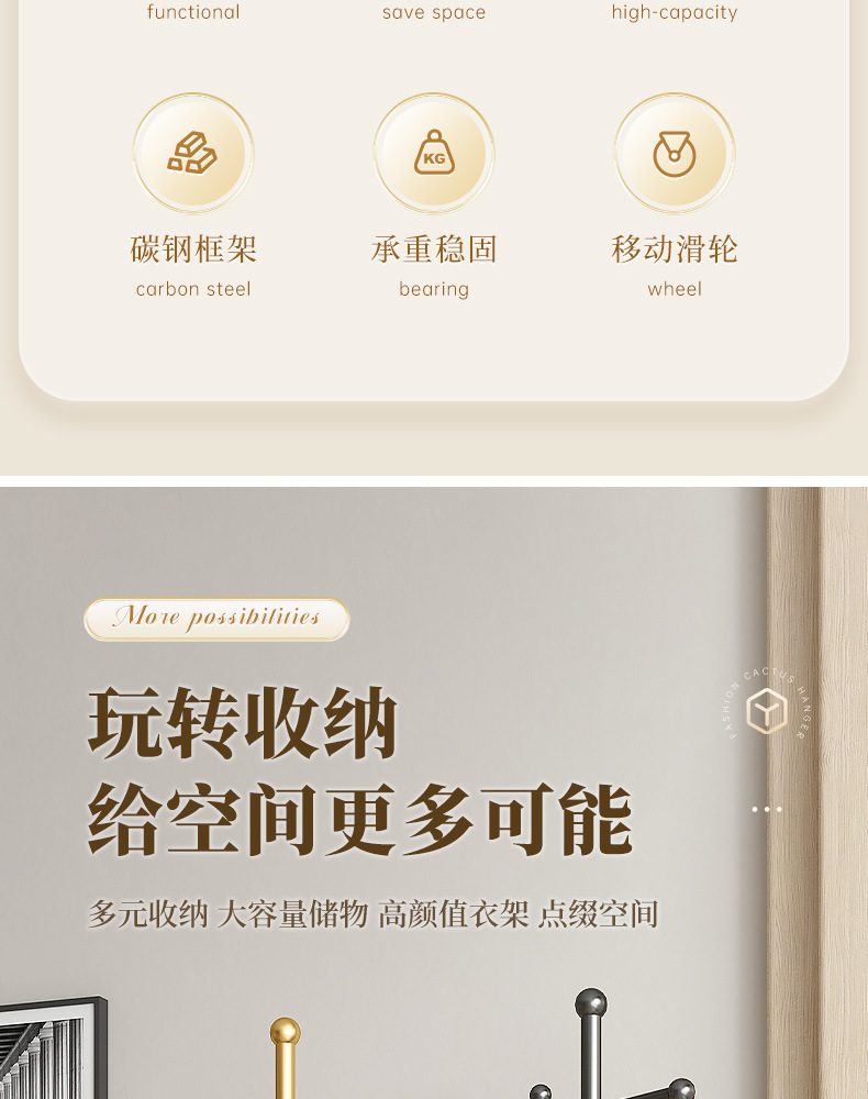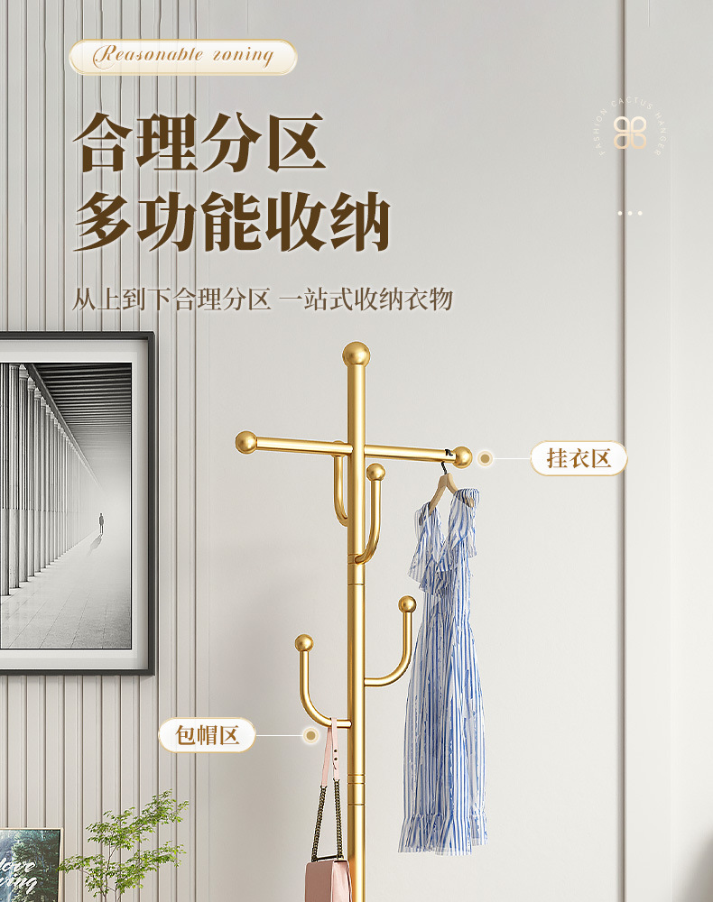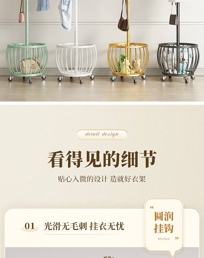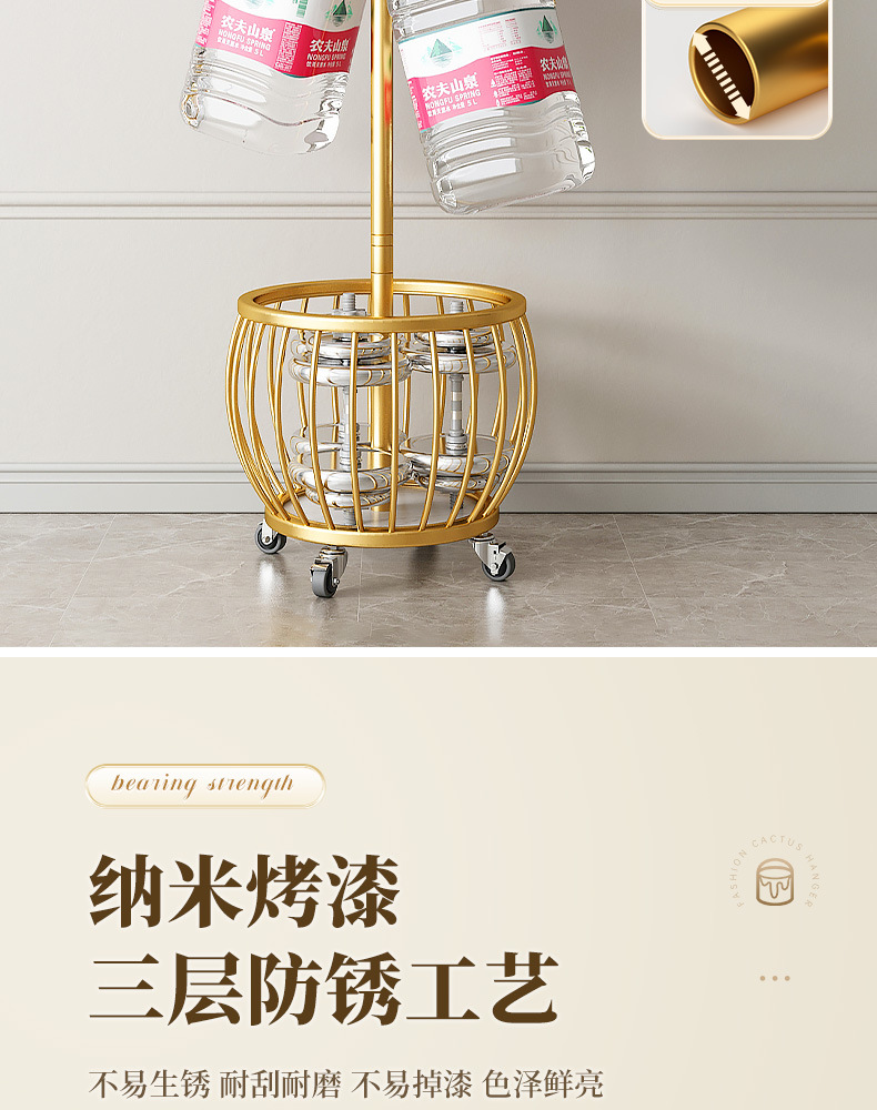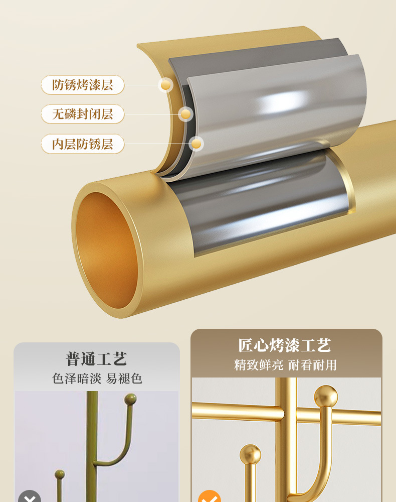 • [매우 두껍고 대담한 라이트 럭셔리 골드] 높이 168cm-크로스바 4 후크-범용 휠 벨트 프레임