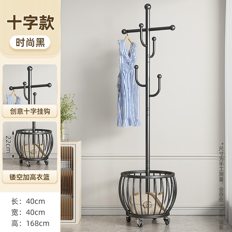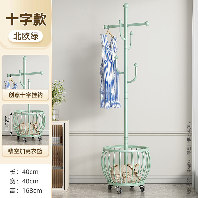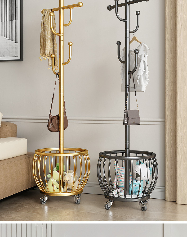 침실 바닥 걸이 철 코트 랙 이동식 가정용 기숙사 보관 바구니 더러운 옷 바구니 의류 랙스토어 가기