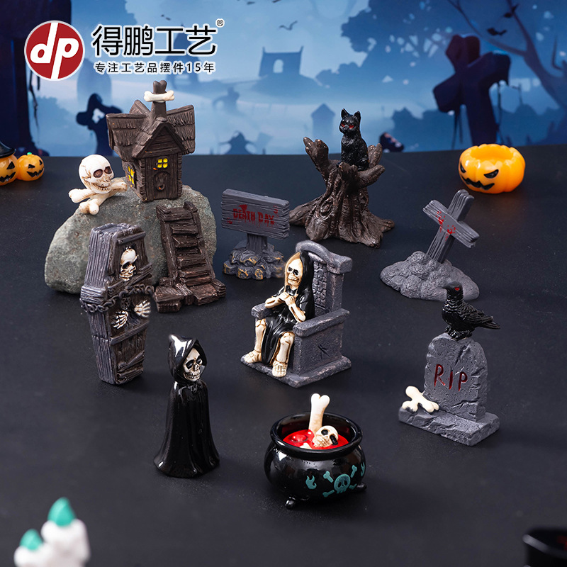 할로윈 작은 장식품 두개골 미라 부활 유령 축제 공포 수지 장식품 홈 데스크탑 창조적 인 장식