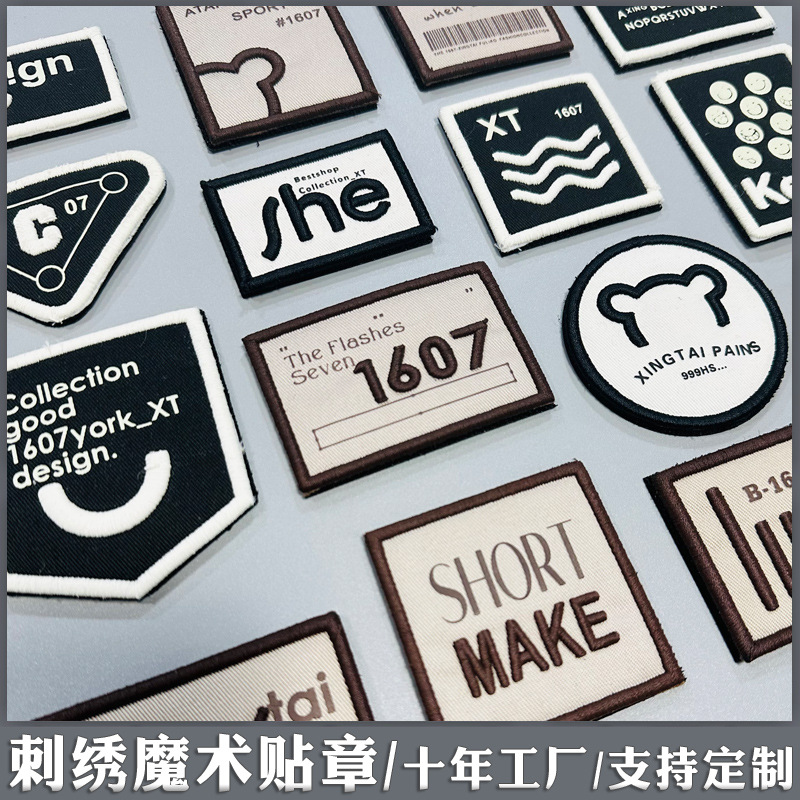 자수 벨크로 라벨 10년 경력 공장 양각 자수 오프셋 인쇄 결합 공정 라벨 의류 다운 재킷 장식 라벨