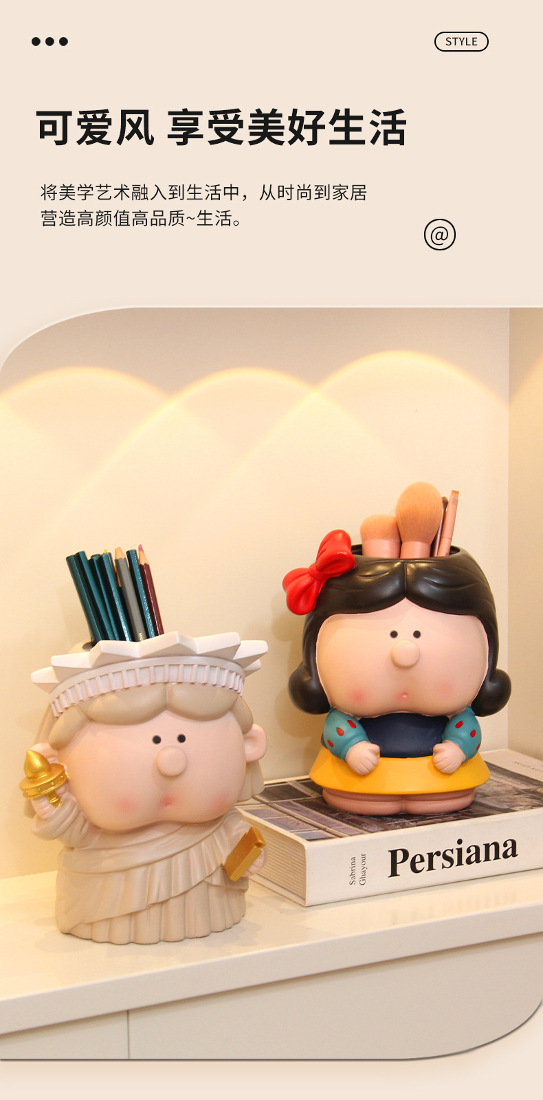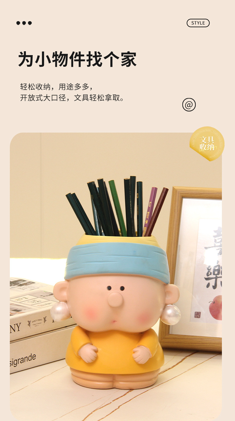 진주 소녀 펜 용기 장식품 화장품 브러쉬 립스틱 보관 양동이 사무실 데스크탑 어린이 방 장식 여자 선물스토어 가기