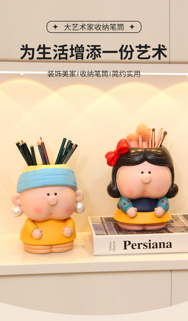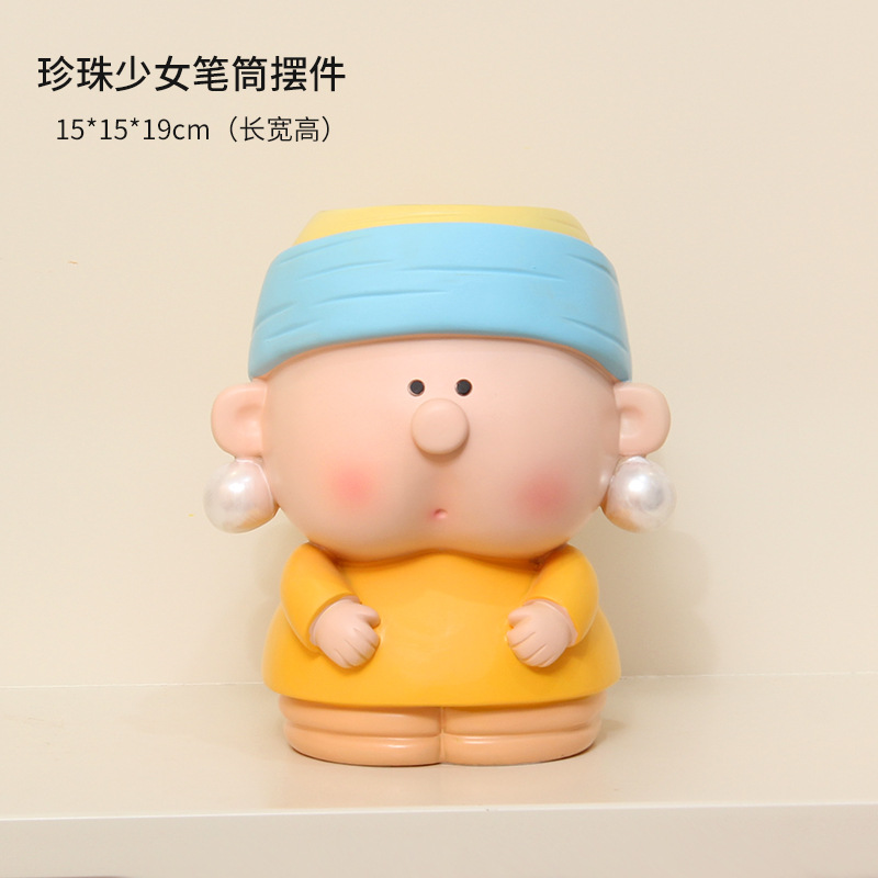 진주 소녀 펜 용기 장식품 화장품 브러쉬 립스틱 보관 양동이 사무실 데스크탑 어린이 방 장식 여자 선물