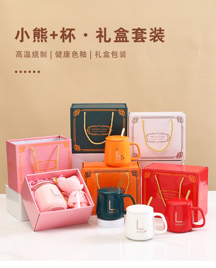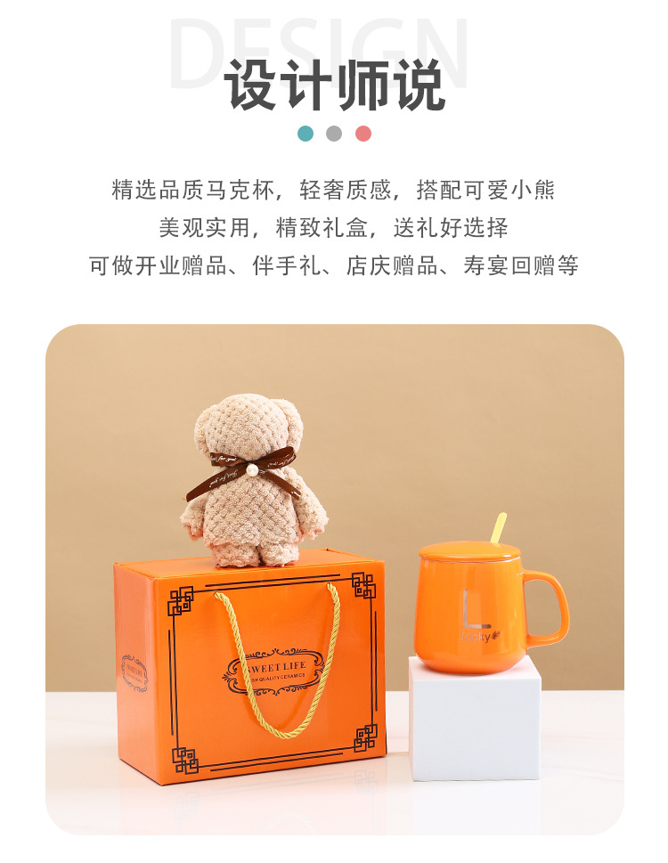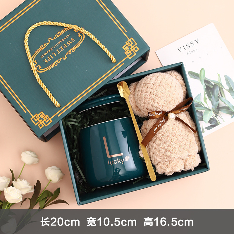 세라믹 머그 선물 상자 북유럽 스타일 곰 수건 컵 세라믹 컵 결혼식 동반 선물 세트 이벤트 선물스토어 가기