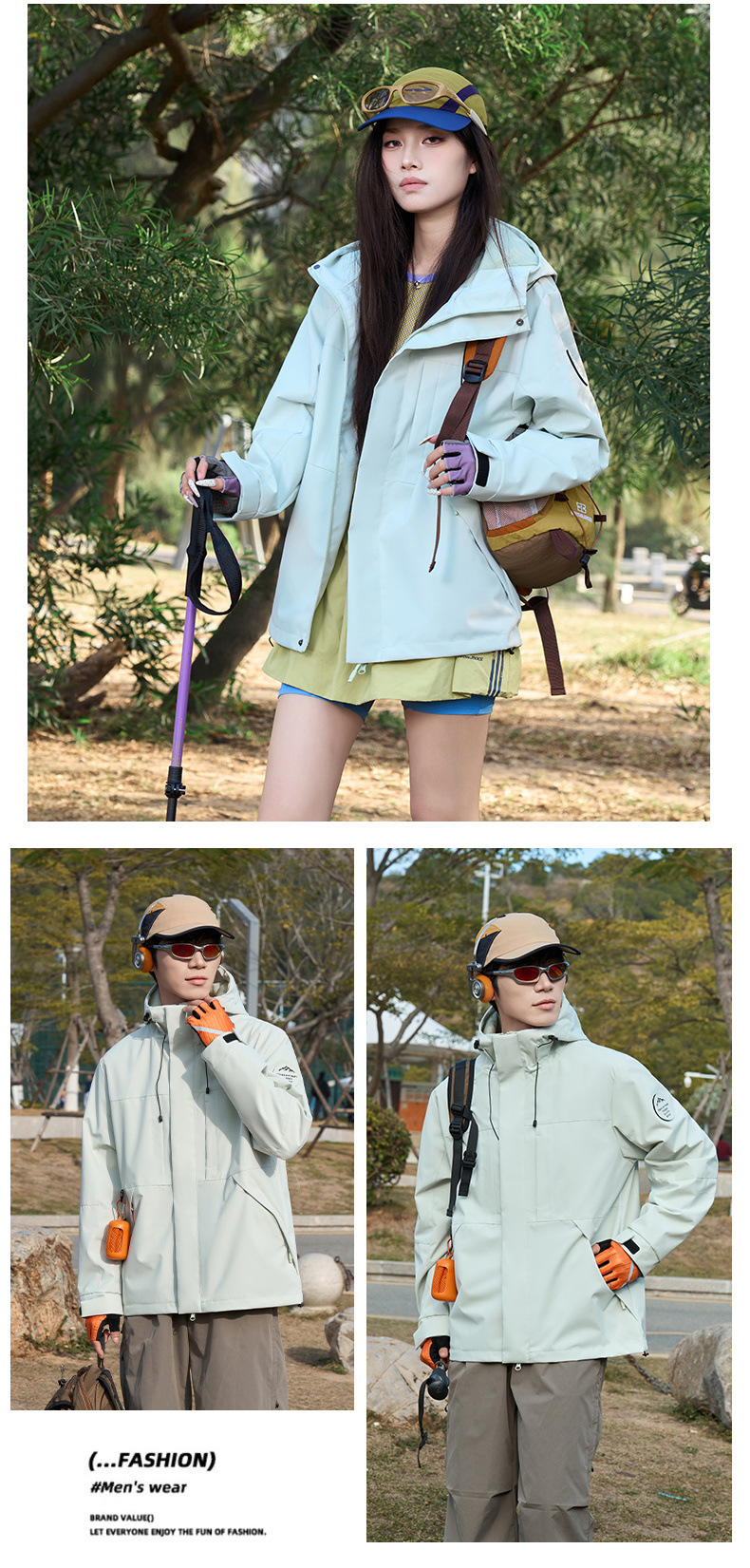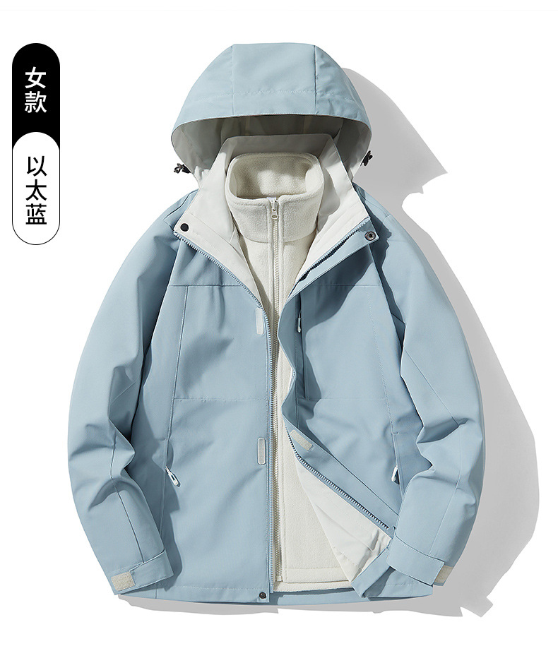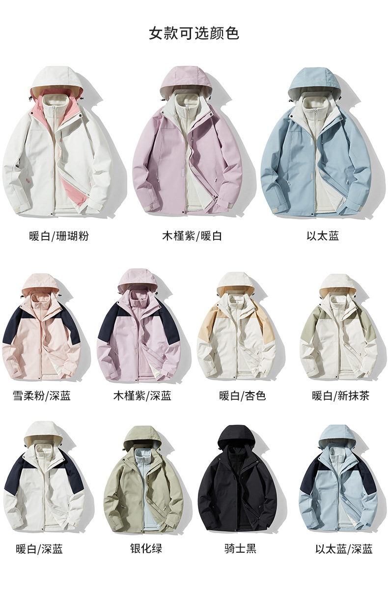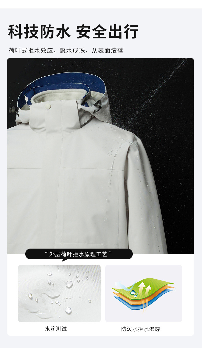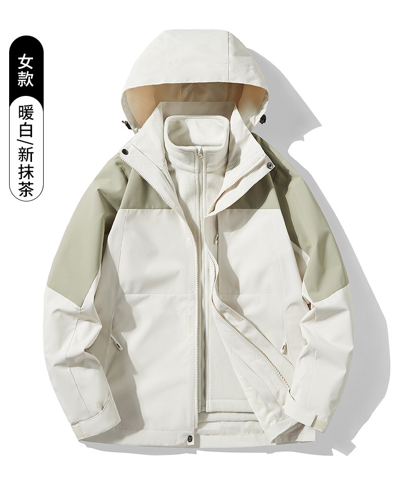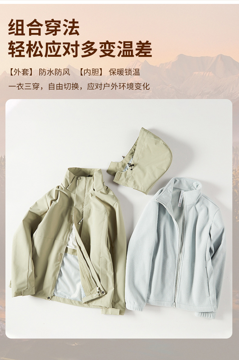 여성용 싱글 레이어 얇은 방수 재킷, 3-in-1 방수 투피스 세트, 남성용 방풍 아웃도어 등산복, 플리스 안감 재킷스토어 가기