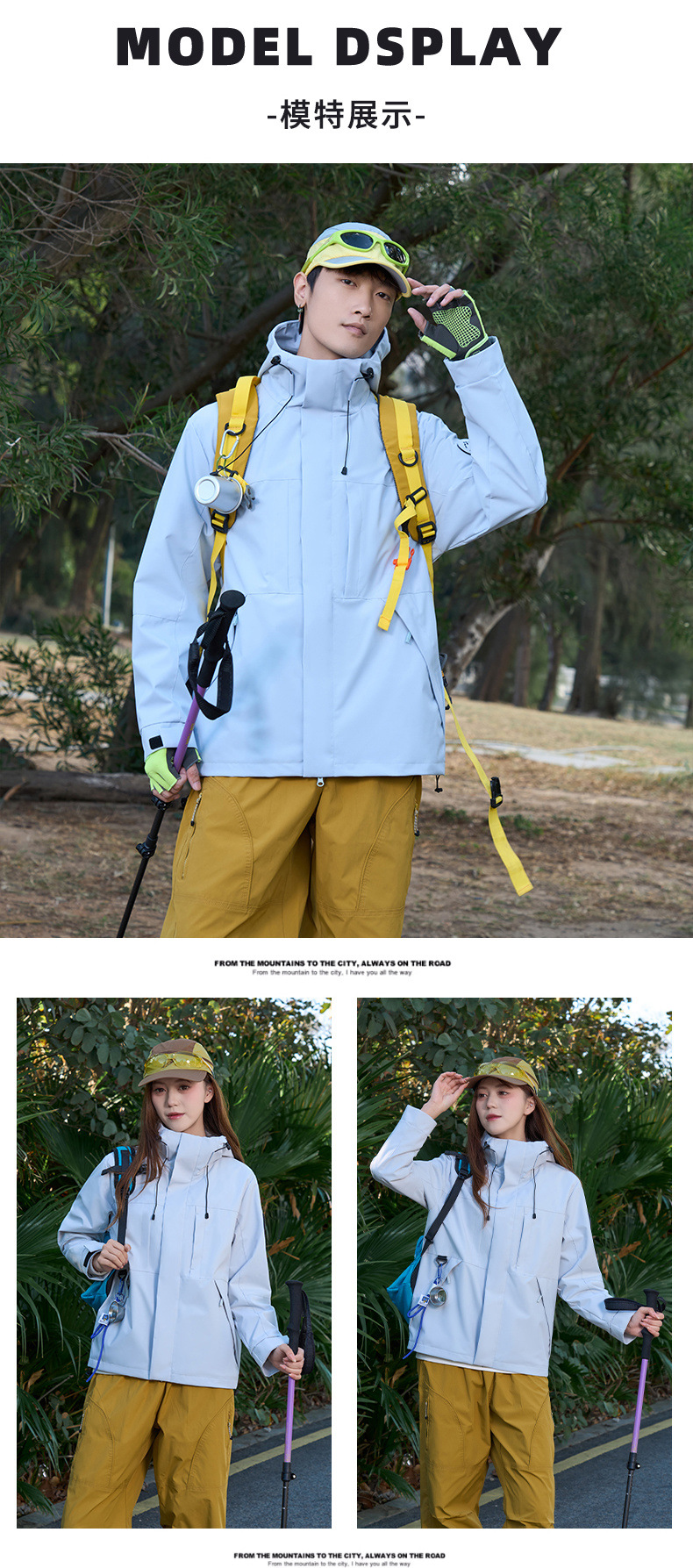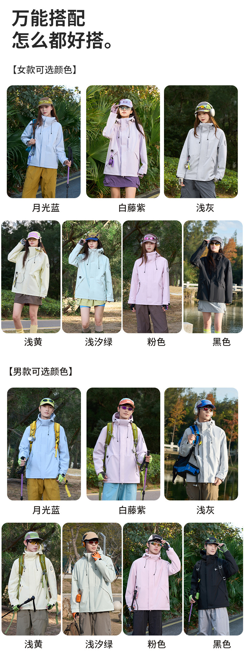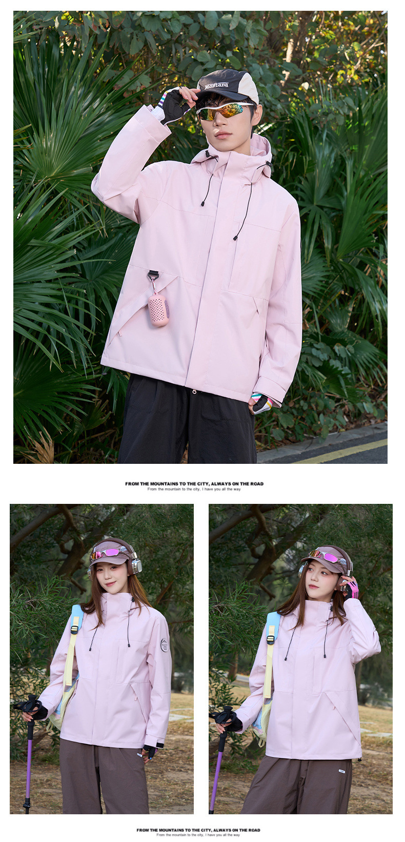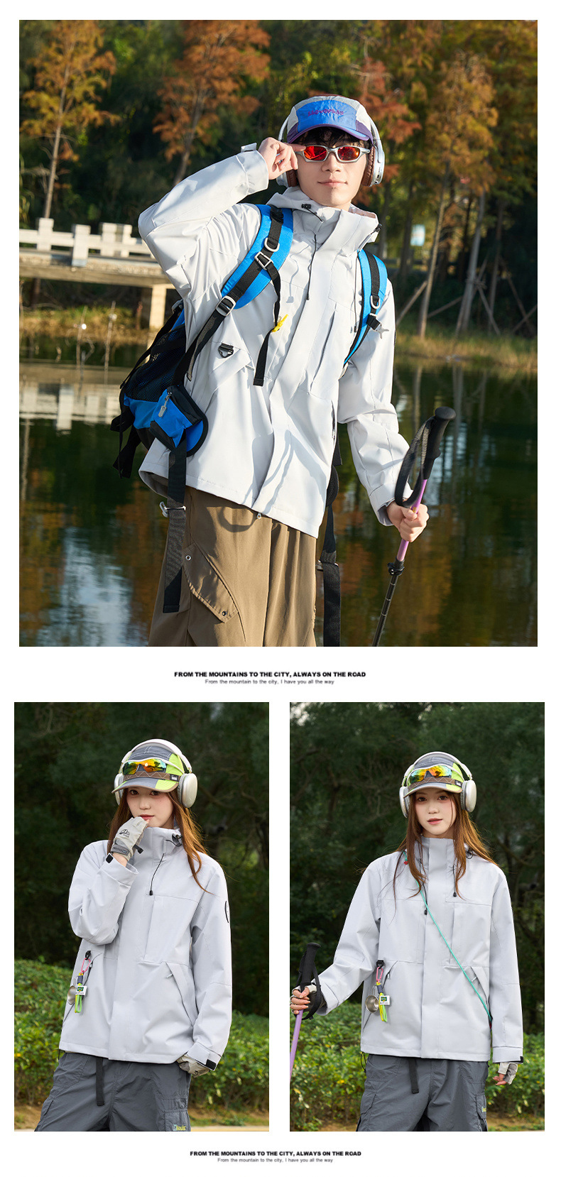 여성용 싱글 레이어 얇은 방수 재킷, 3-in-1 방수 투피스 세트, 남성용 방풍 아웃도어 등산복, 플리스 안감 재킷스토어 가기