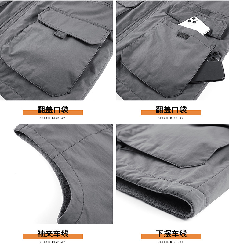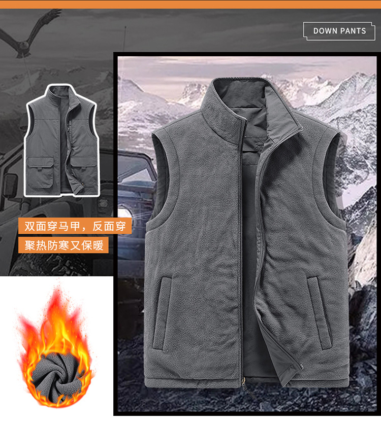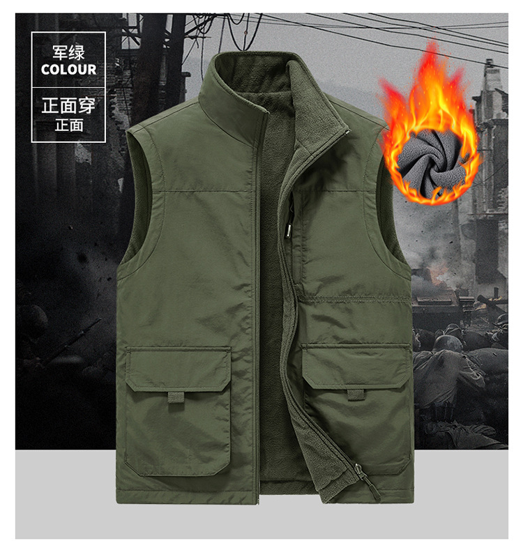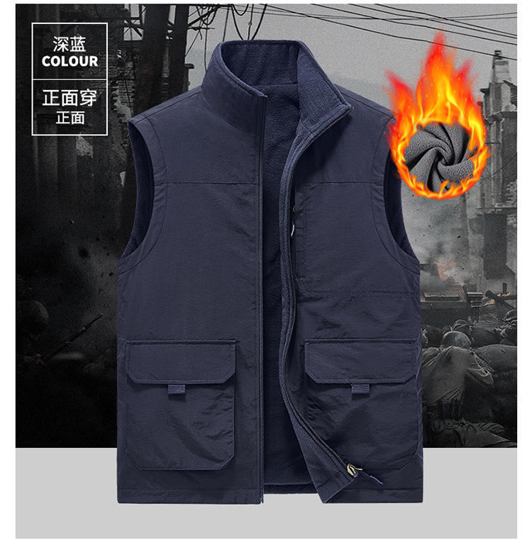 [양면착용] 기모 조끼 야외 속건 남성용 얇은 작업복 조끼 낚시 사진 조끼 플러스 사이즈