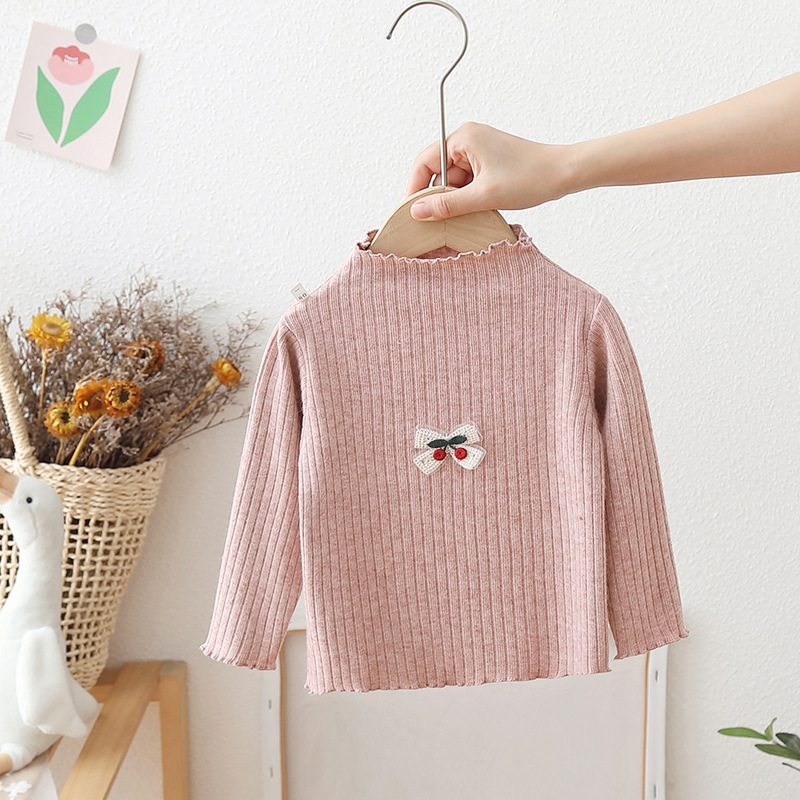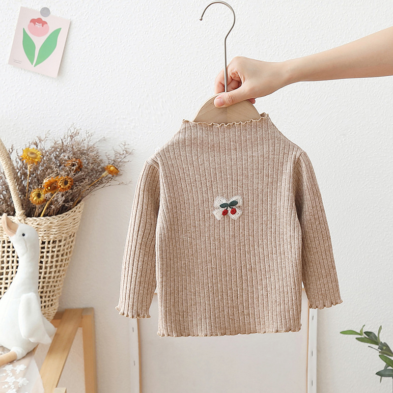 여아 가을 하의 셔츠 얇은 새 스타일 베이비 하프 터틀넥 스트레치 이너웨어 아동용 체리 스웨터 a스토어 가기