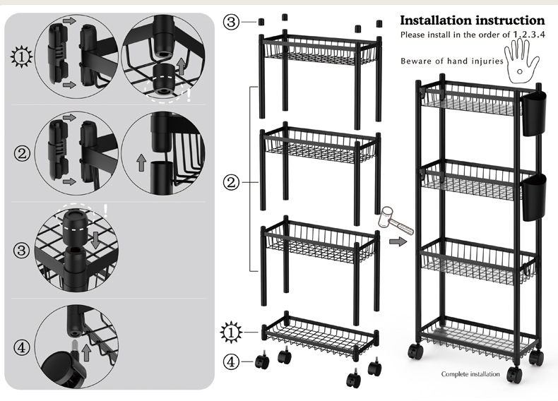 ITEM NO.:4017-4(四层夹缝置物架;落地;带轮)↓↓