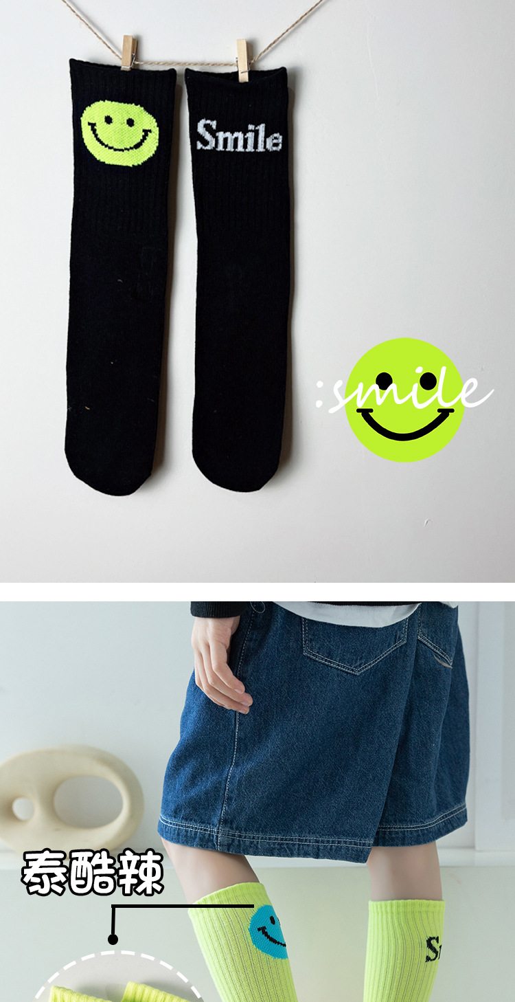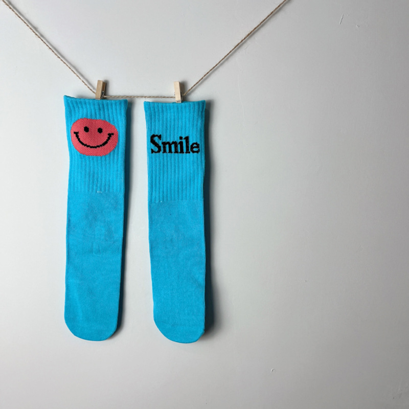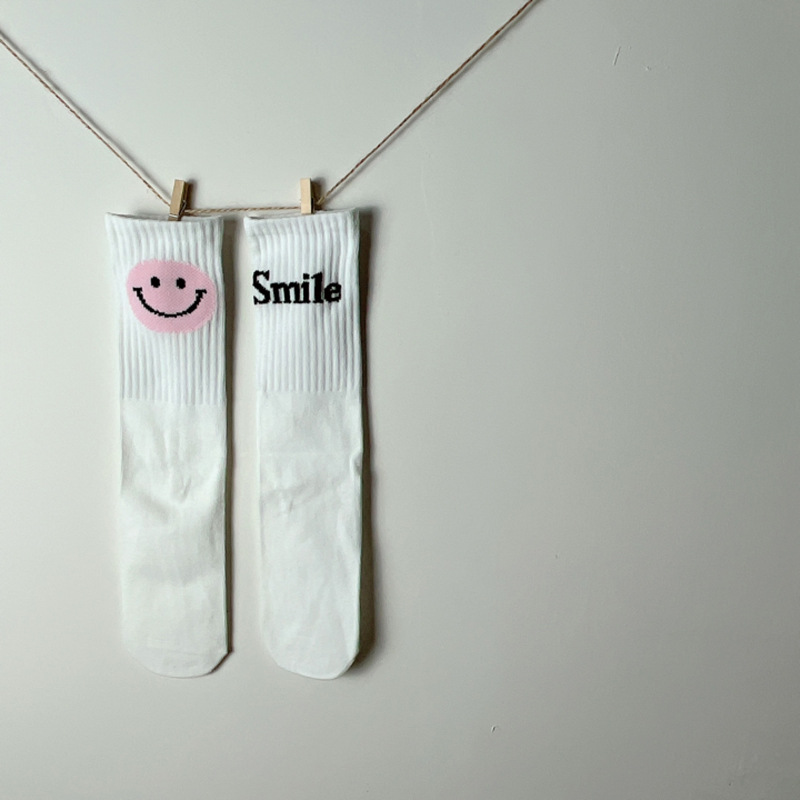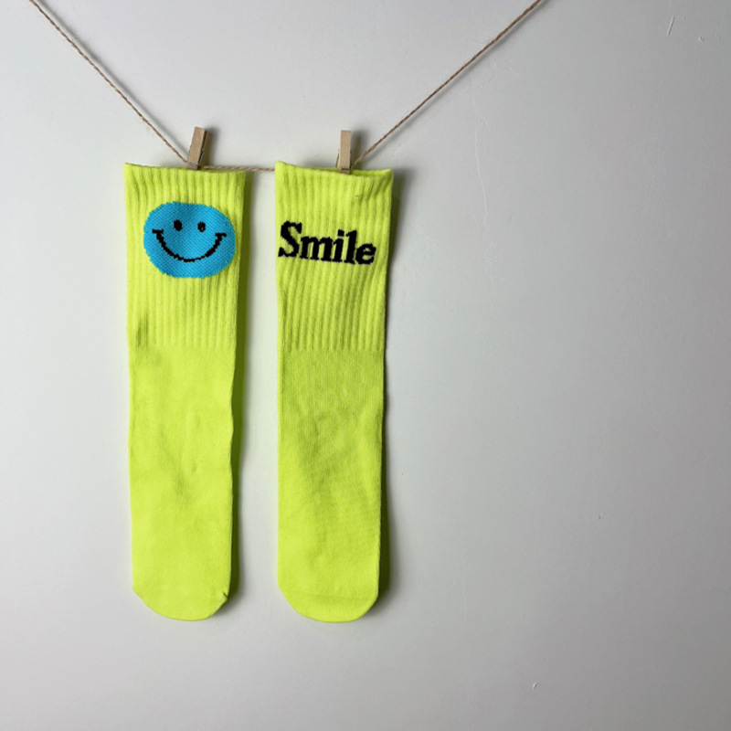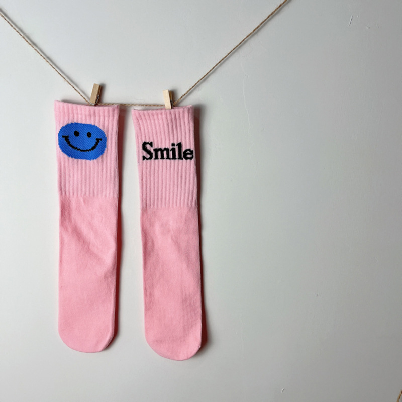 새로운 어린이 유행 양말 AB 버전 소년 소녀 송아지 양말 아기 높은 양말 한국 스마일 얼굴 양말 핑크 그린