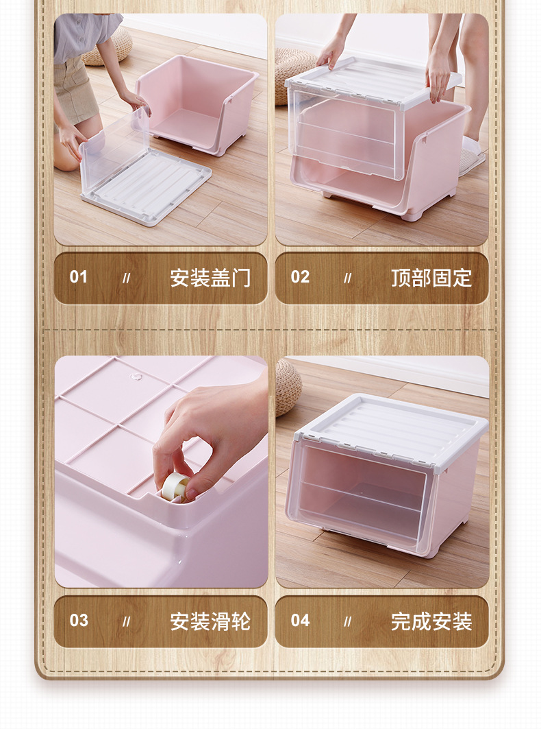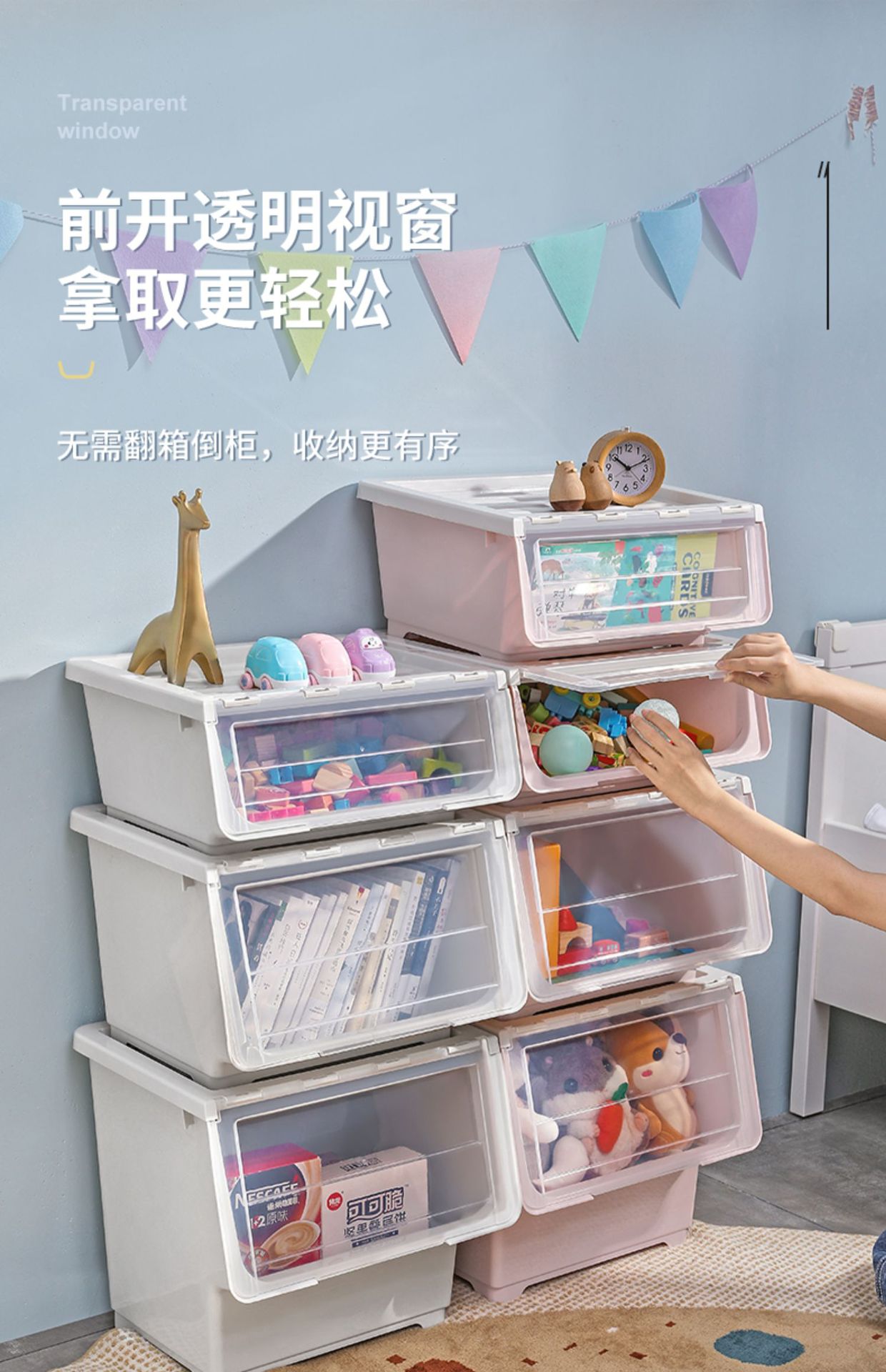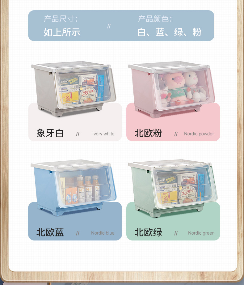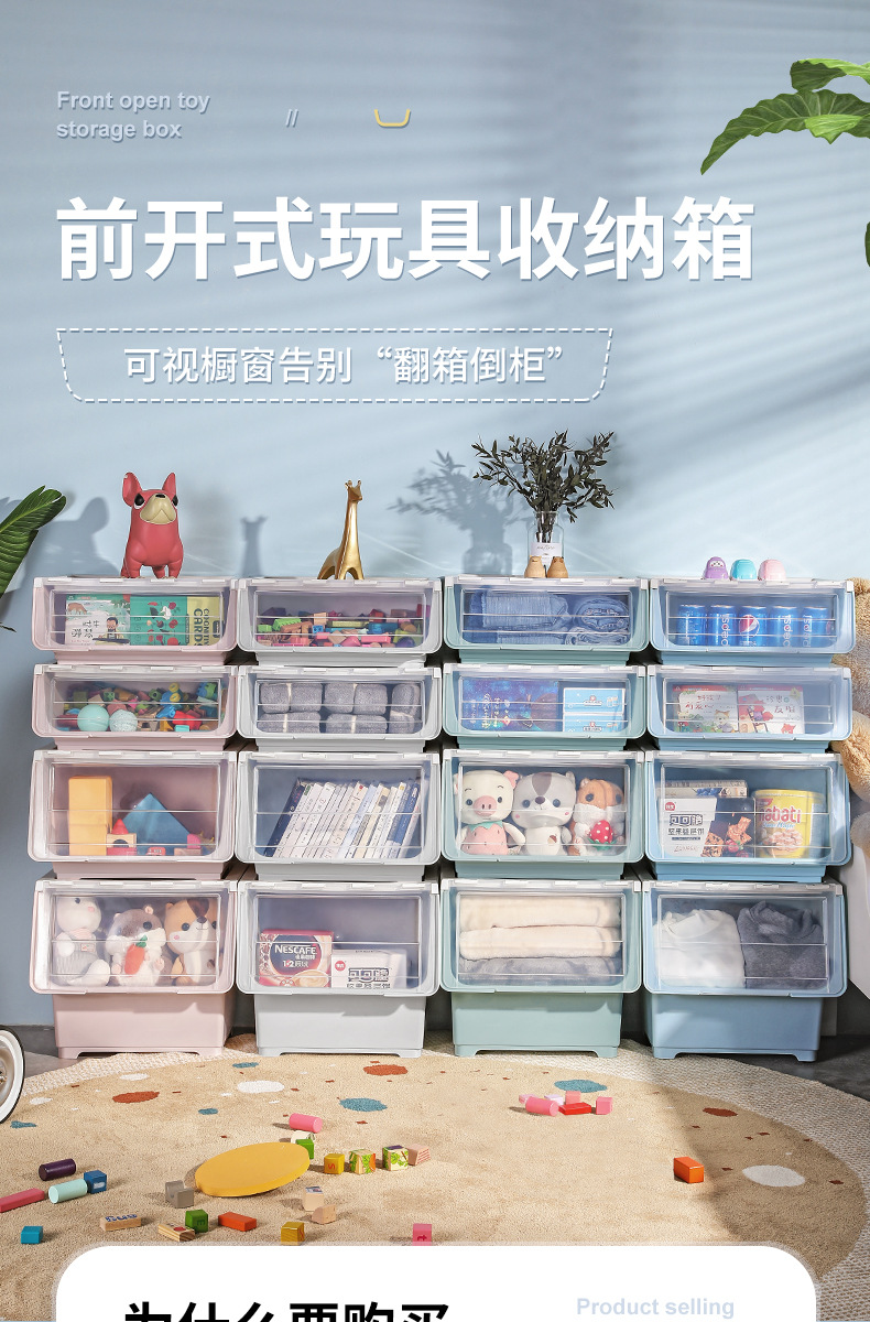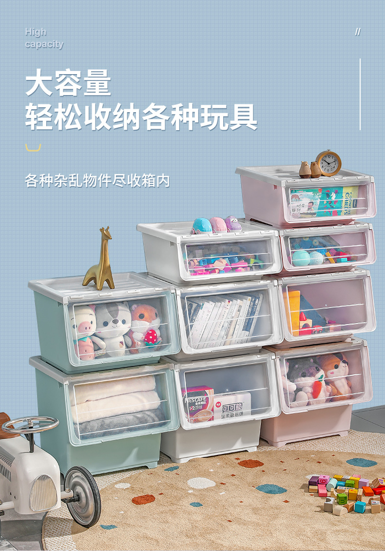 전면 오픈 어린이 장난감 보관함 주최자 투명 플립 스낵 서랍 보관 캐비닛 보관함