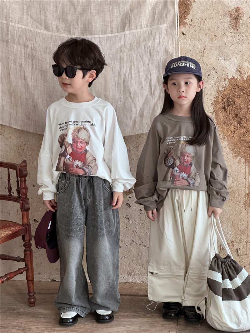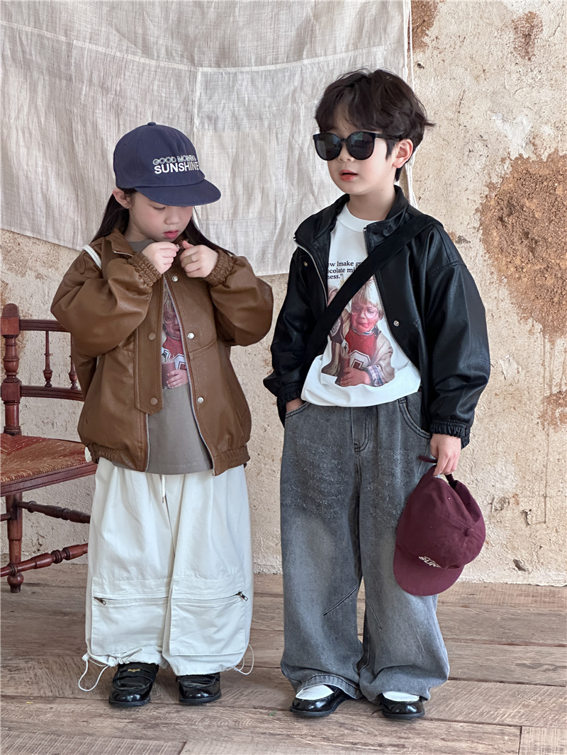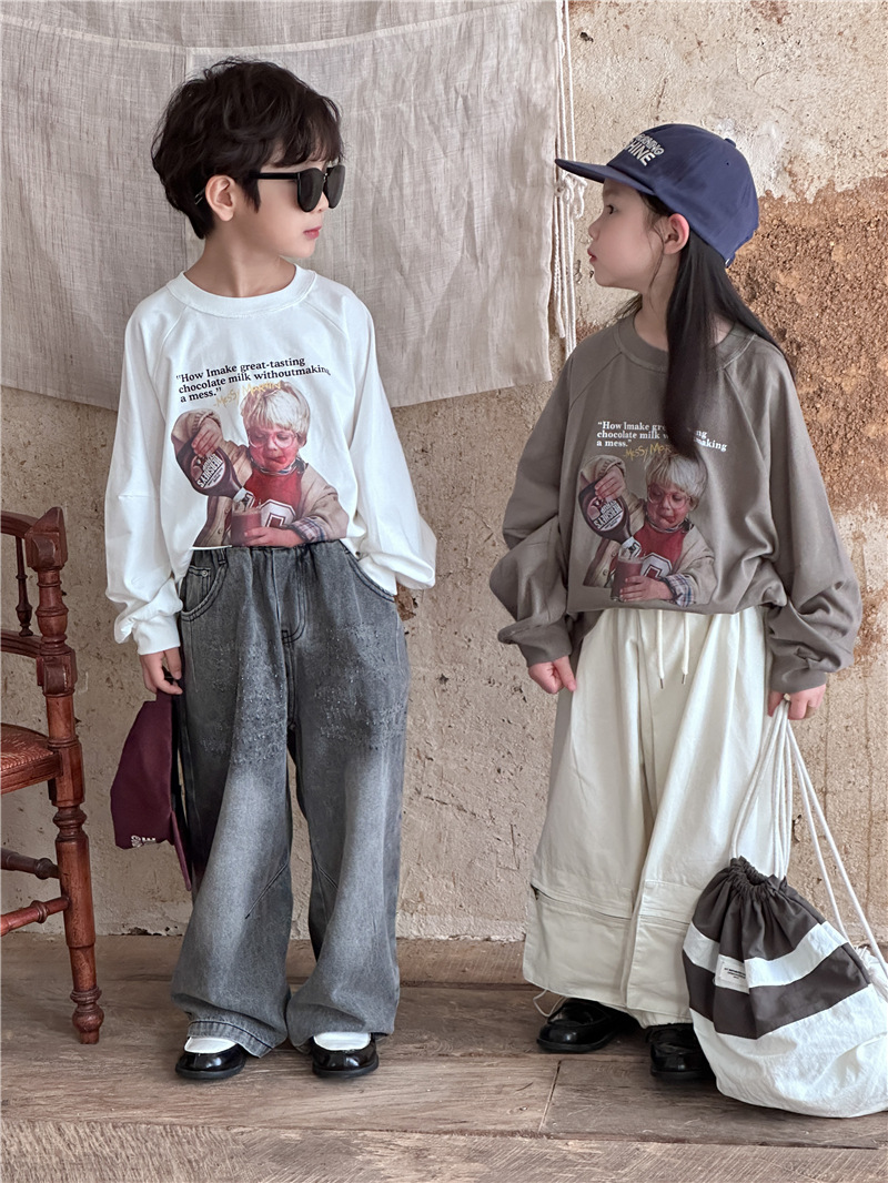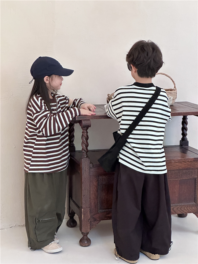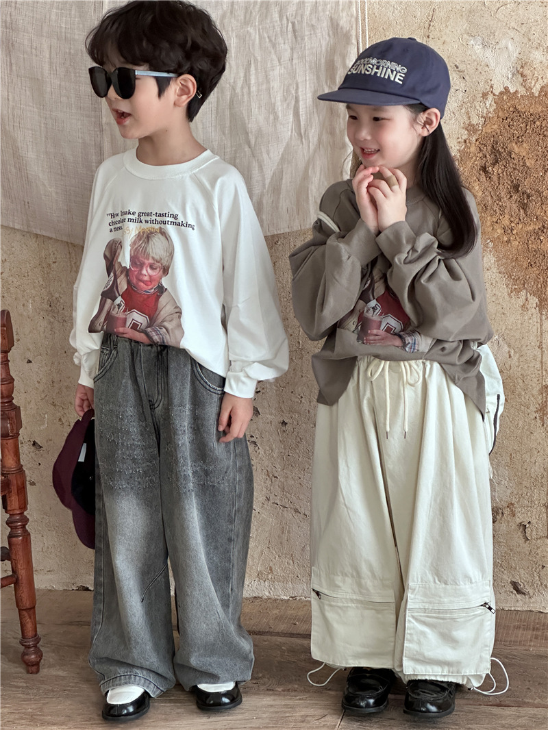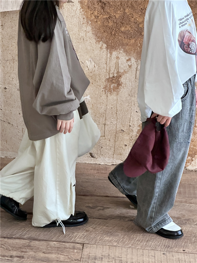 2024 년 봄 새로운 도착 한국 스타일 어린이 작업복 소년 소녀를위한 느슨한 캐주얼 바지