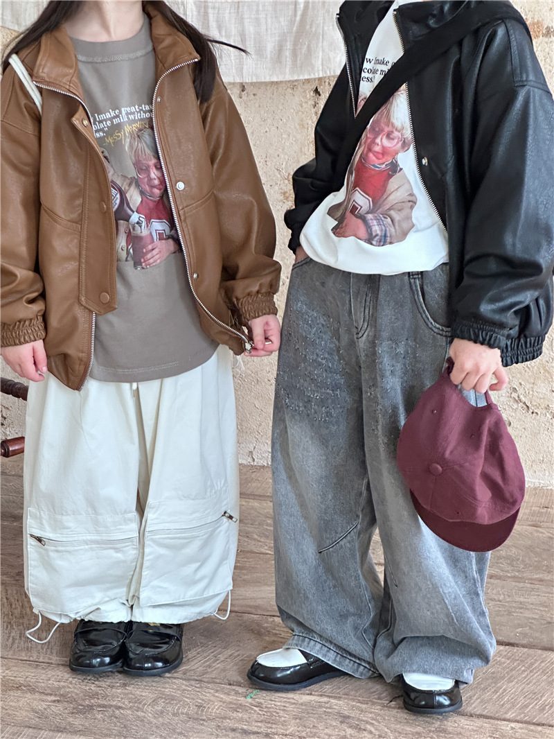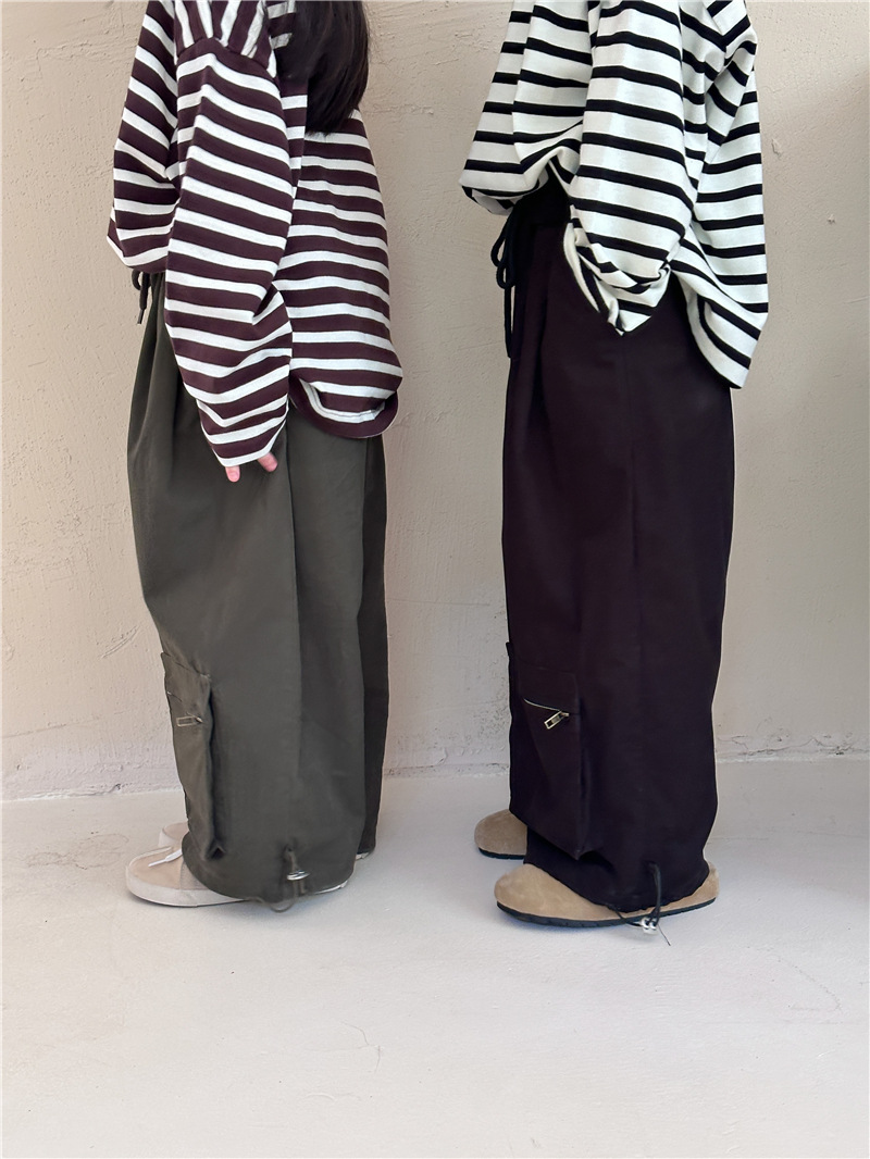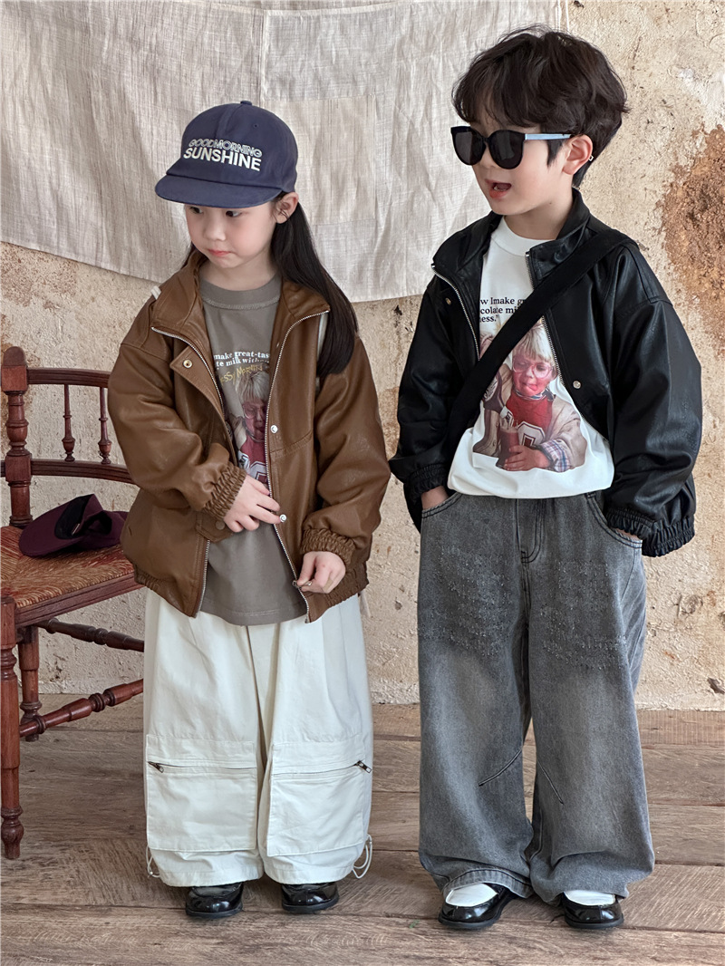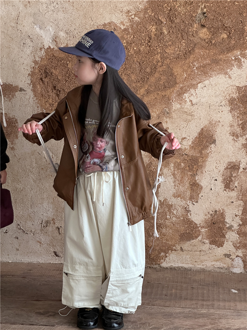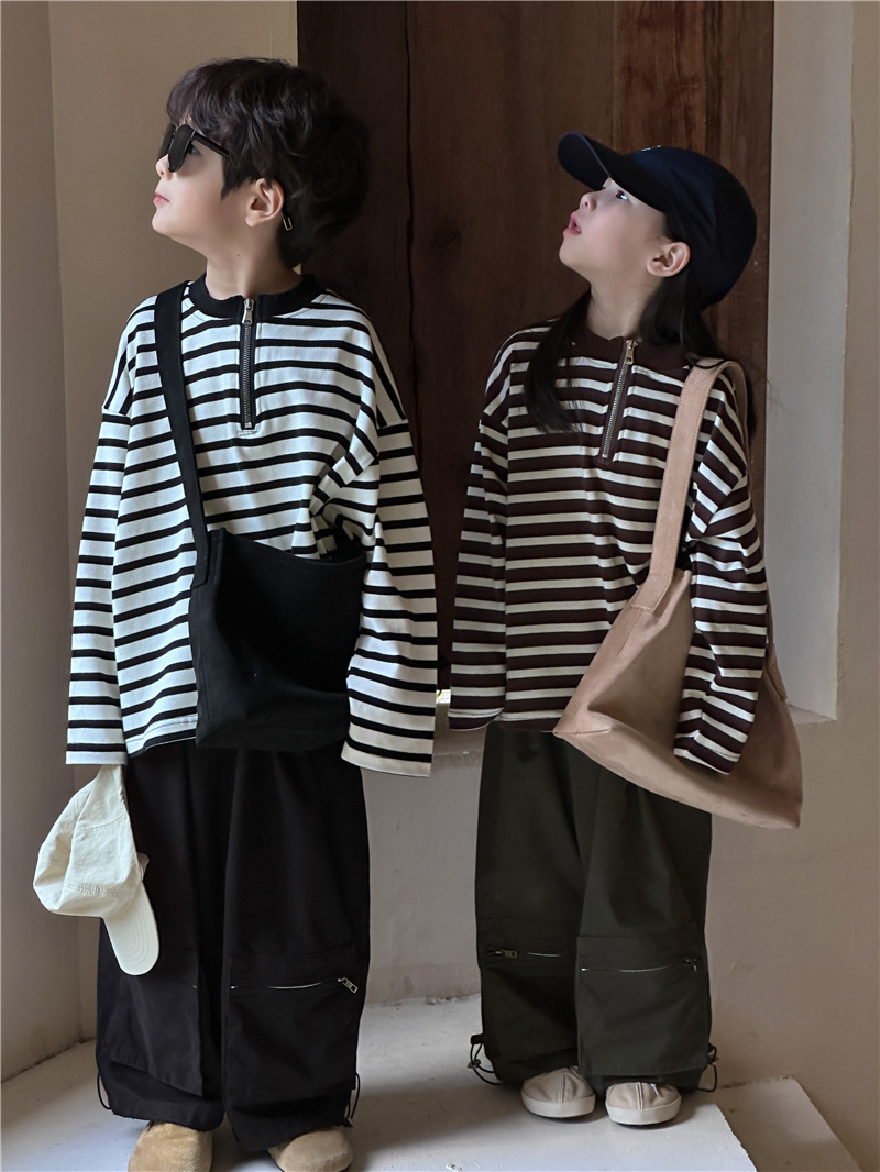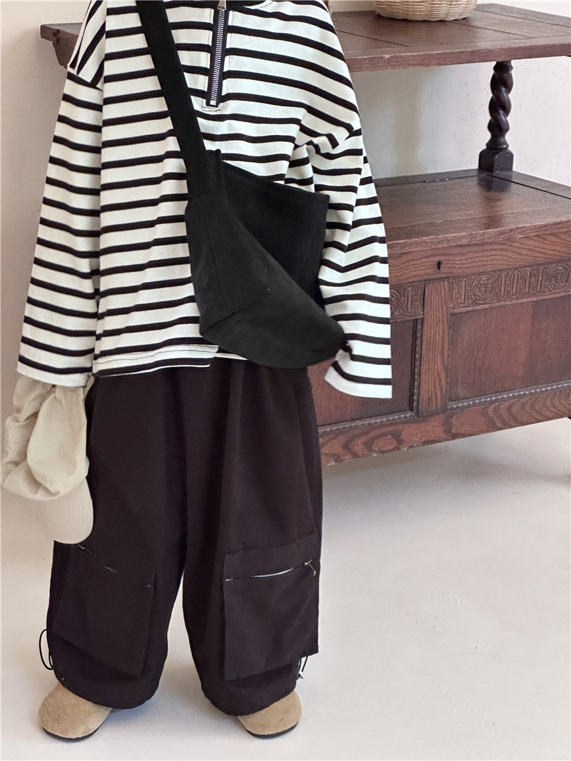 2024 년 봄 새로운 도착 한국 스타일 어린이 작업복 소년 소녀를위한 느슨한 캐주얼 바지