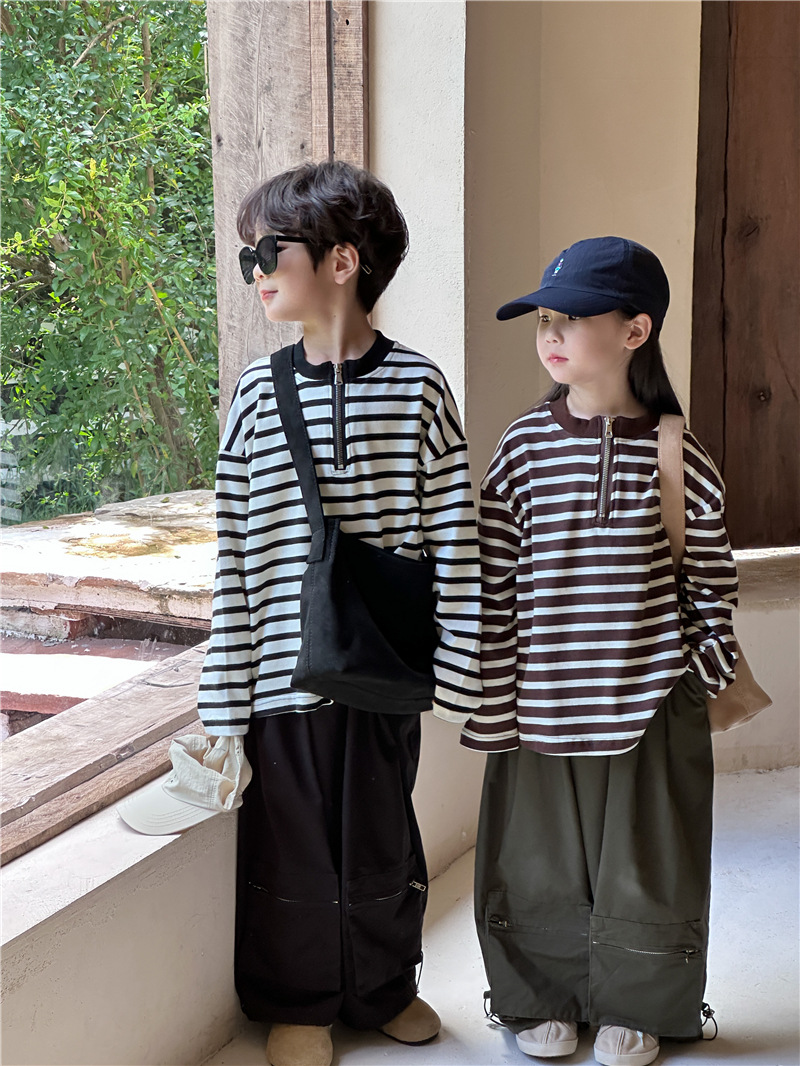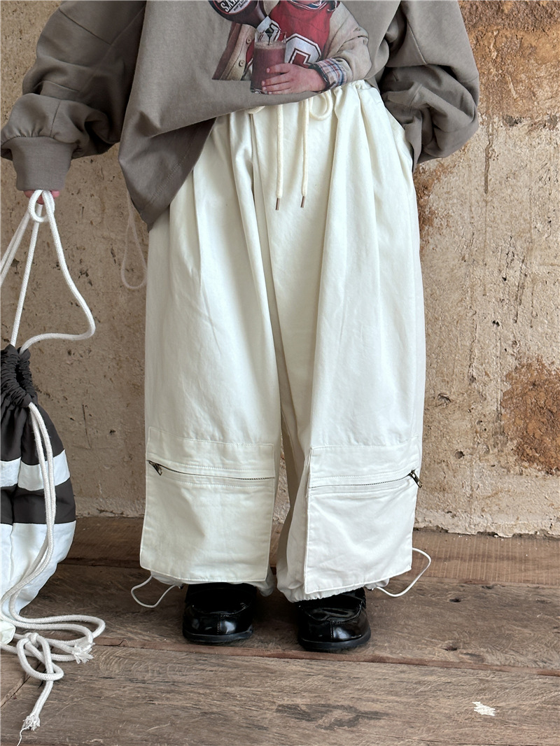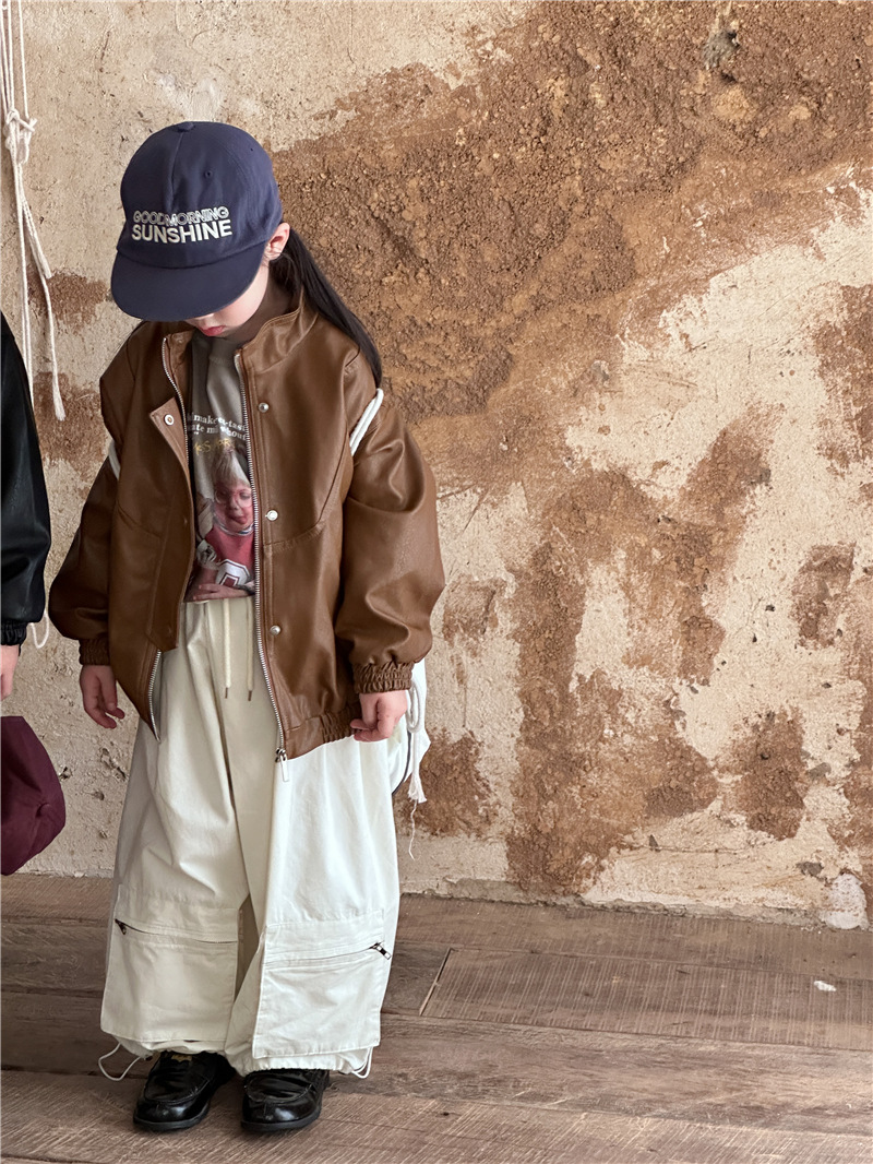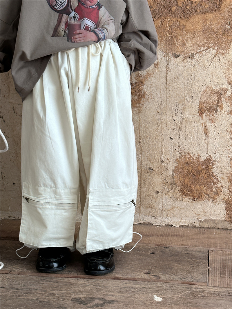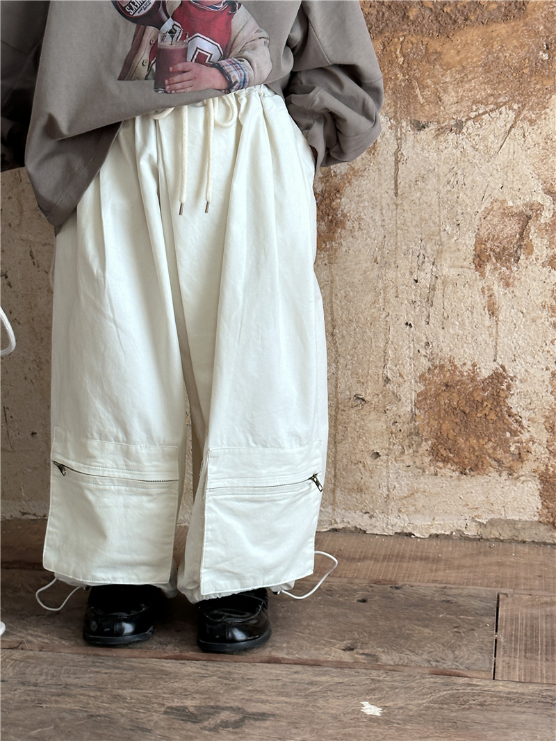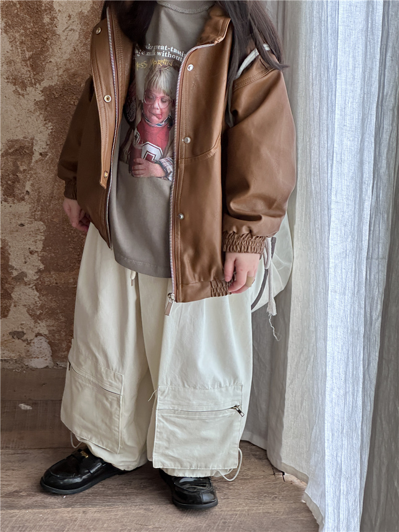 2024 년 봄 새로운 도착 한국 스타일 어린이 작업복 소년 소녀를위한 느슨한 캐주얼 바지