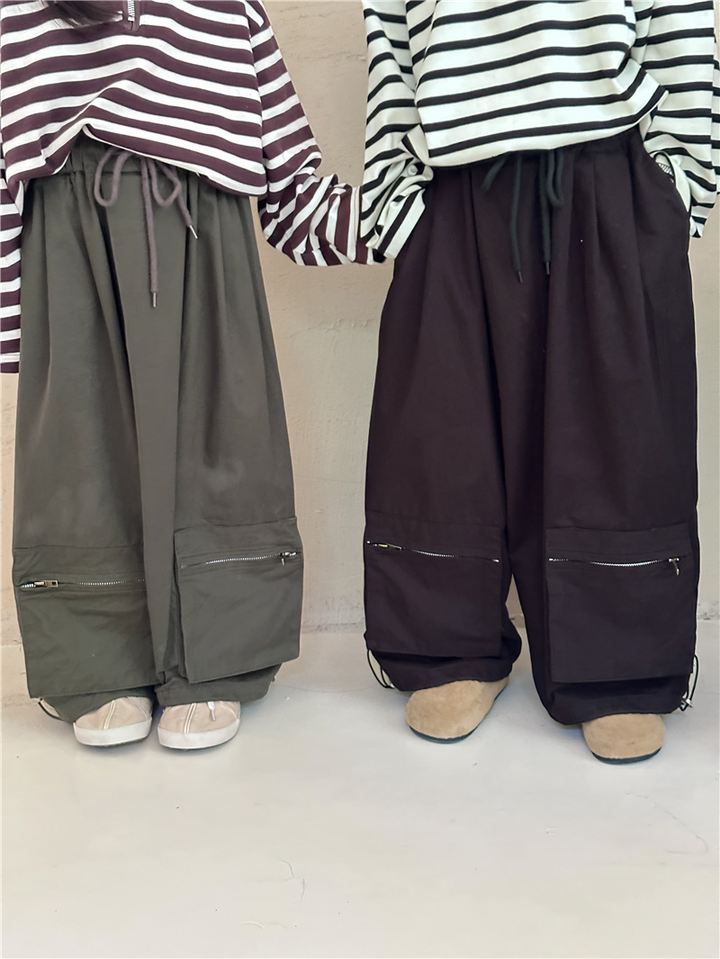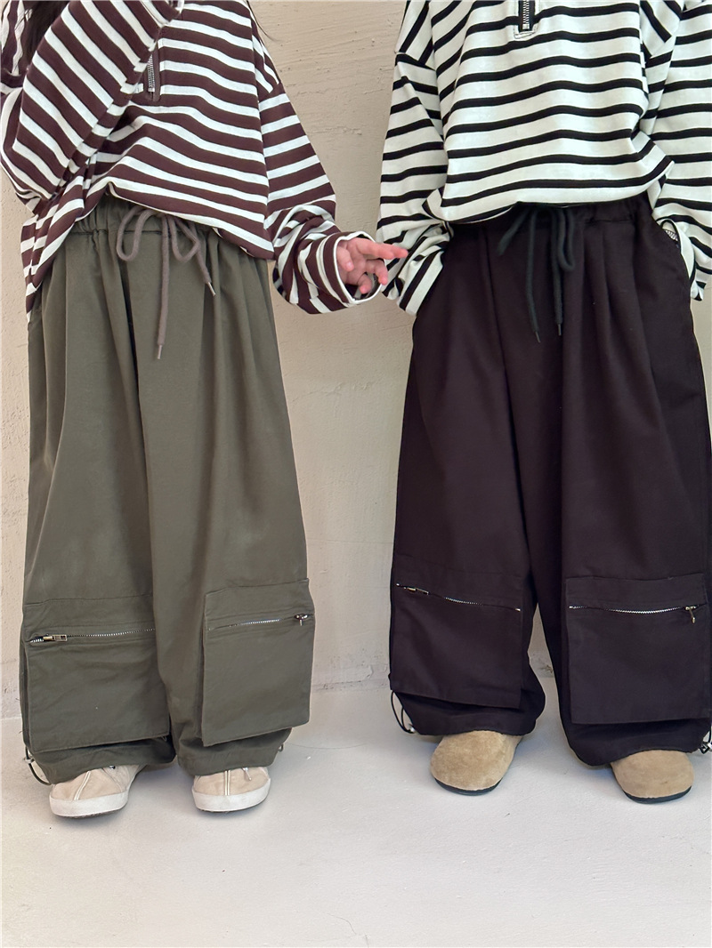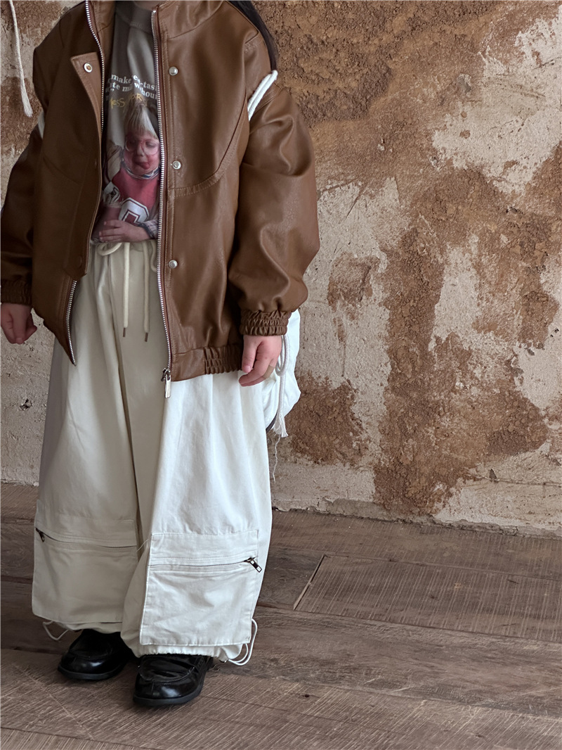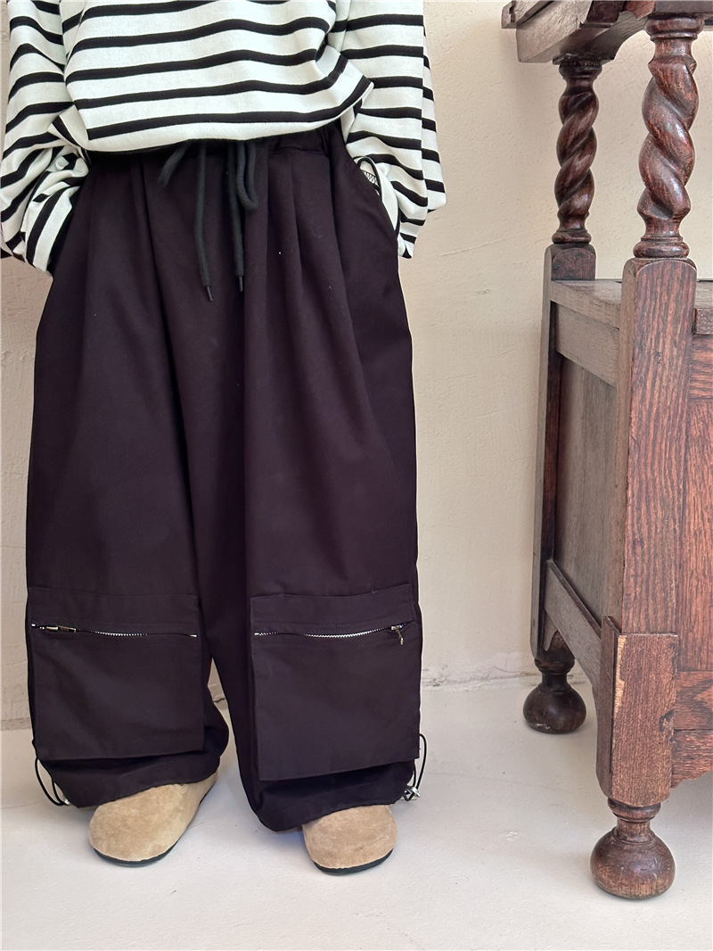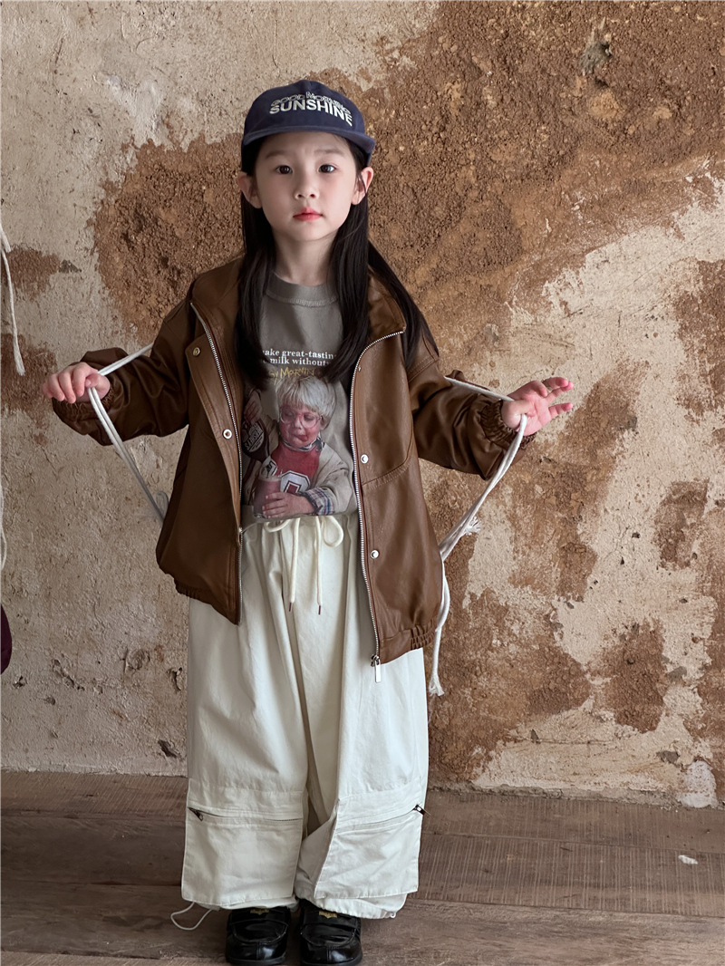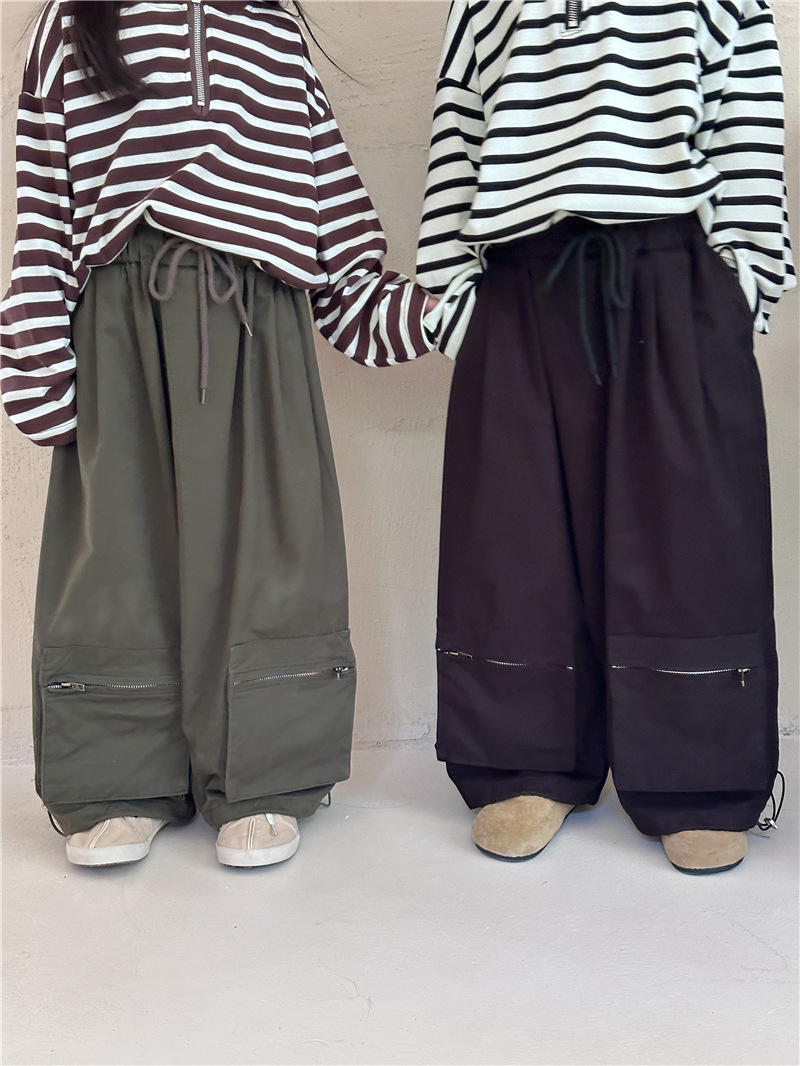 2024 년 봄 새로운 도착 한국 스타일 어린이 작업복 소년 소녀를위한 느슨한 캐주얼 바지