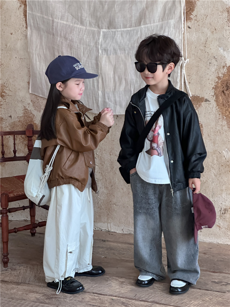 2024 년 봄 새로운 도착 한국 스타일 어린이 작업복 소년 소녀를위한 느슨한 캐주얼 바지스토어 가기