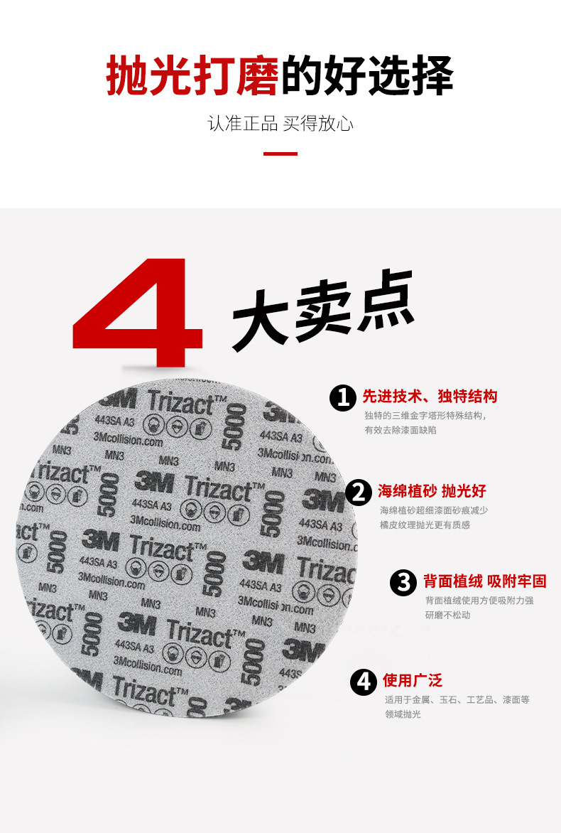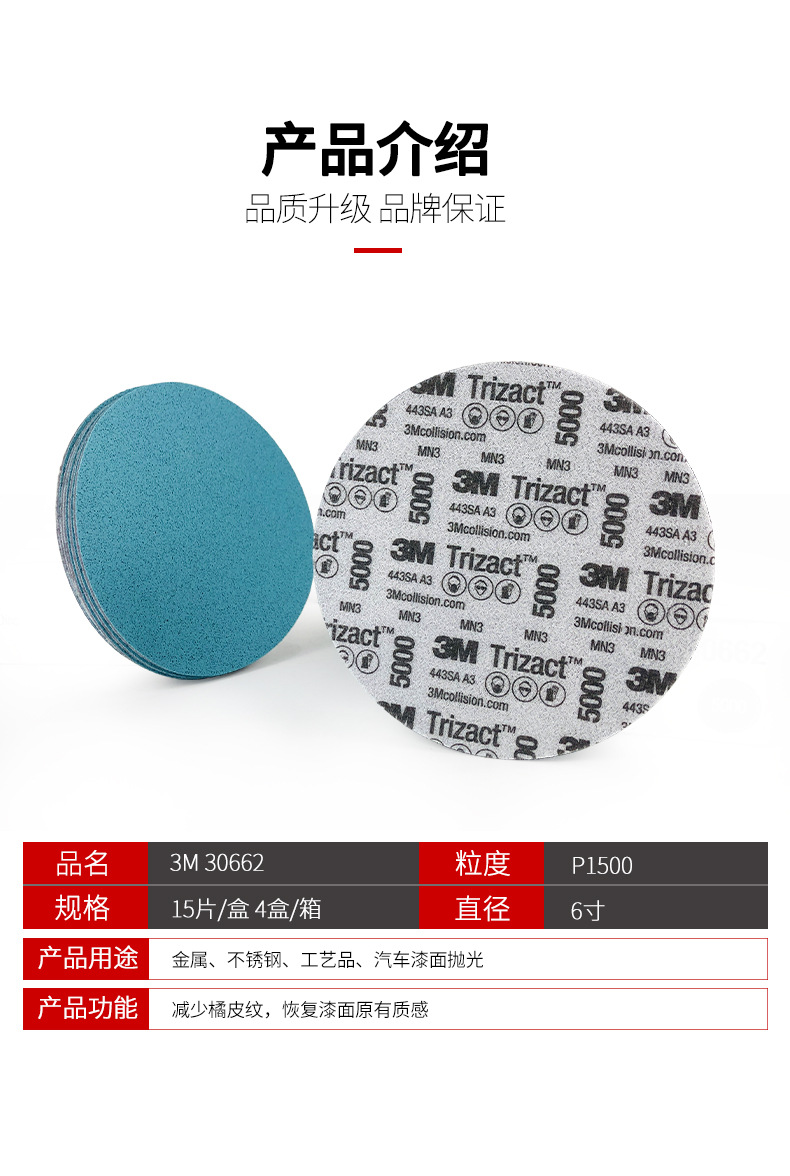 정품 3M 사포 30662 피라미드 아름다움 샌드 디스크 6 인치 자동차 수리 연삭 사포 P5000스토어 가기