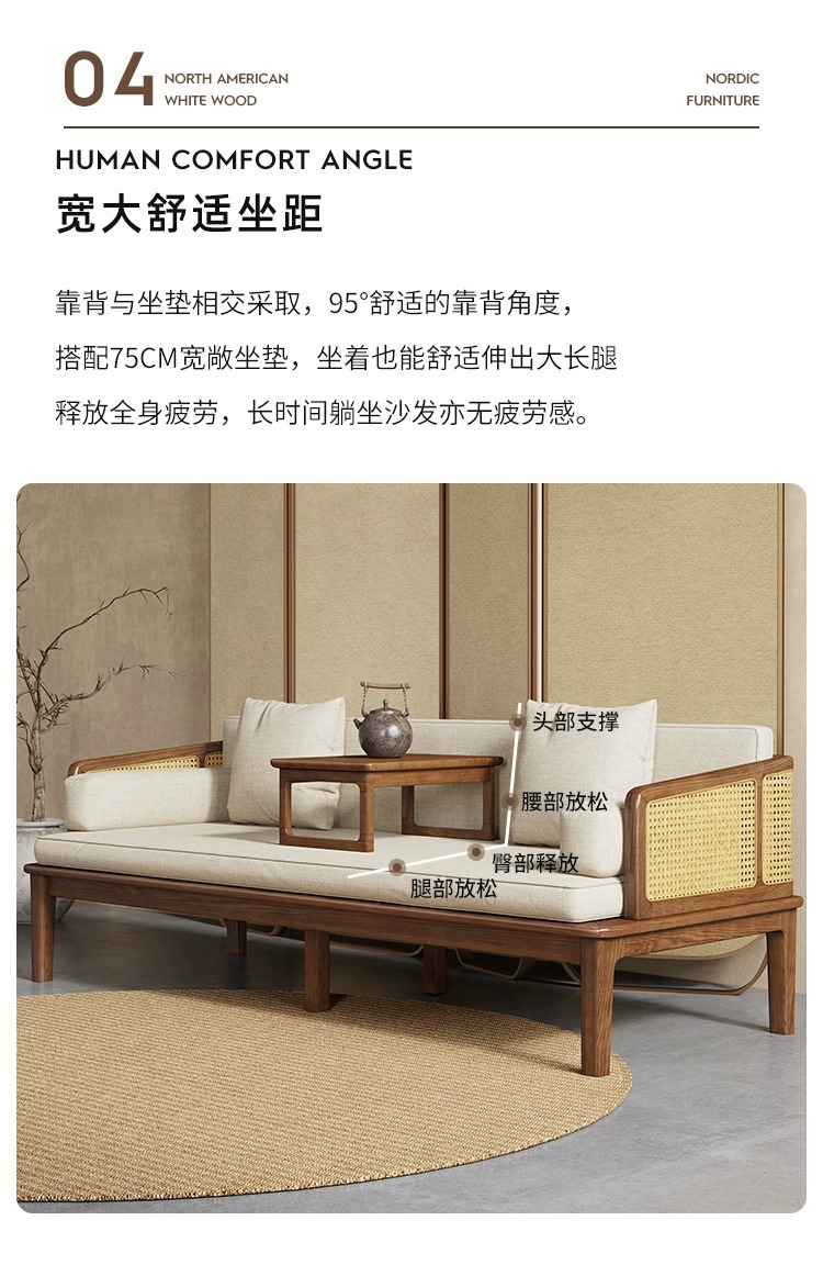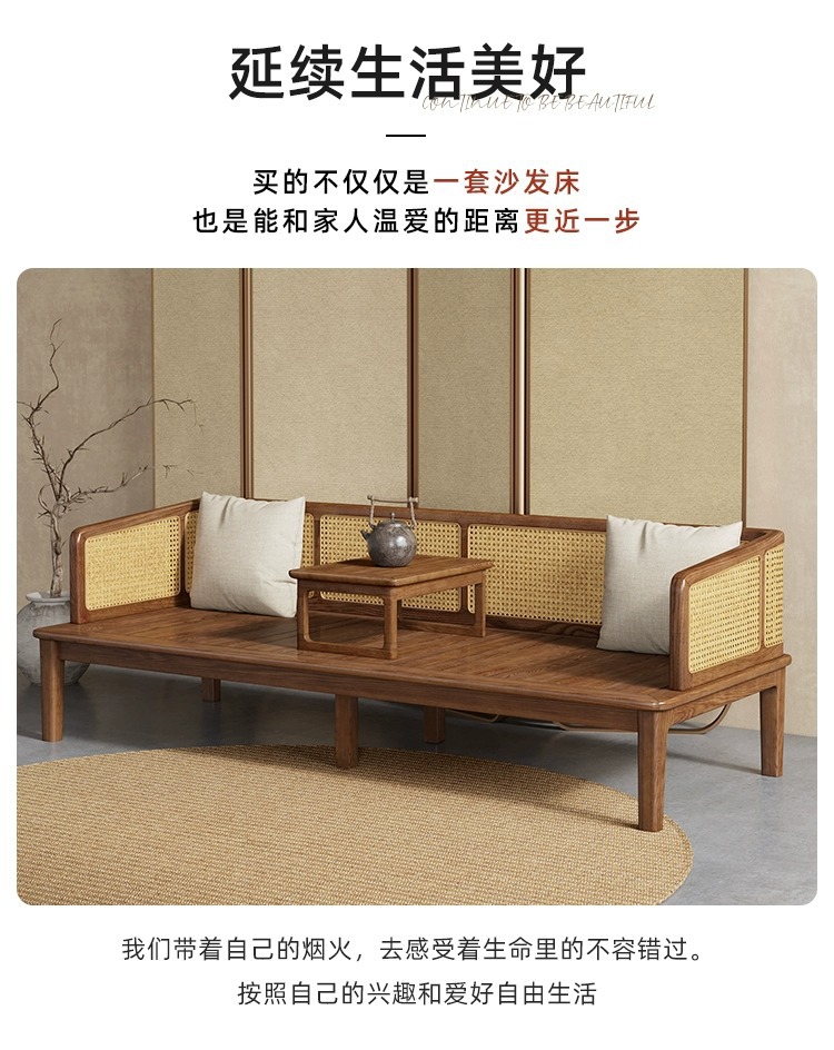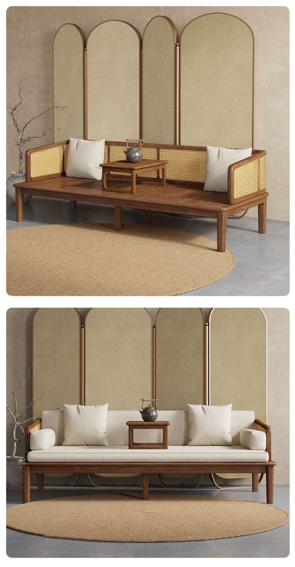 새로운 중국식 등나무 짠 단단한 나무 소파 베드 푸시 풀 소형 아파트 가정용 거실 텔레스코픽 이중 사용 소파 홈스테이 호텔