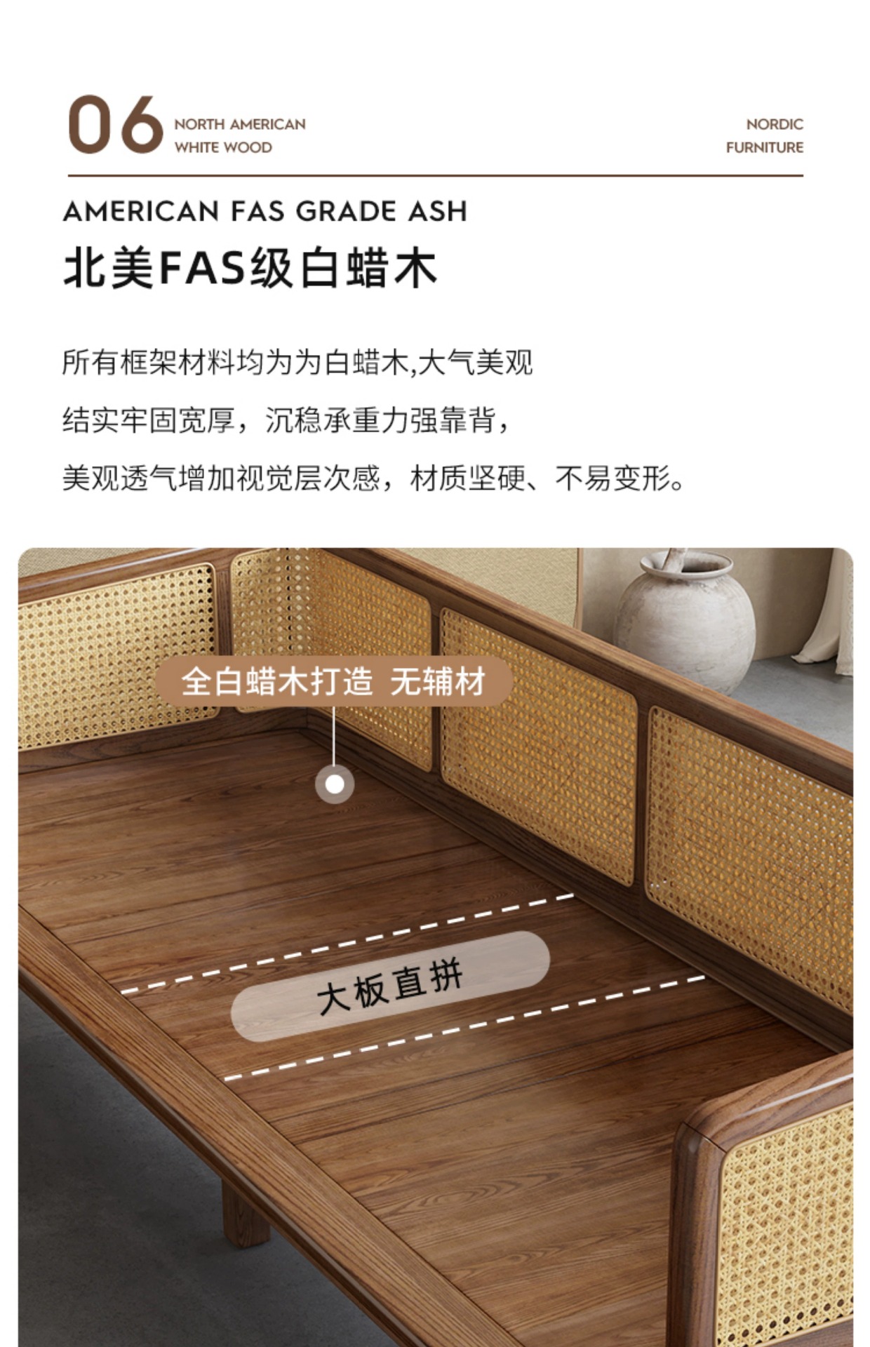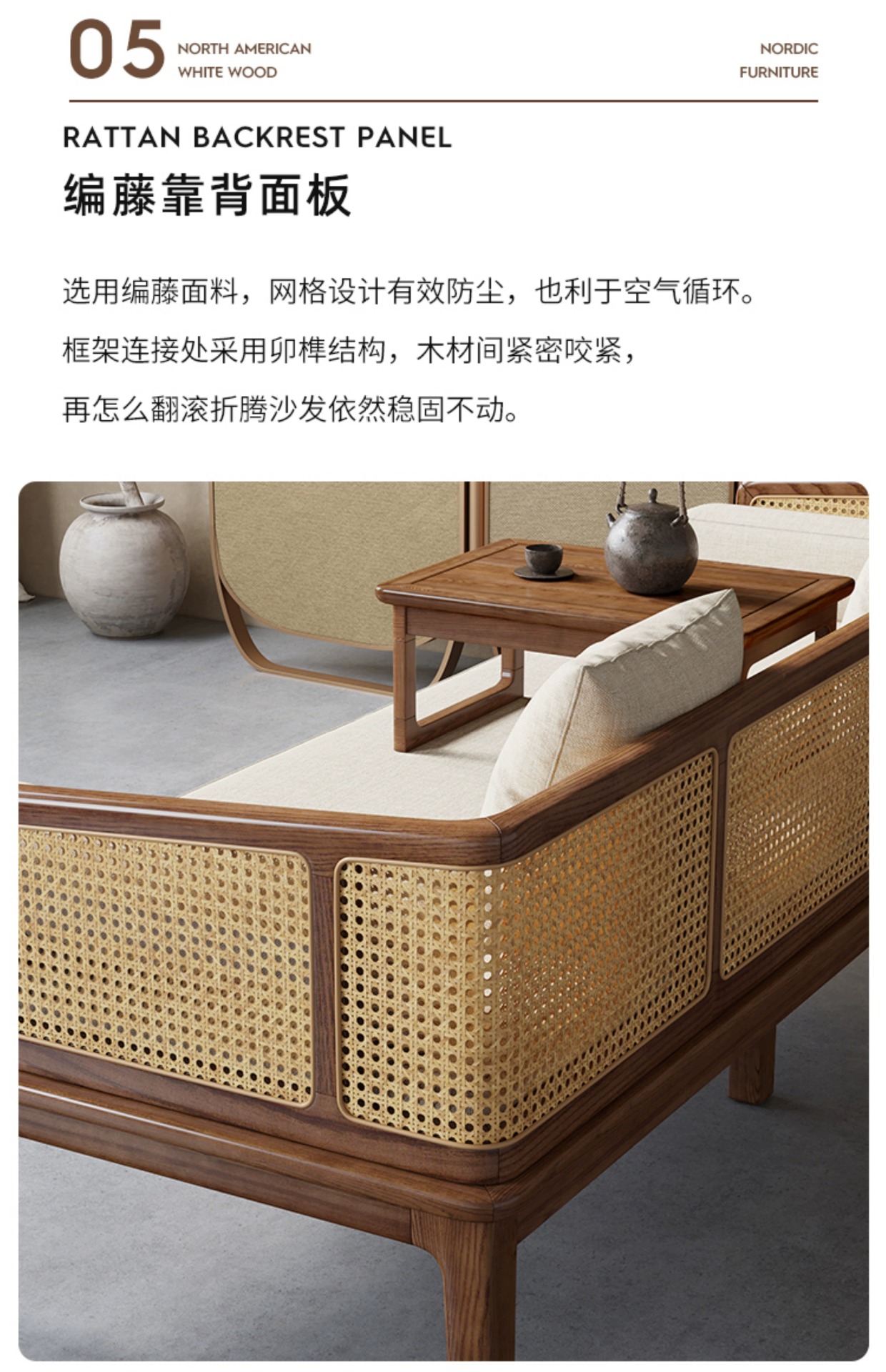 새로운 중국식 등나무 짠 단단한 나무 소파 베드 푸시 풀 소형 아파트 가정용 거실 텔레스코픽 이중 사용 소파 홈스테이 호텔스토어 가기